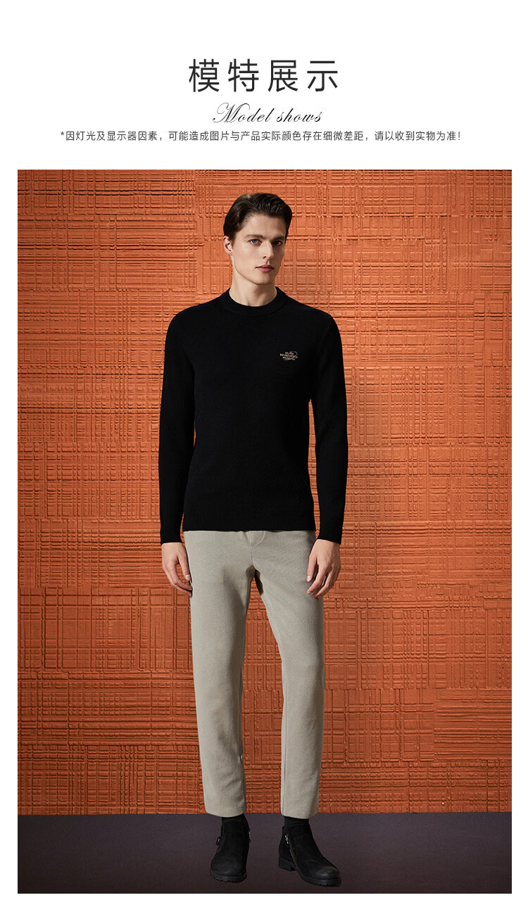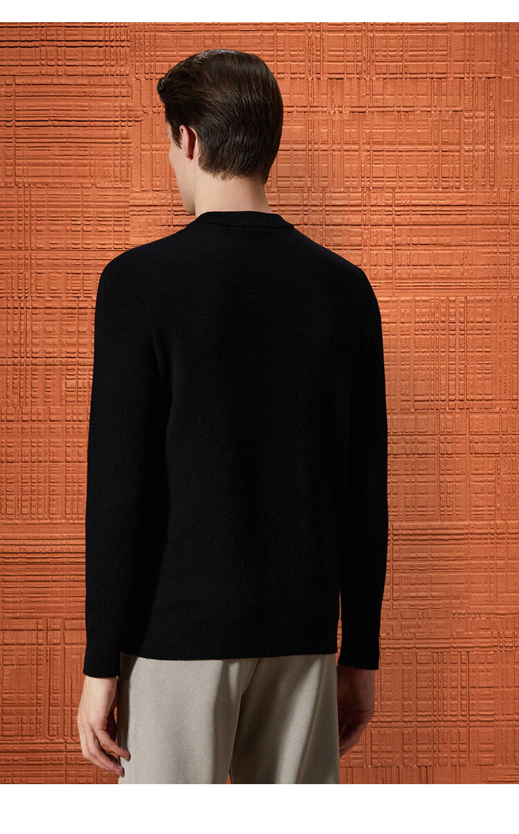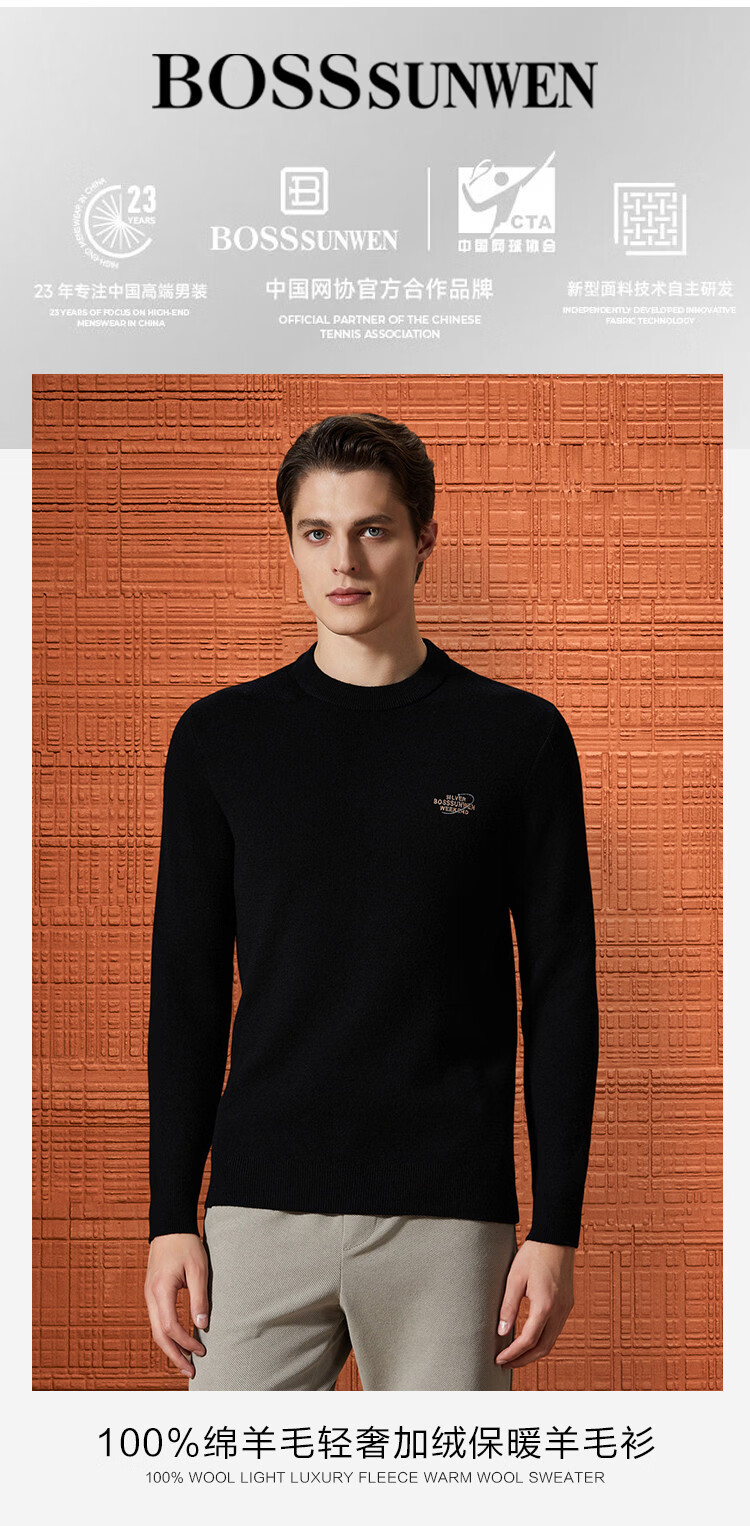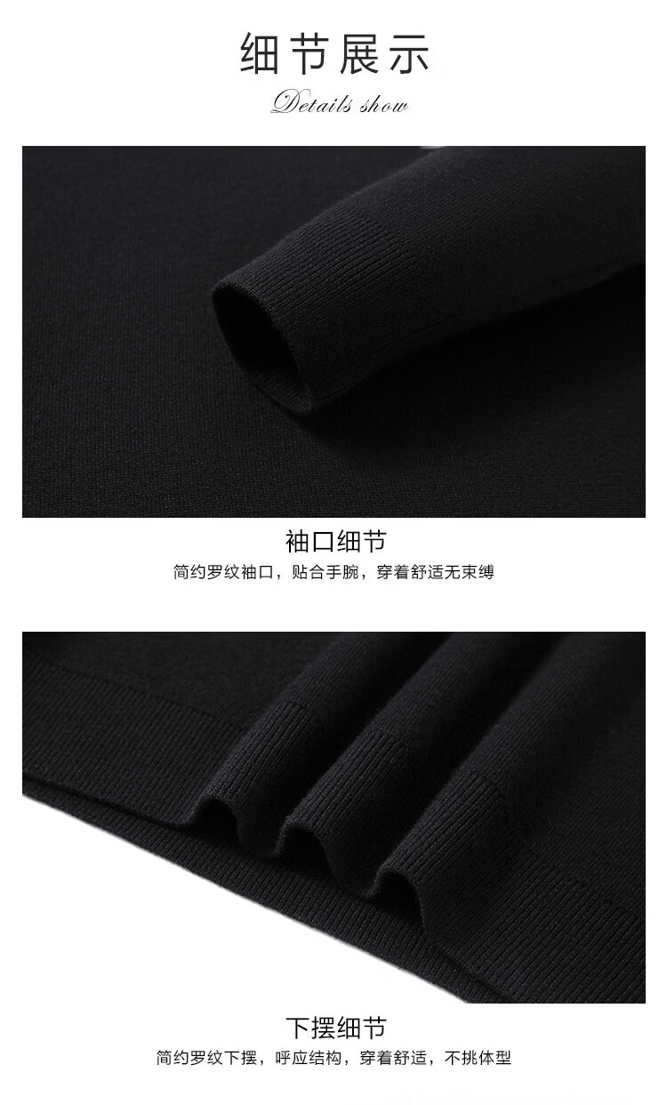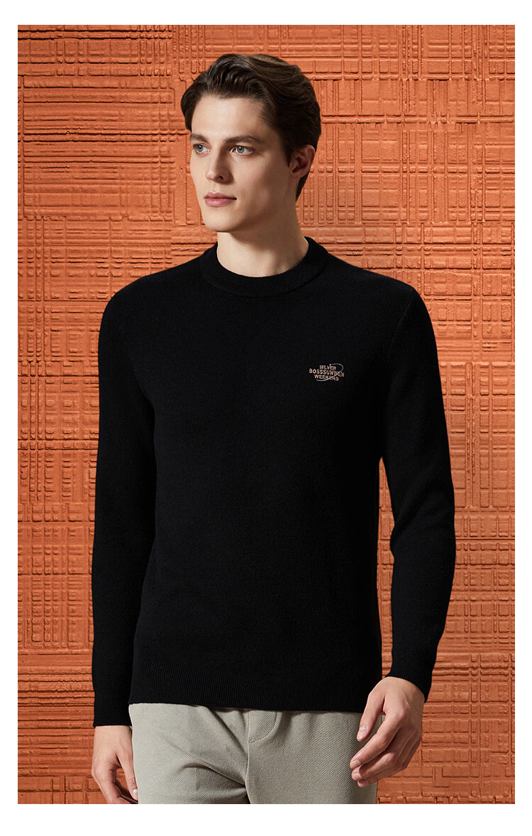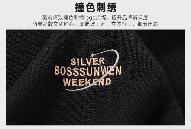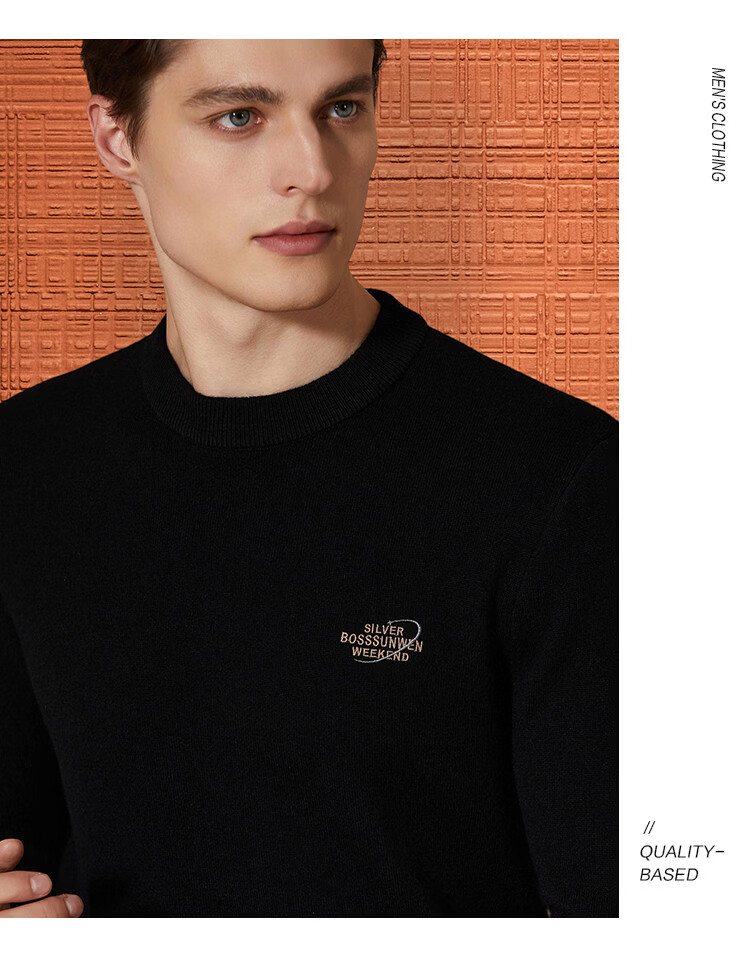 Bosssunwen thickened velvet recommended for winter, skin-friendly and warm solid color bottoming shirt, exquisite embroidery men's woolen sweater, black L