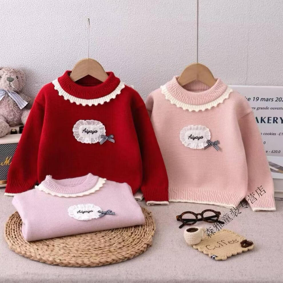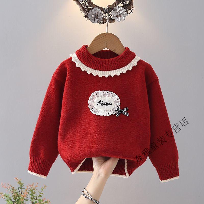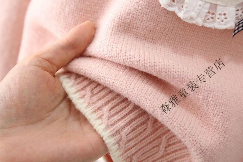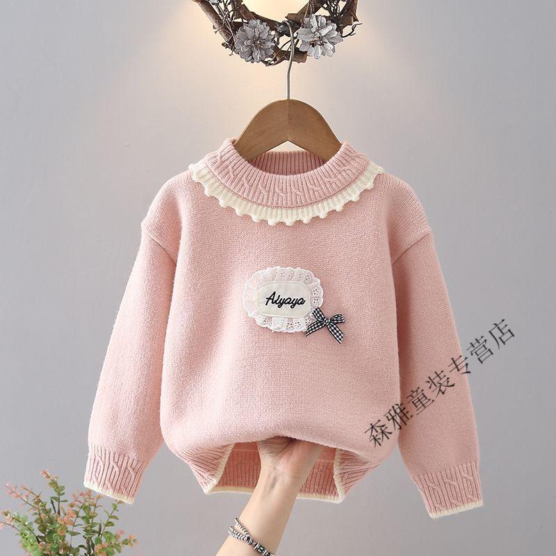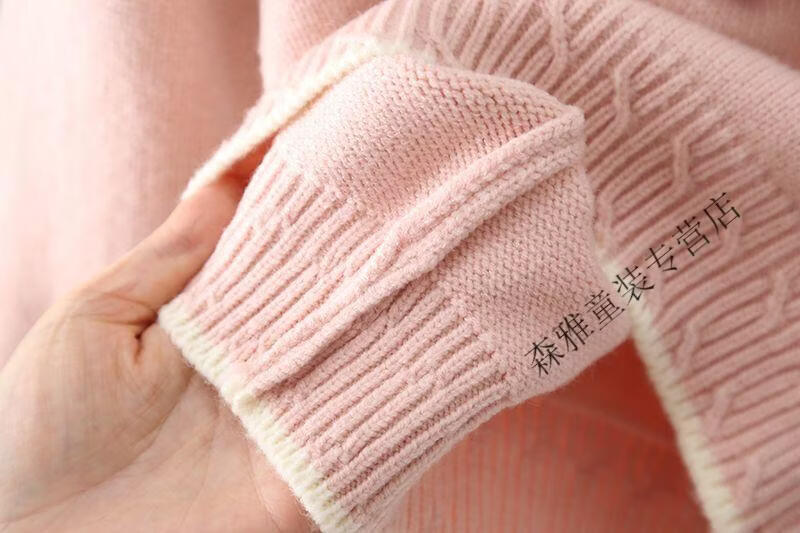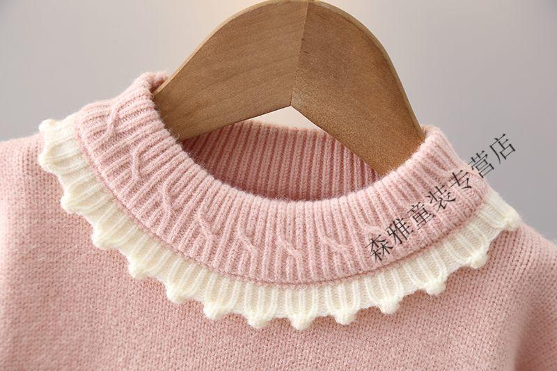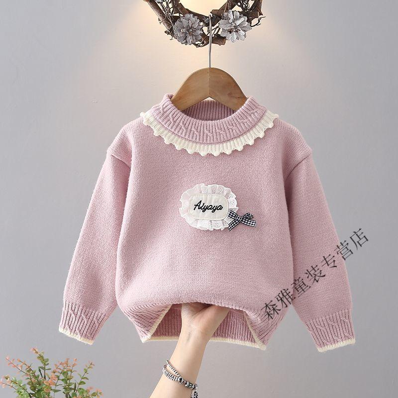 Mumuwu girls sweater winter new style baby knitted bottoming sweater winter children's velvet thickened warm top children's clothing light purple velvet thickened upgraded version 120 recommended height 105-115 cm