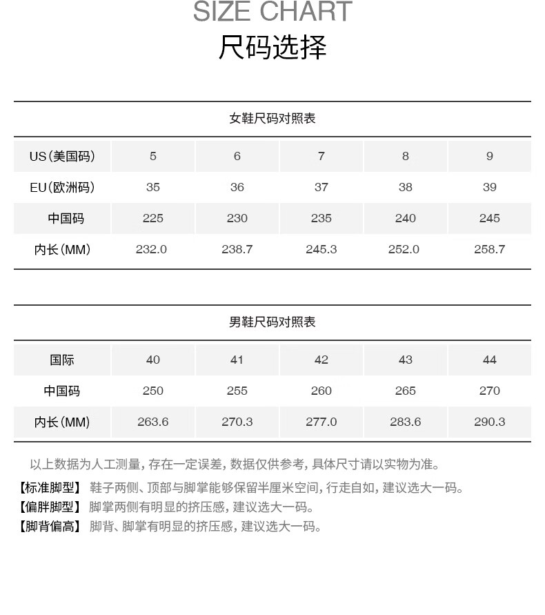 China (cm) 36 - 37 38 - 39 40 - 42 43 - 44 45 - 47