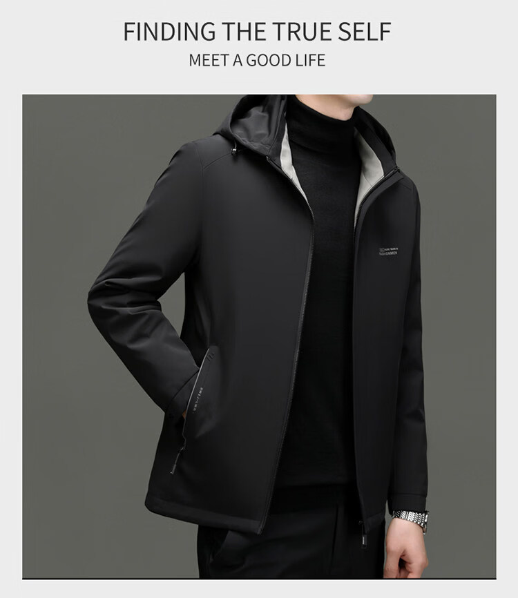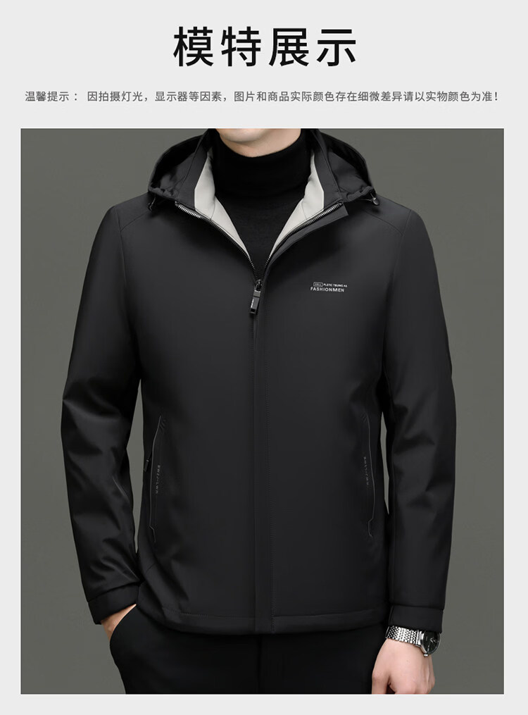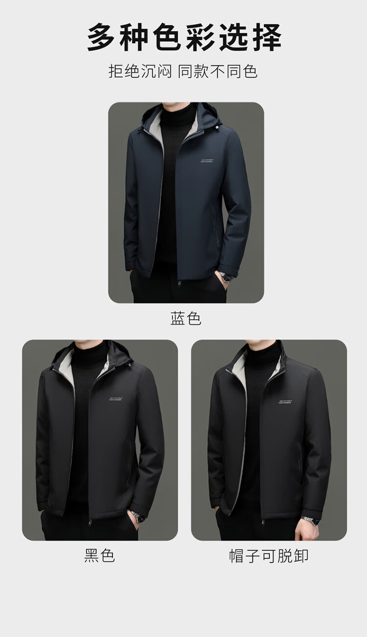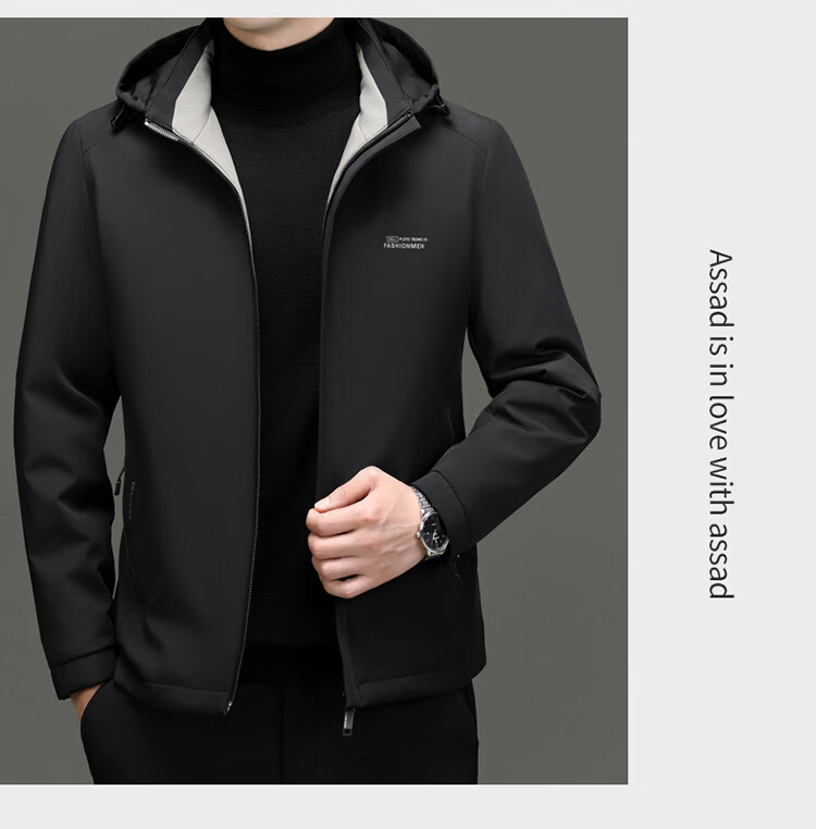 Hengyuanxiang light luxury high-end 2026 autumn and winter new light down jacket men's short removable hood business casual jacket black M 170 recommended 120Jin Jin equal to less than 0.5 kg