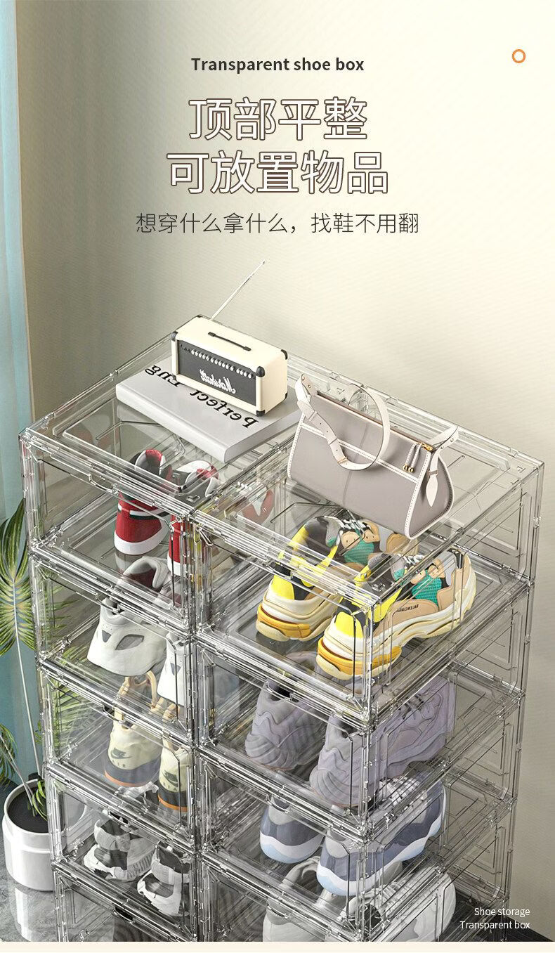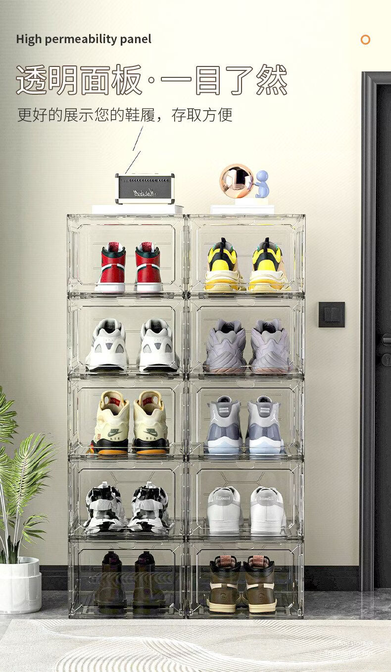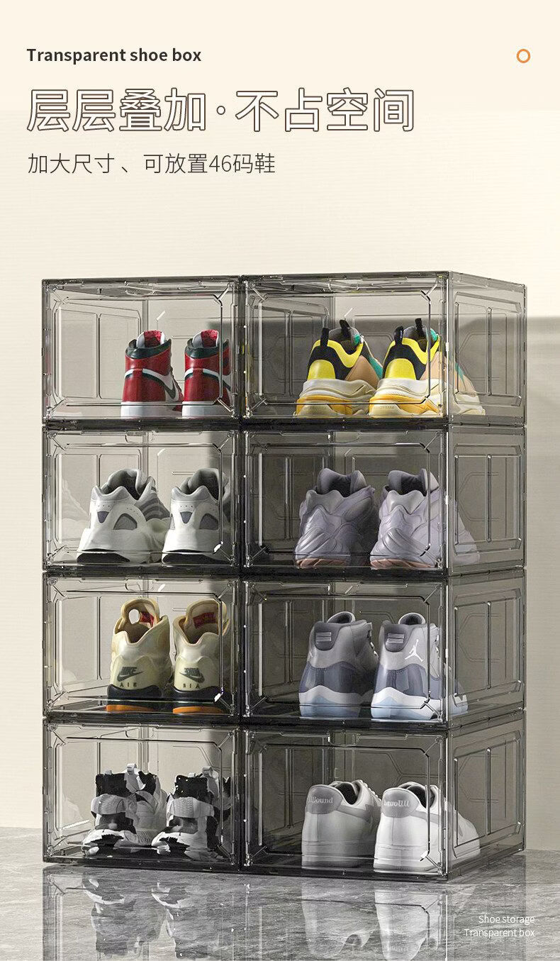 Shijanu thickened shoe box storage box magnetic hard plastic flip-top anti-oxidation and dust-proof transparent shoe box shoe rack sneaker cabinet transparent white 20 pieces independent back door front opening double magnetic suction can be installed under 47 sizes 34x27x18.5cm