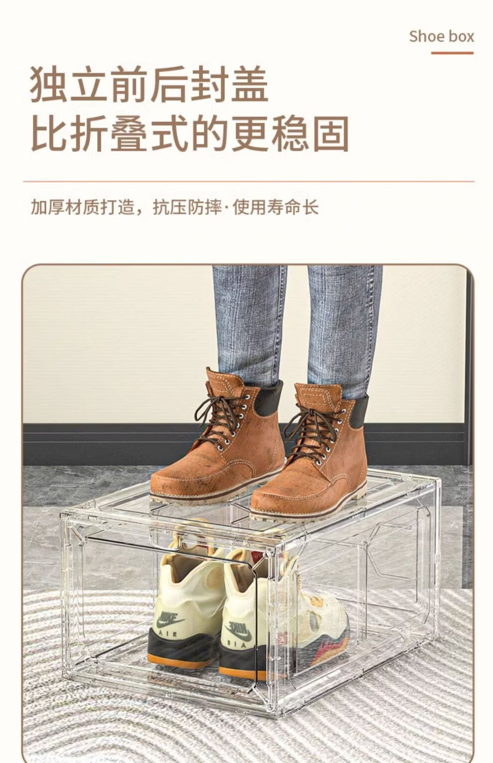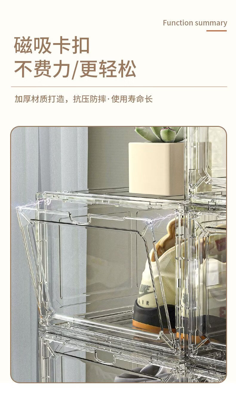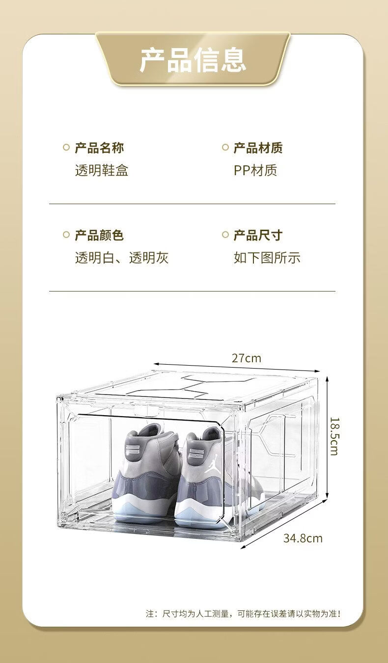 Shijanu thickened shoe box storage box magnetic hard plastic flip-top anti-oxidation and dust-proof transparent shoe box shoe rack sneaker cabinet transparent white 20 pieces independent back door front opening double magnetic suction can be installed under 47 sizes 34x27x18.5cm
