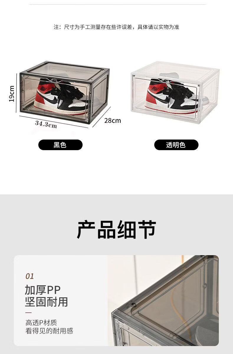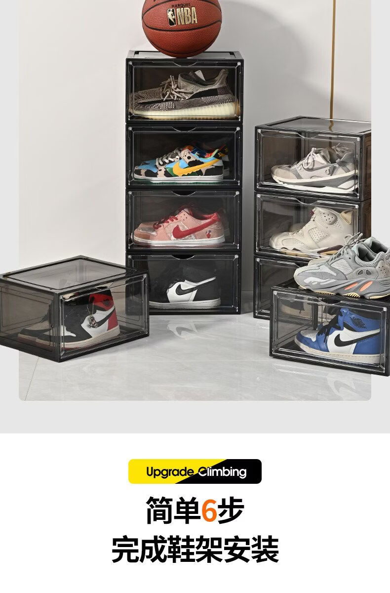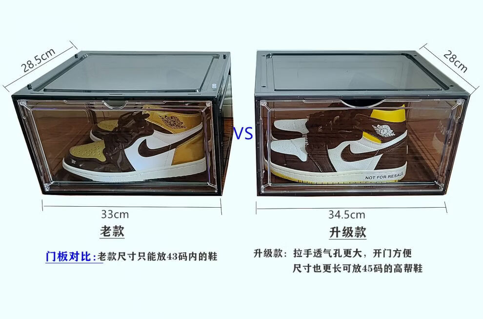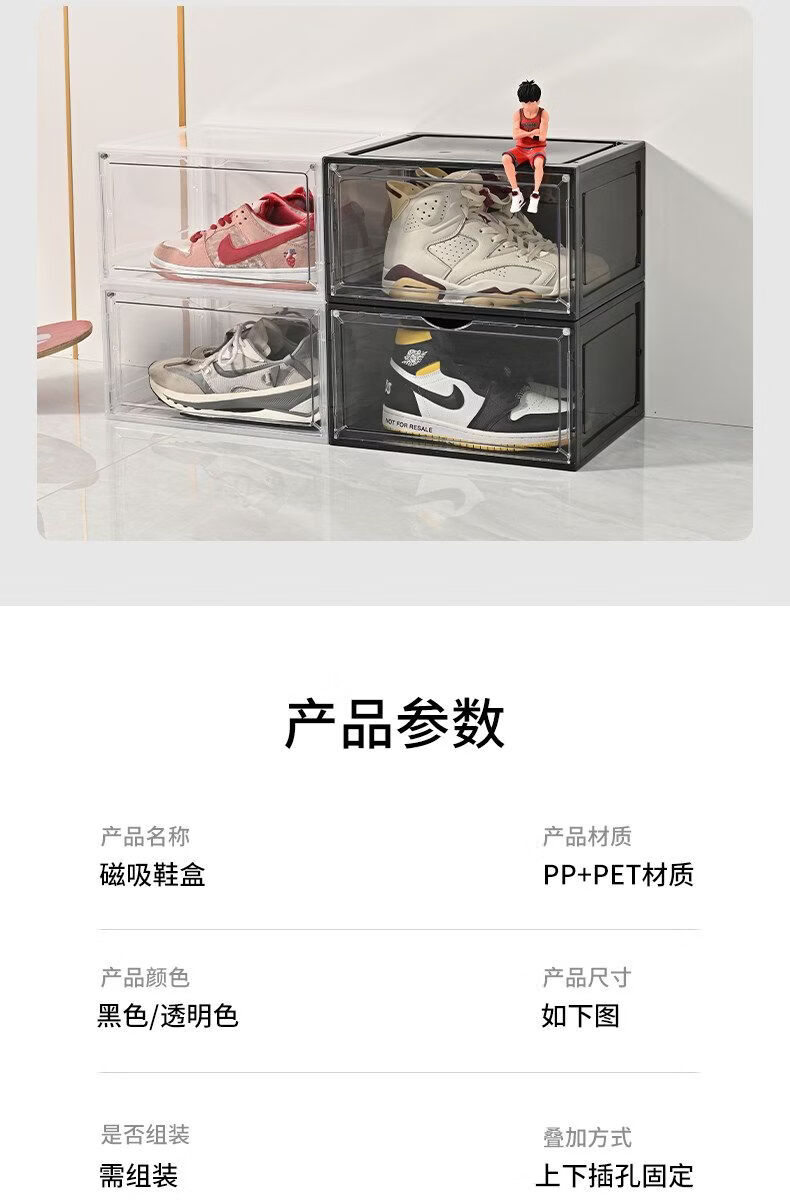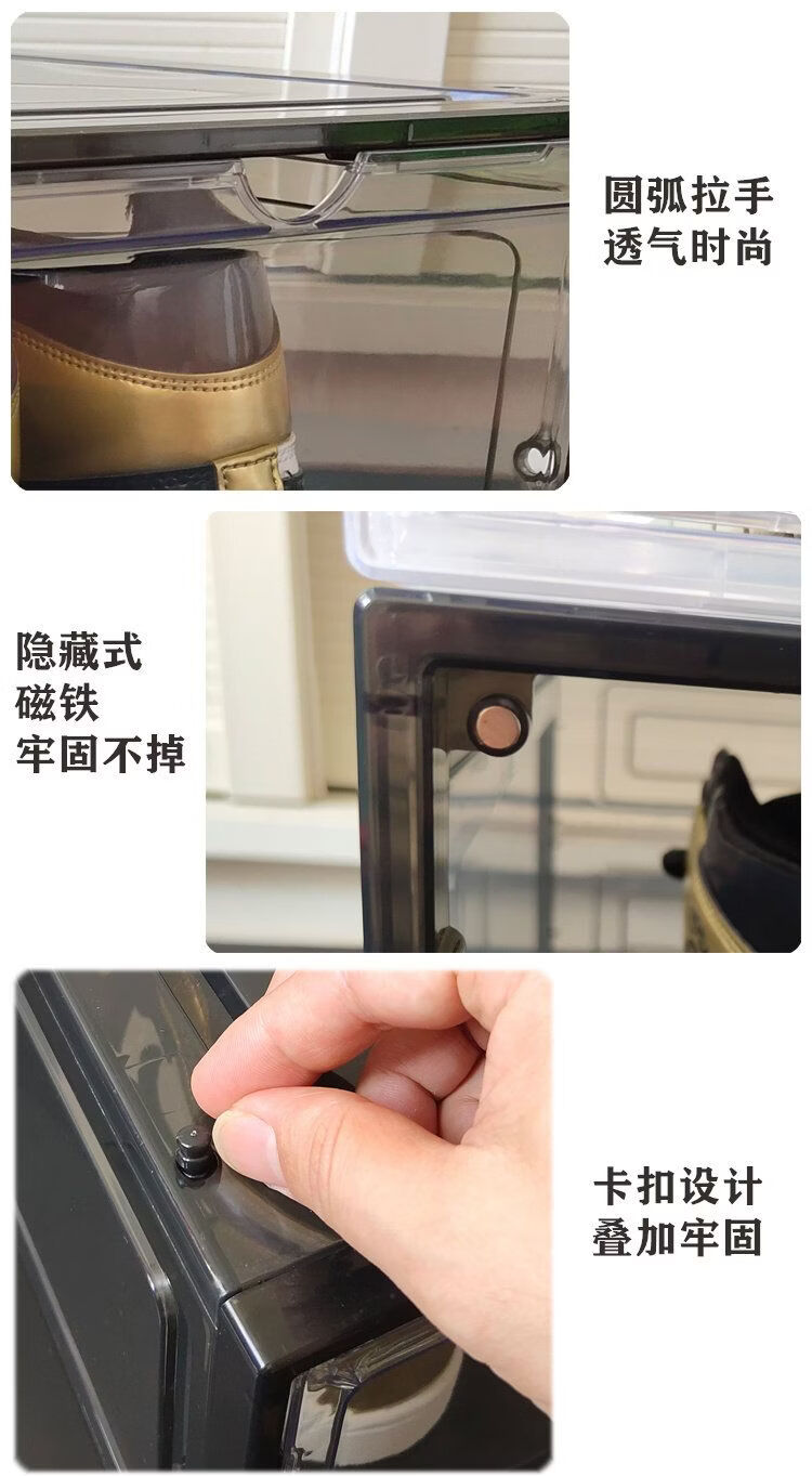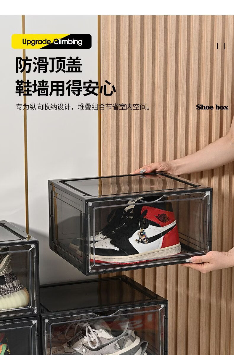 Shijanu Japanese-style transparent magnetic acrylic front-opening vertical goalball shoe storage shoe box home assembled breathable plastic aj box horizontal version smoke gray magnetic suction 12 pack_side display shoes
