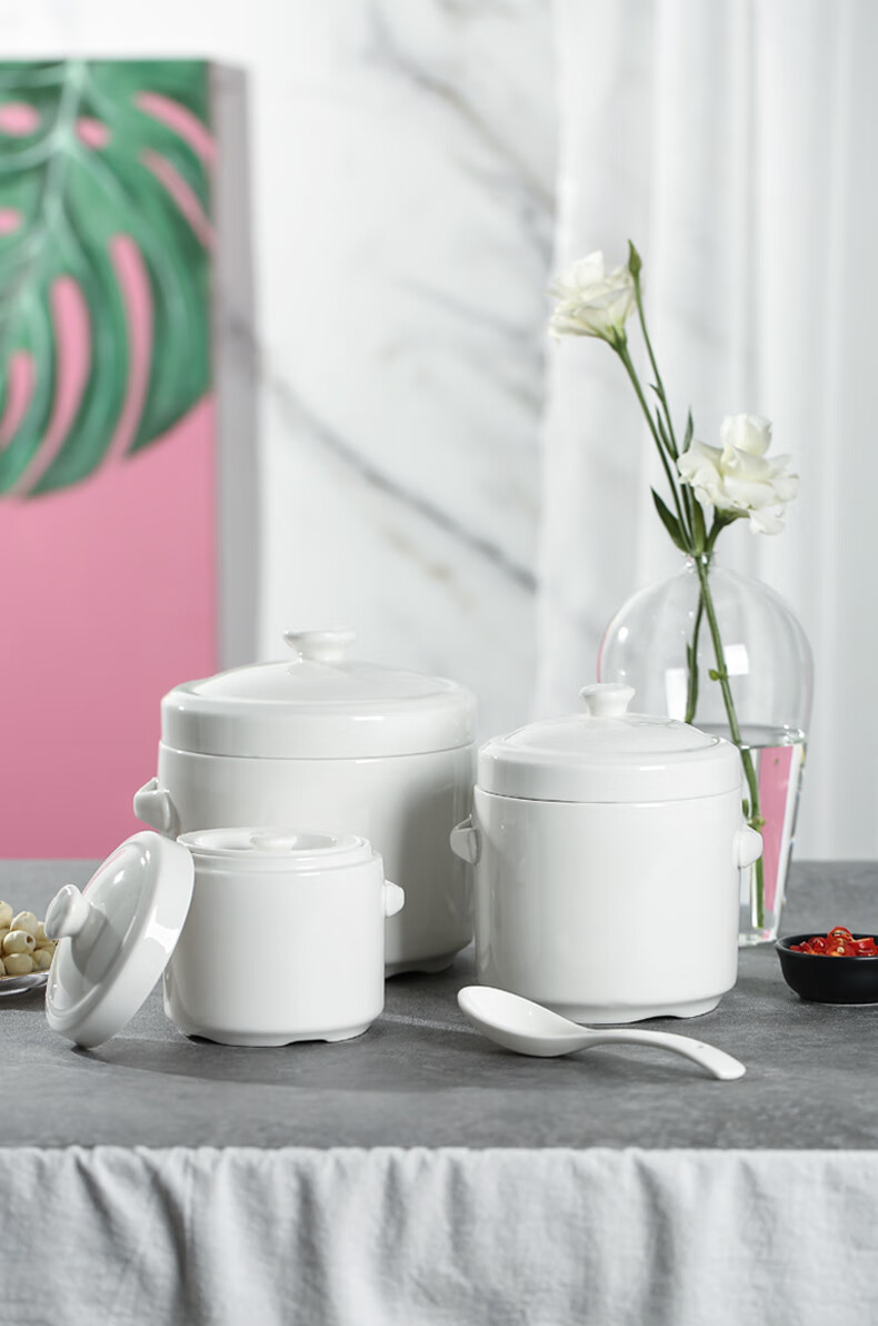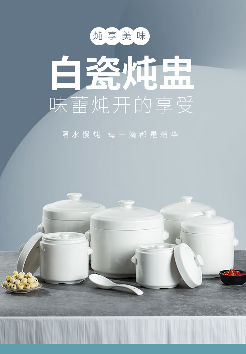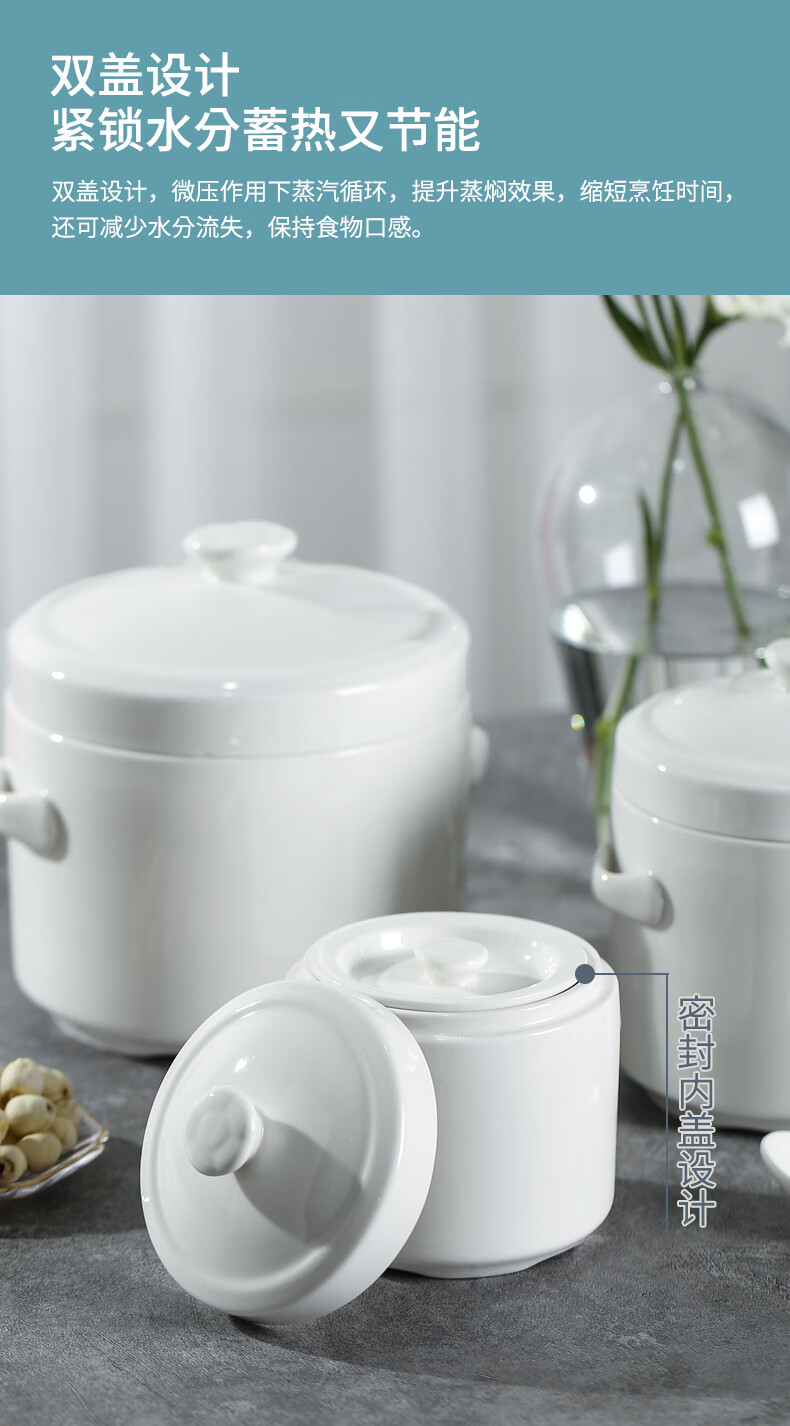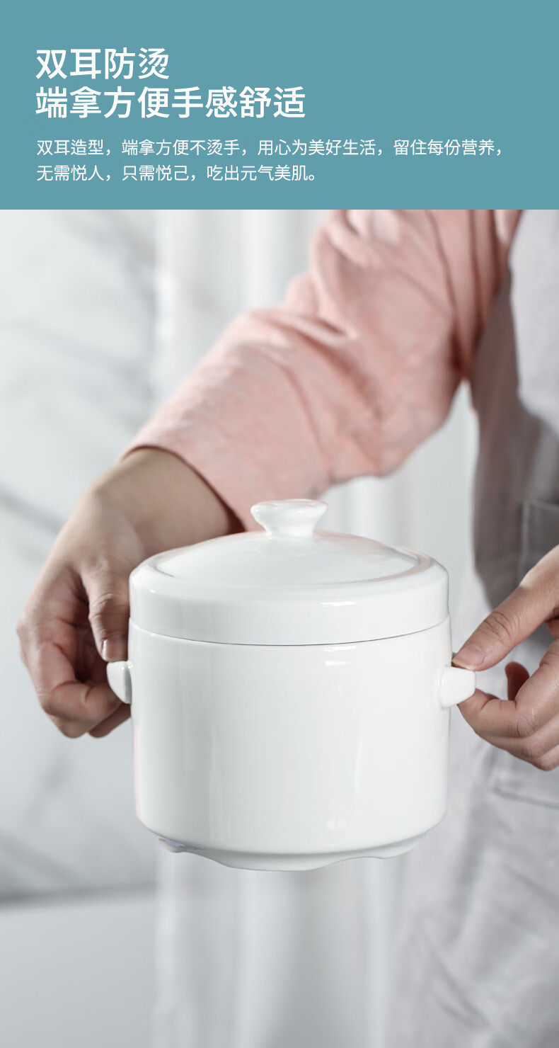 Xushansi bone china stew pot, bird's nest stew pot, water-proof ceramic stew pot, double lid crock pot, soup stew pot, household bowl, 1 pure white 400ML