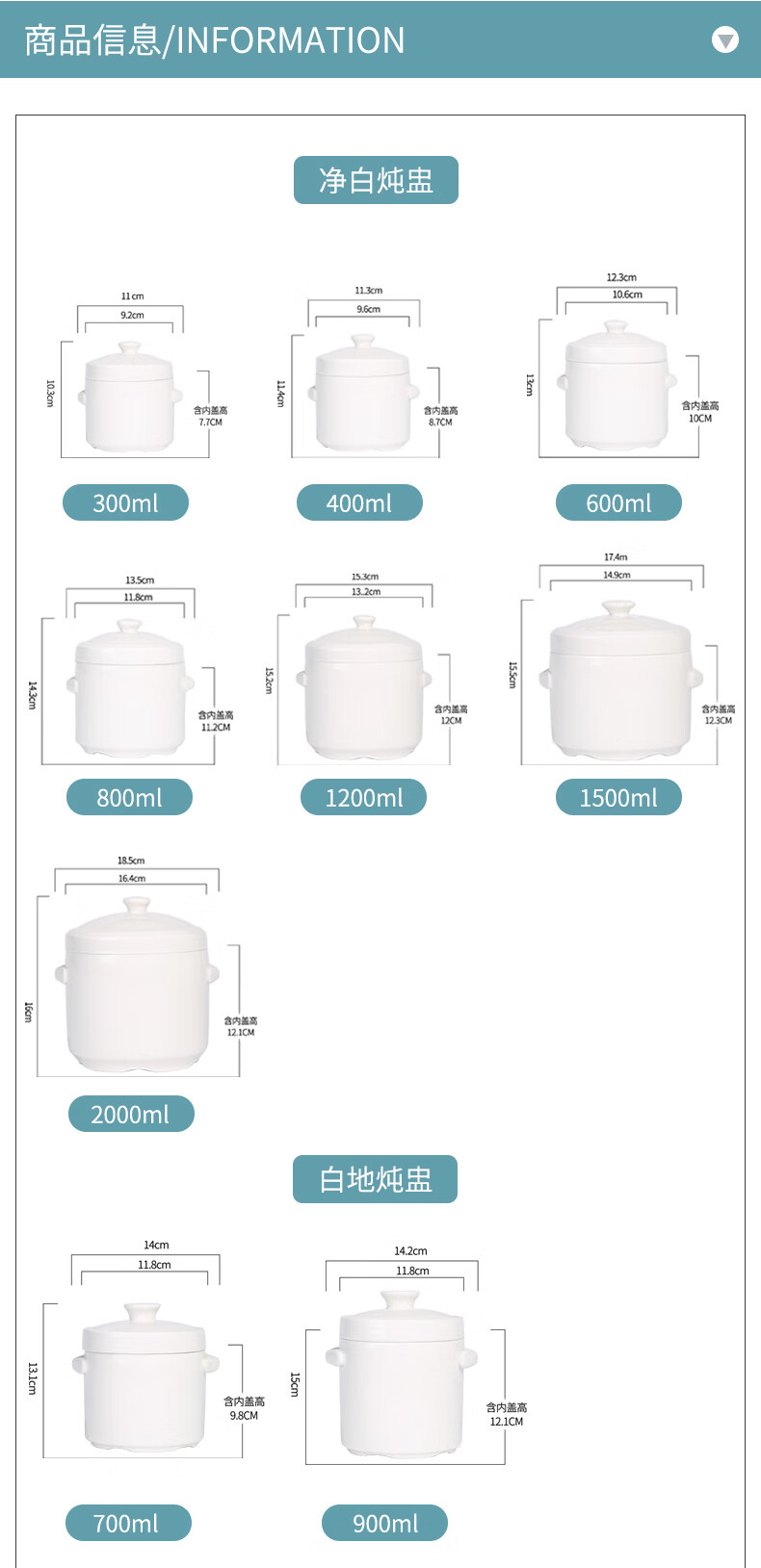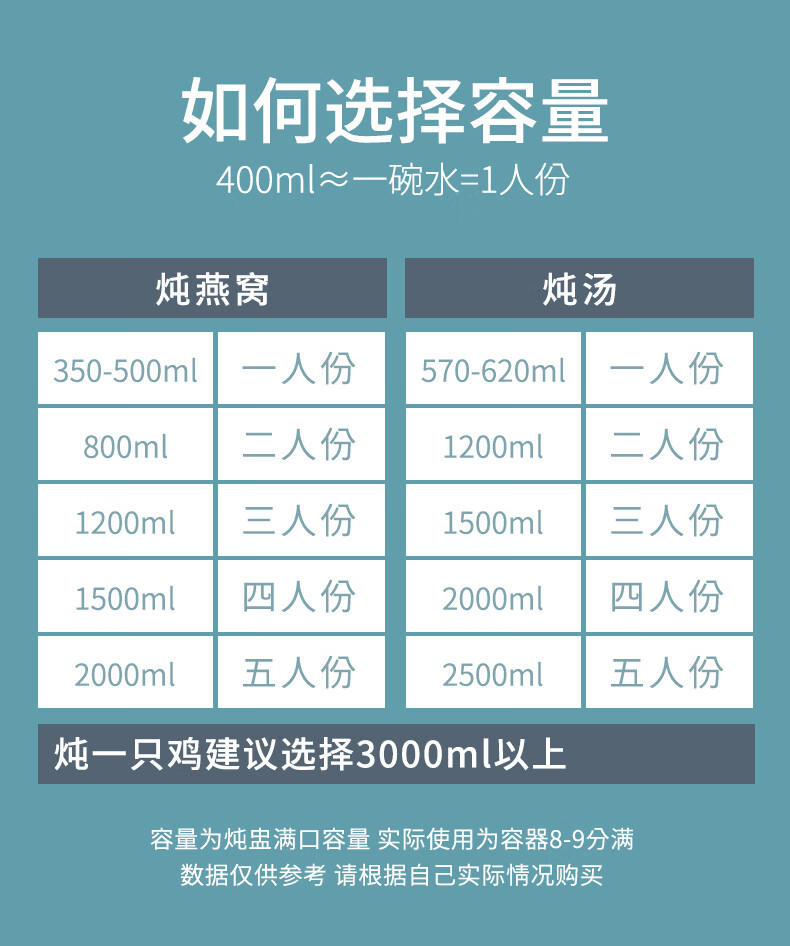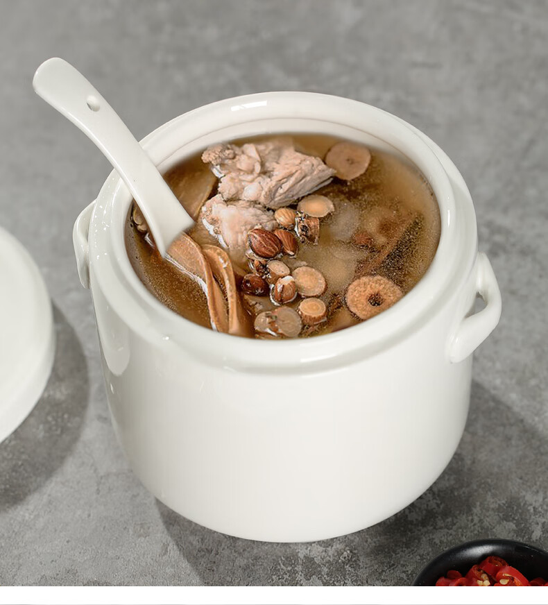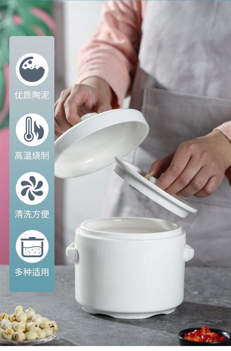 Xushansi bone china stew pot, bird's nest stew pot, water-proof ceramic stew pot, double lid crock pot, soup stew pot, household bowl, 1 pure white 400ML
