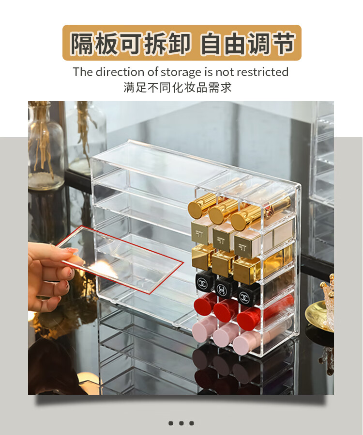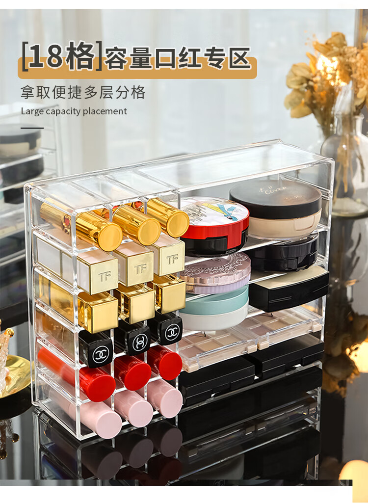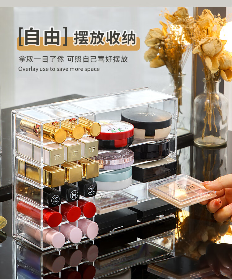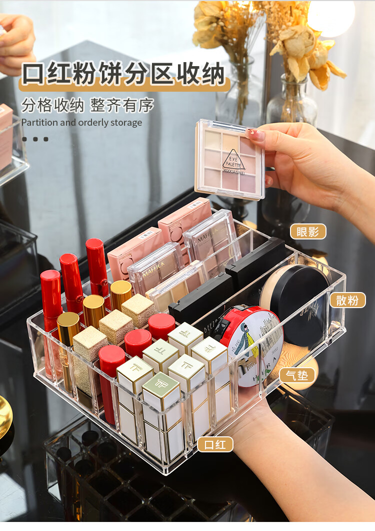 RSRDDY lipstick storage box transparent acrylic eye shadow powder air cushion organizer drawer partition desktop cosmetics storage rack powder storage box