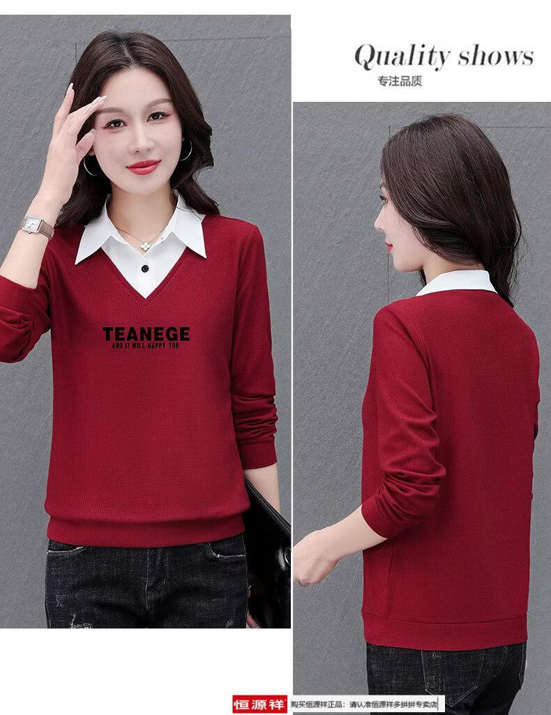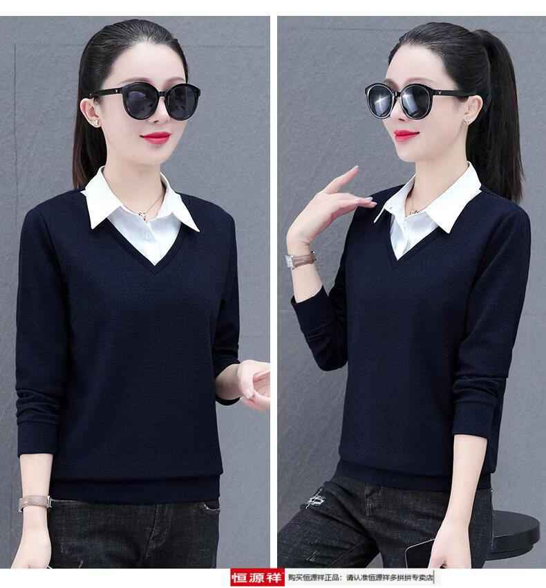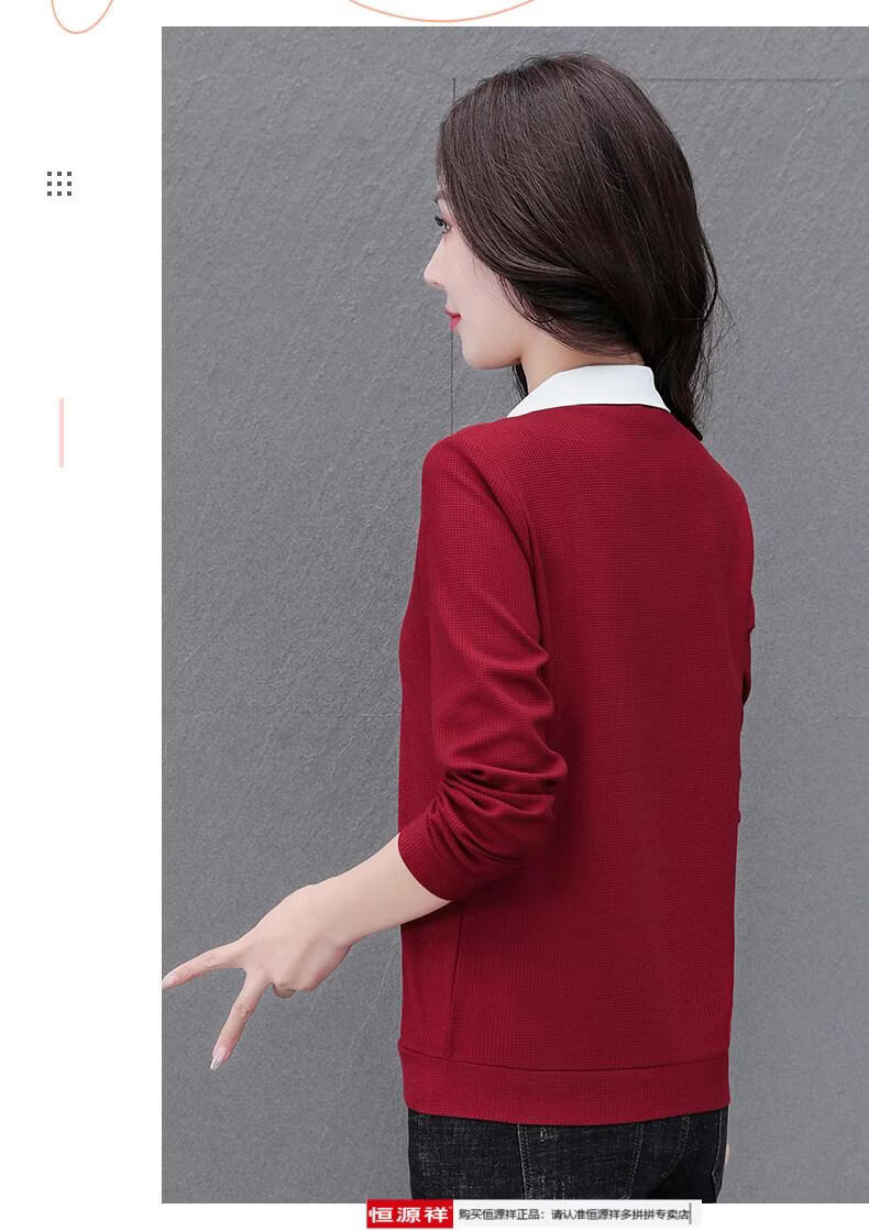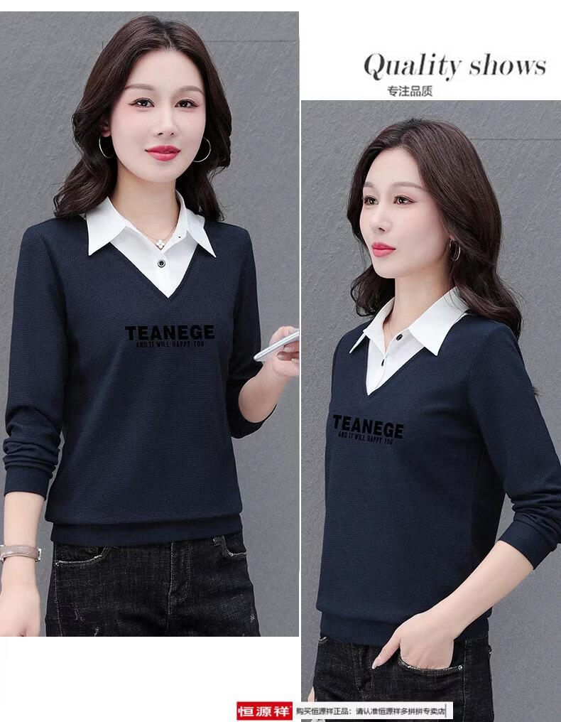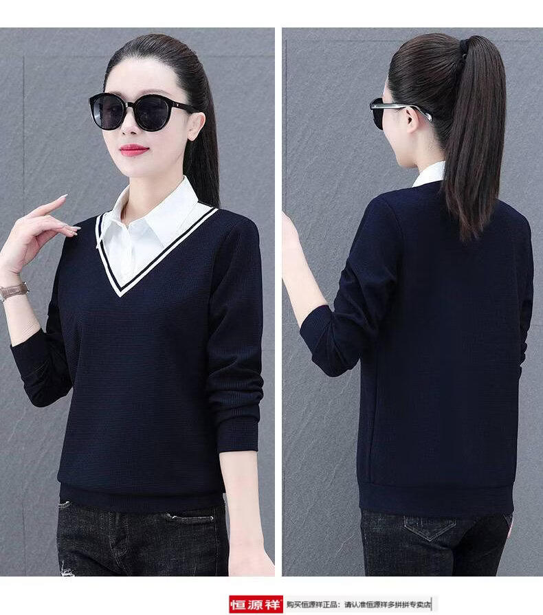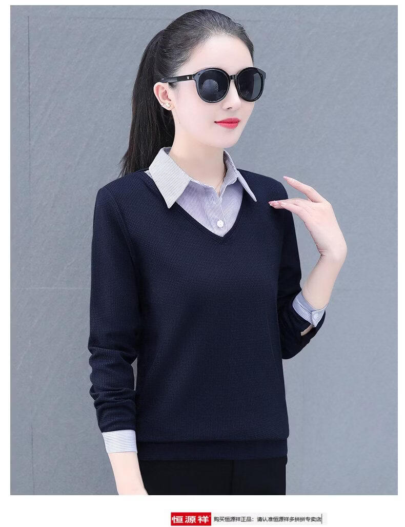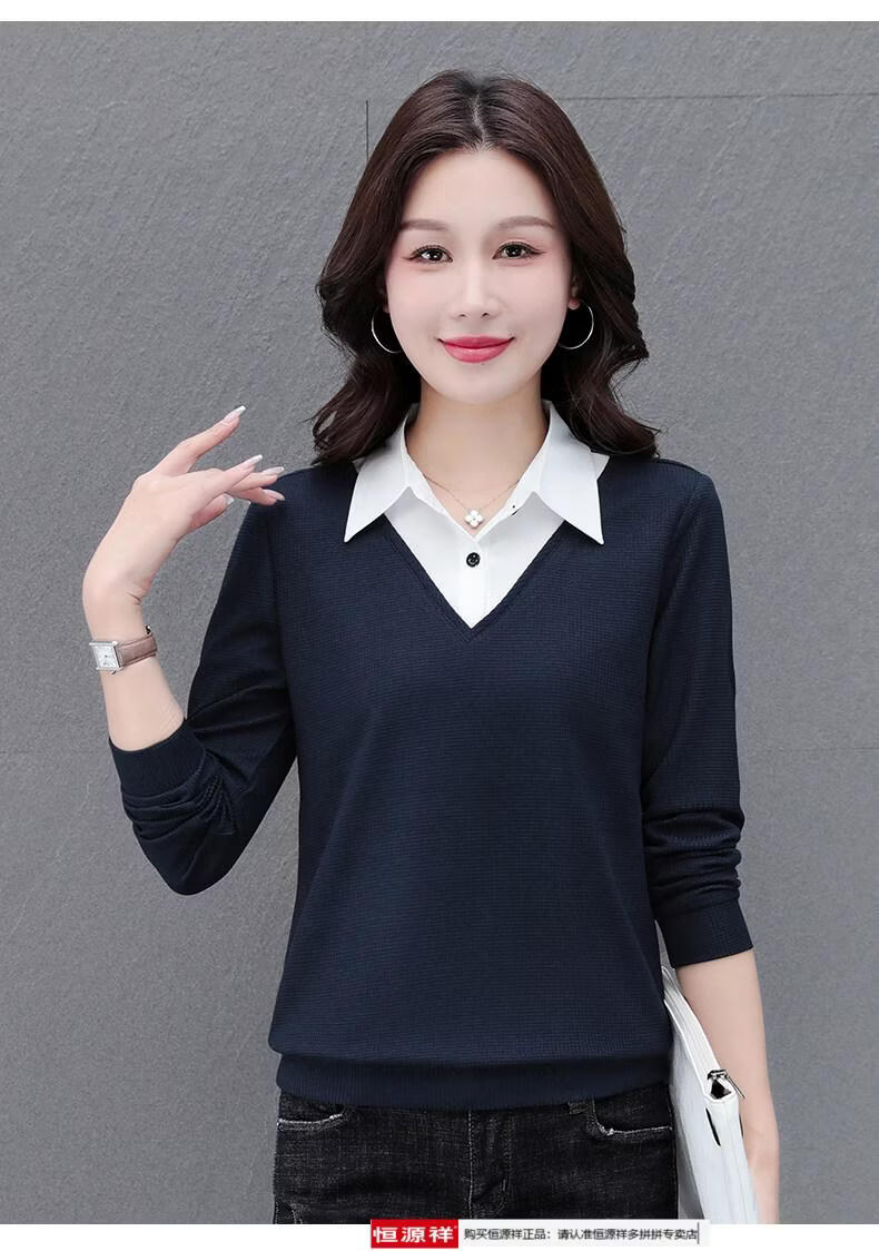 Hengyuan Xiang fake two-piece shirt women's long-sleeved spring and autumn new style middle-aged mother's shirt Western style versatile sweatshirt bottoming plus velvet top AK27 coffee color M recommended 80-105Jin Jin equals 0.5 kg