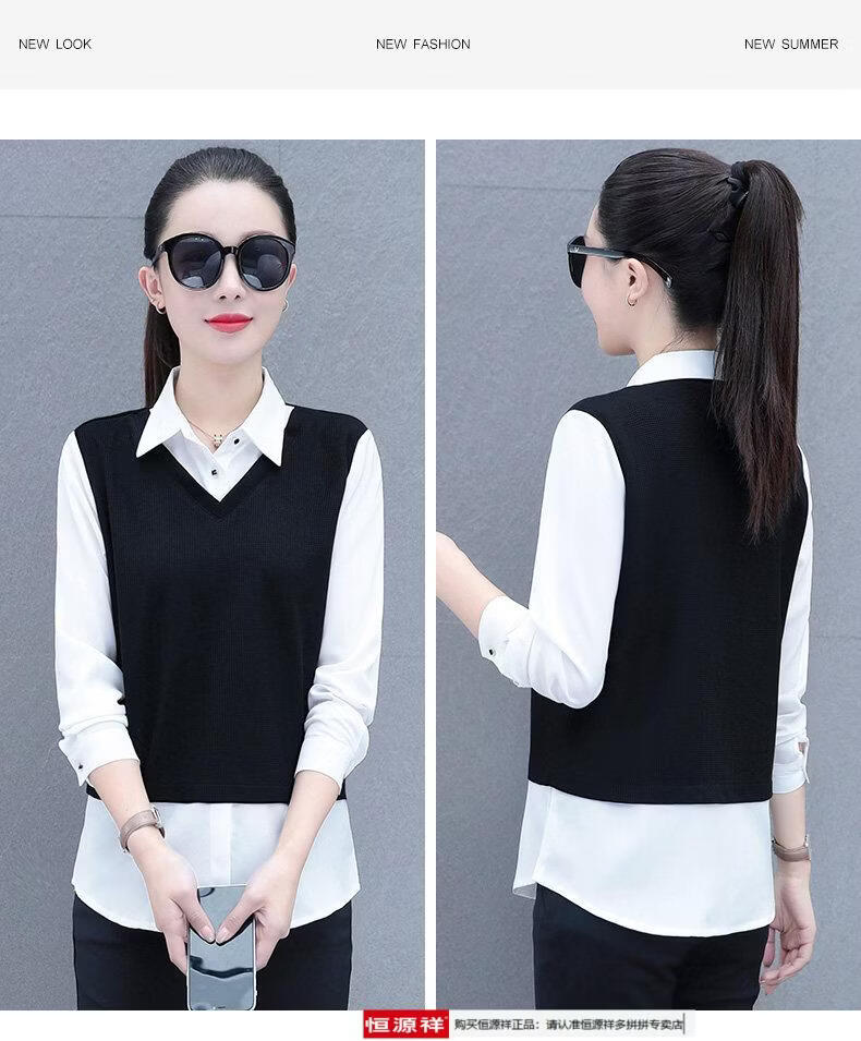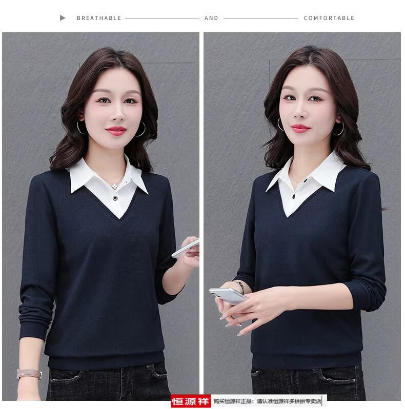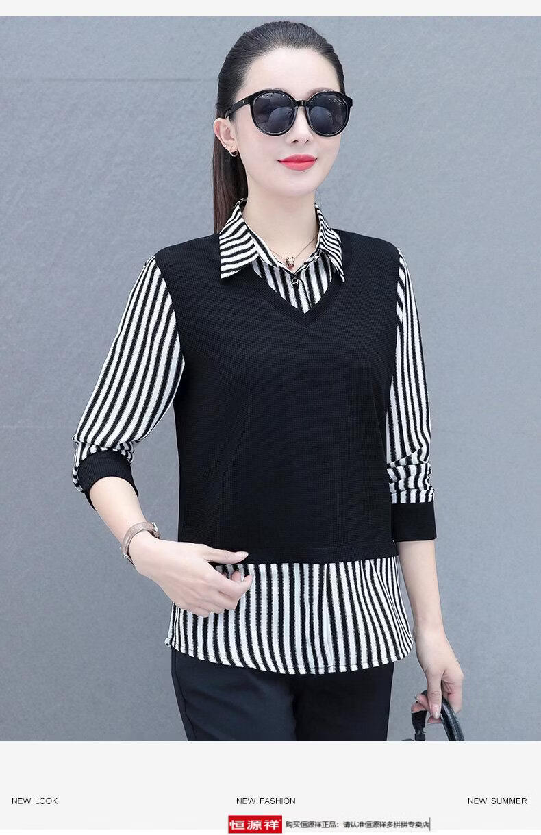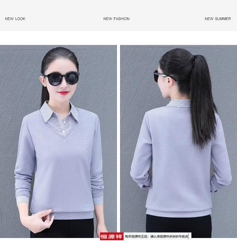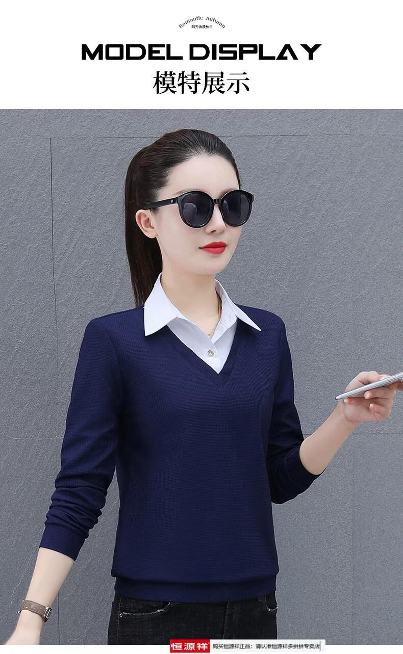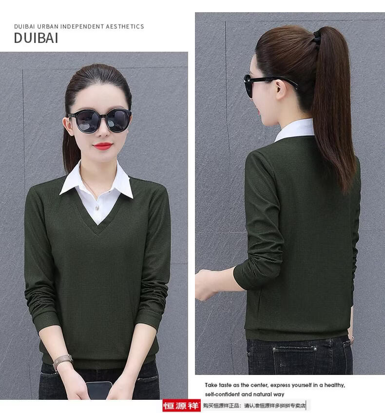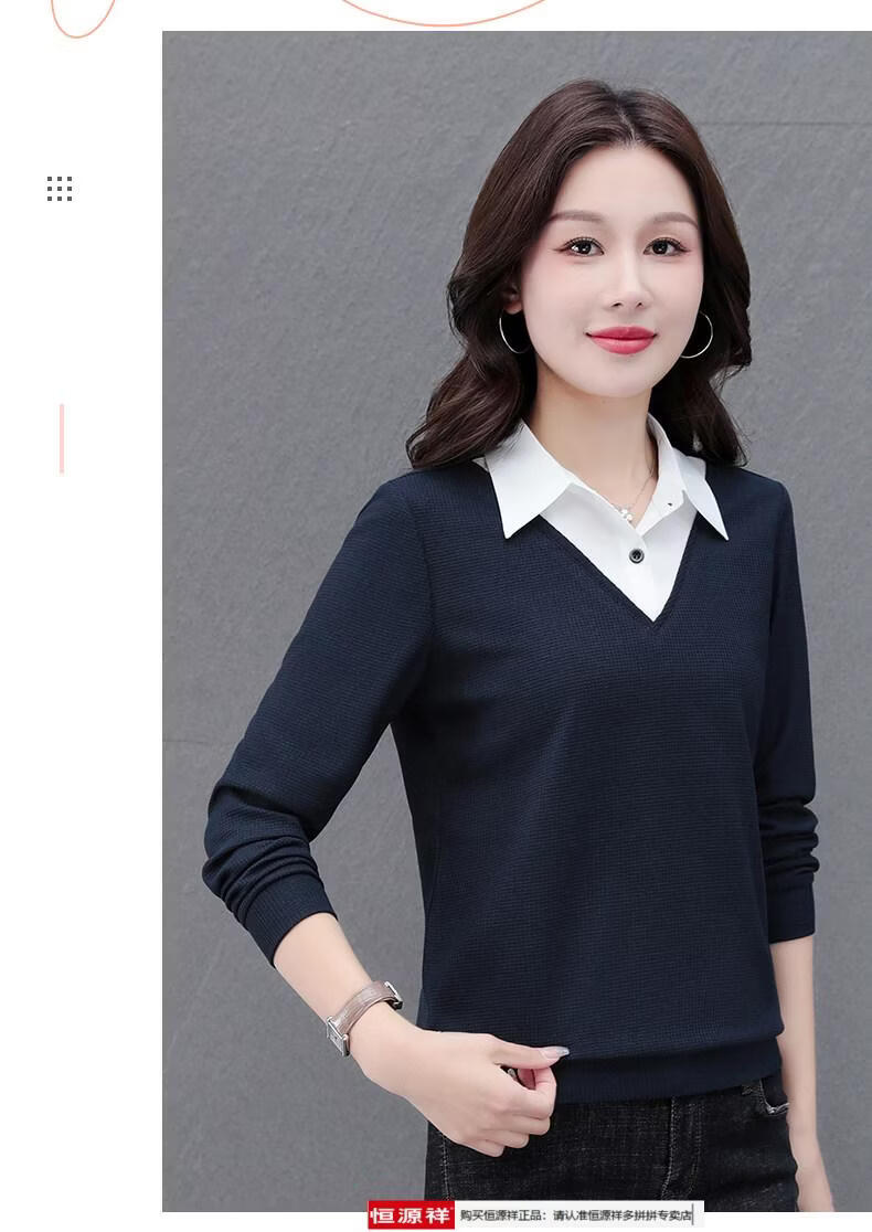 Hengyuan Xiang fake two-piece shirt women's long-sleeved spring and autumn new style middle-aged mother's shirt Western style versatile sweatshirt bottoming plus velvet top AK27 coffee color M recommended 80-105Jin Jin equals 0.5 kg