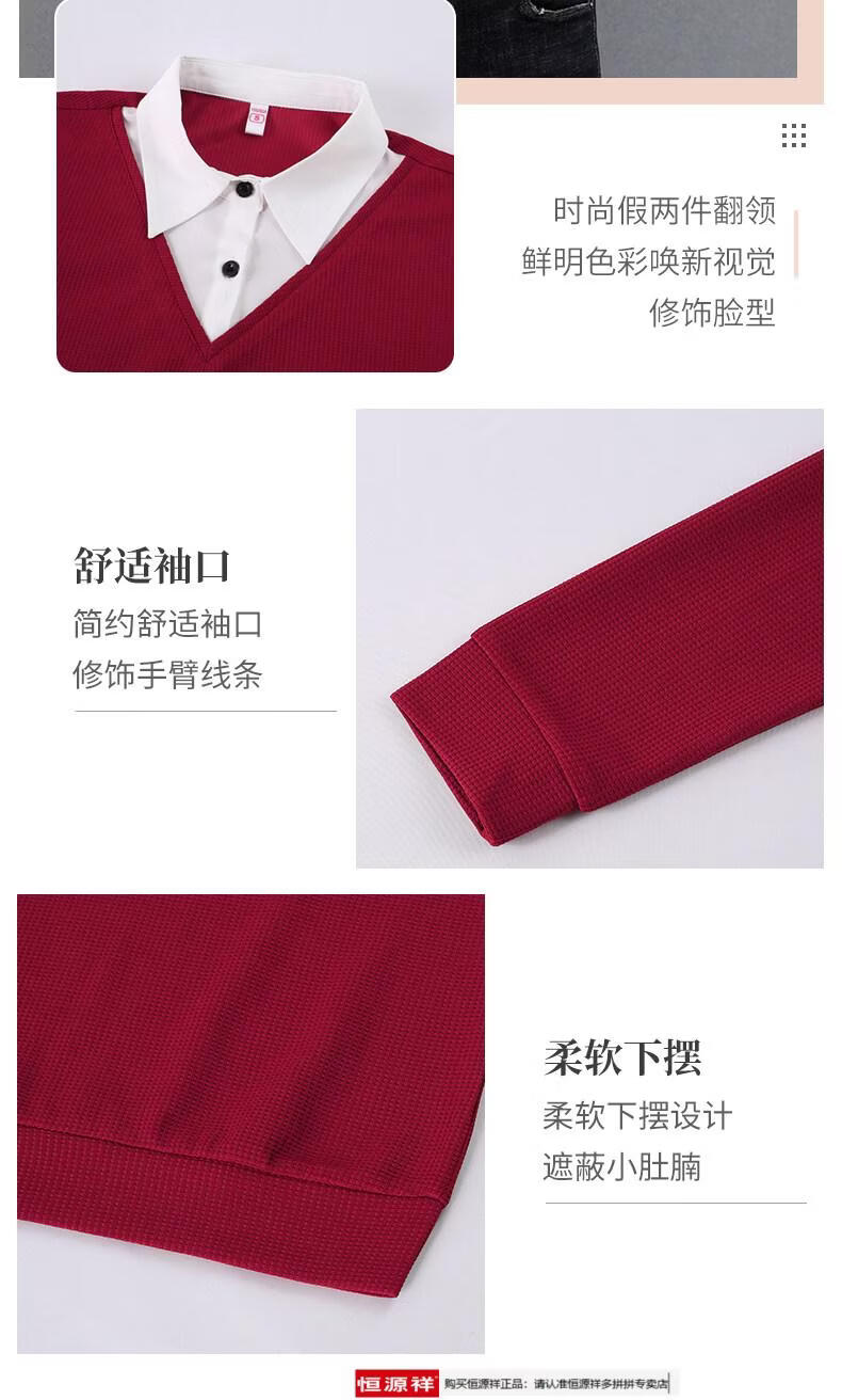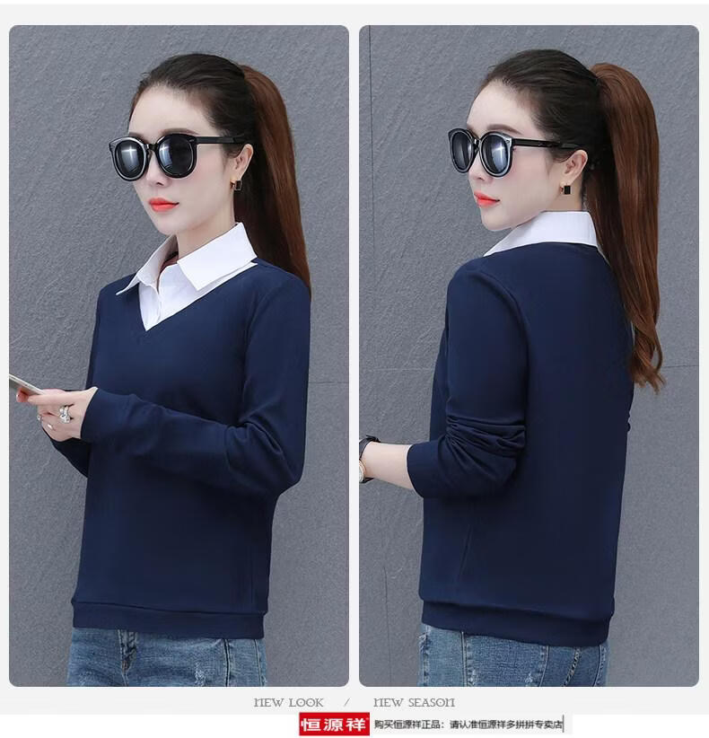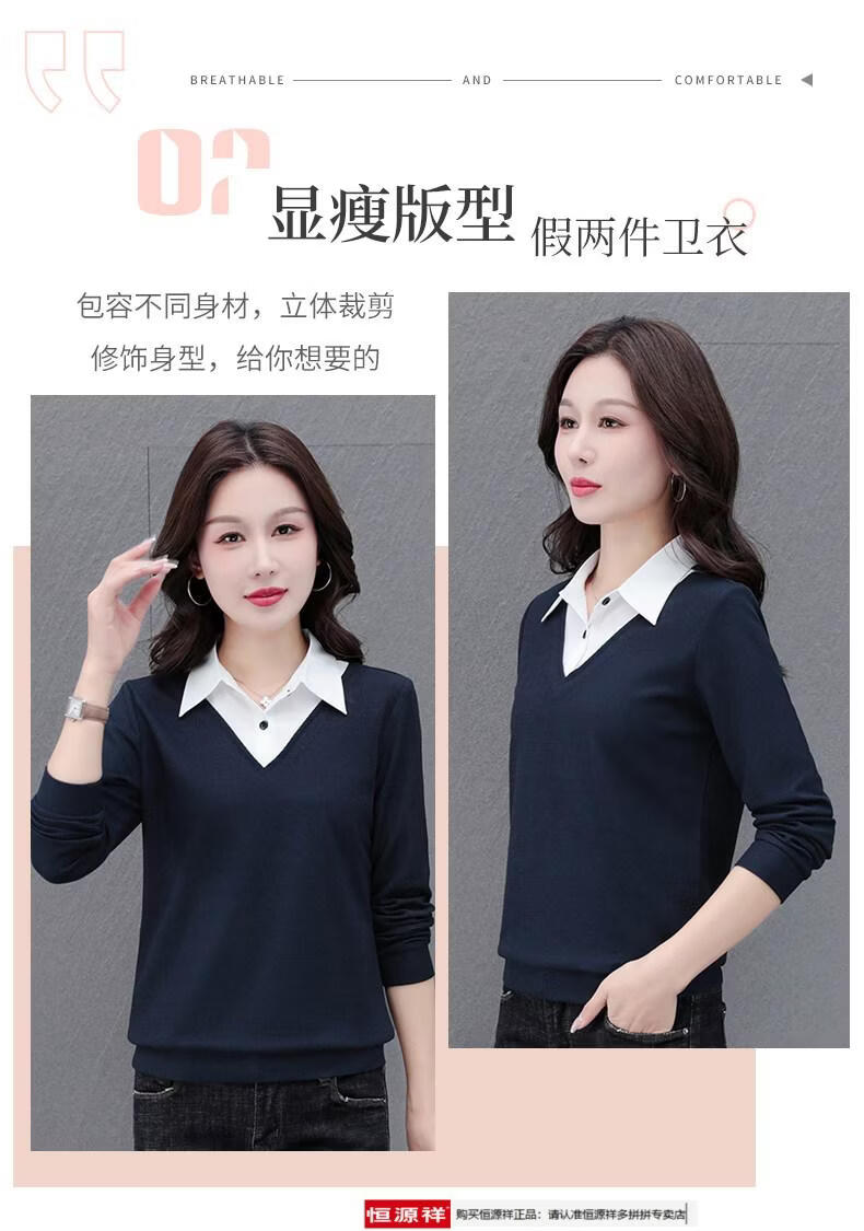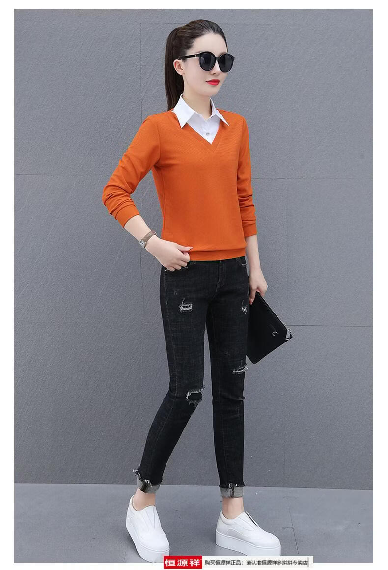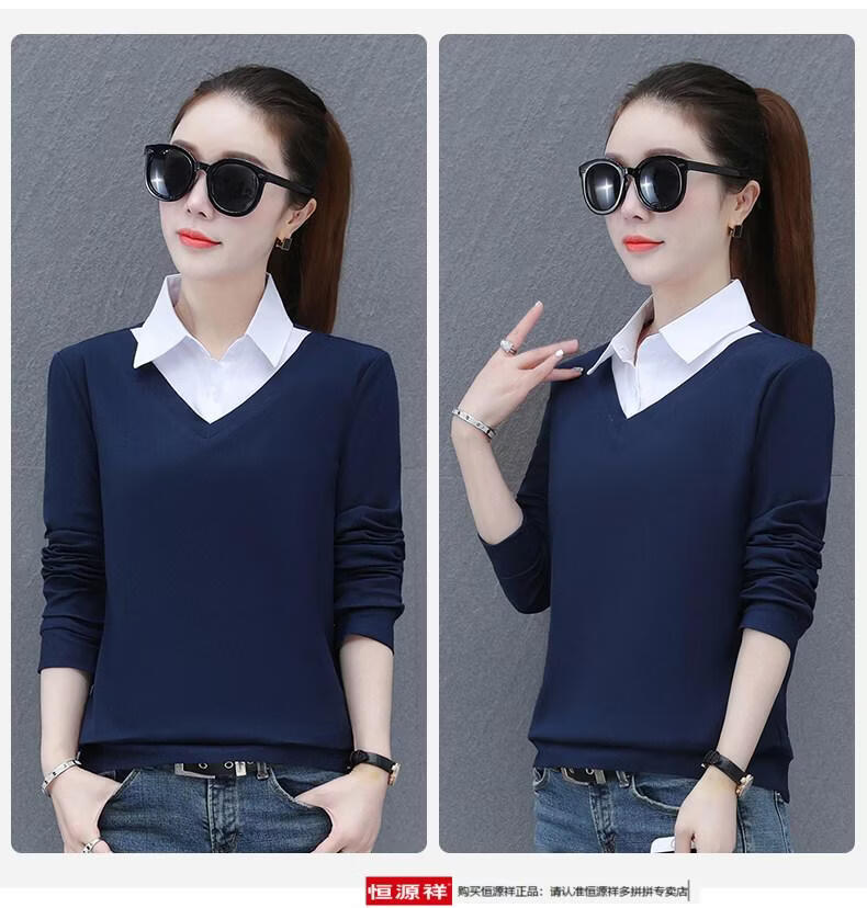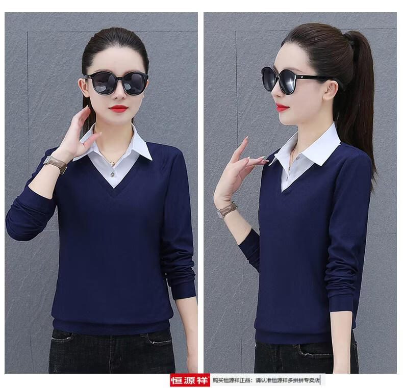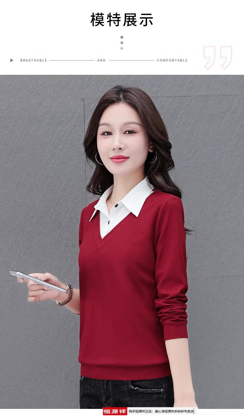 Hengyuan Xiang fake two-piece shirt women's long-sleeved spring and autumn new style middle-aged mother's shirt Western style versatile sweatshirt bottoming plus velvet top AK27 coffee color M recommended 80-105Jin Jin equals 0.5 kg