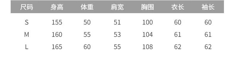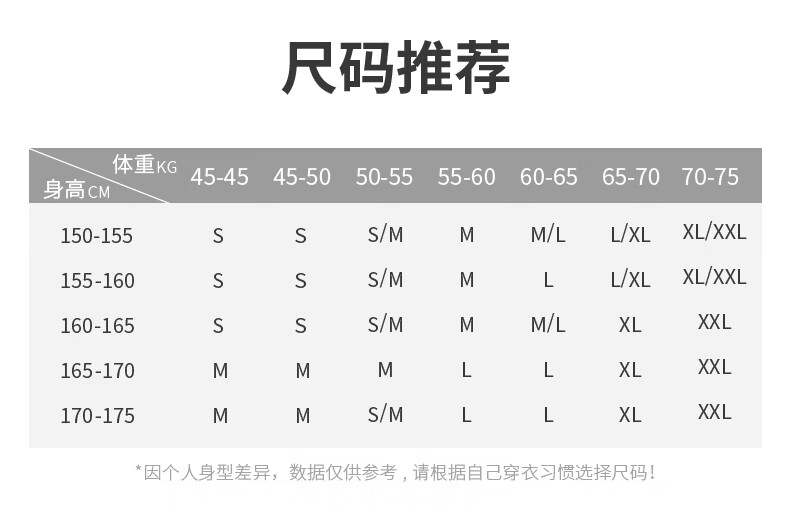 China (cm) 160-165/84-86 165-170 / 88-90 167-172 / 92-96 168-173 / 98-102 170-176 / 106-110