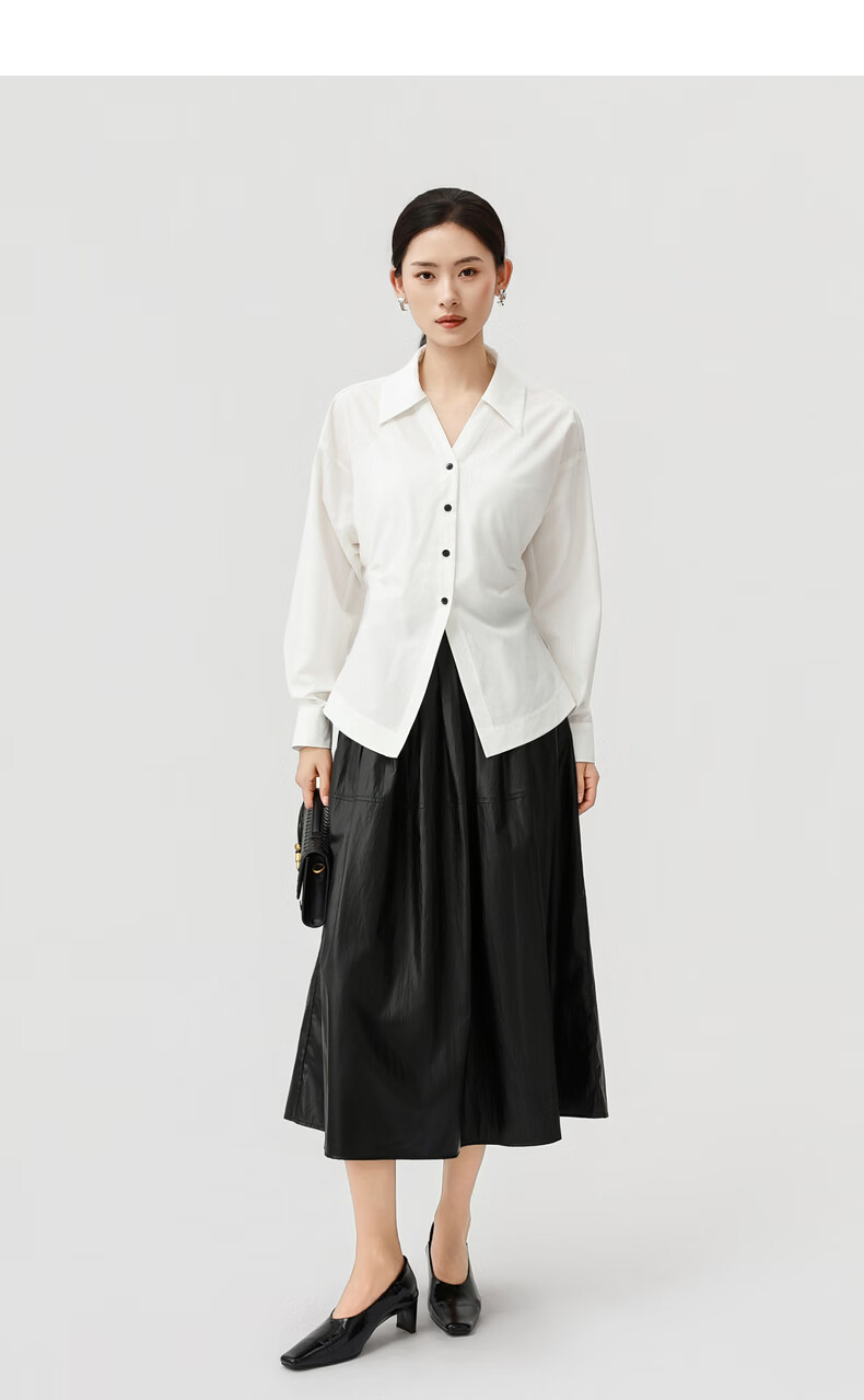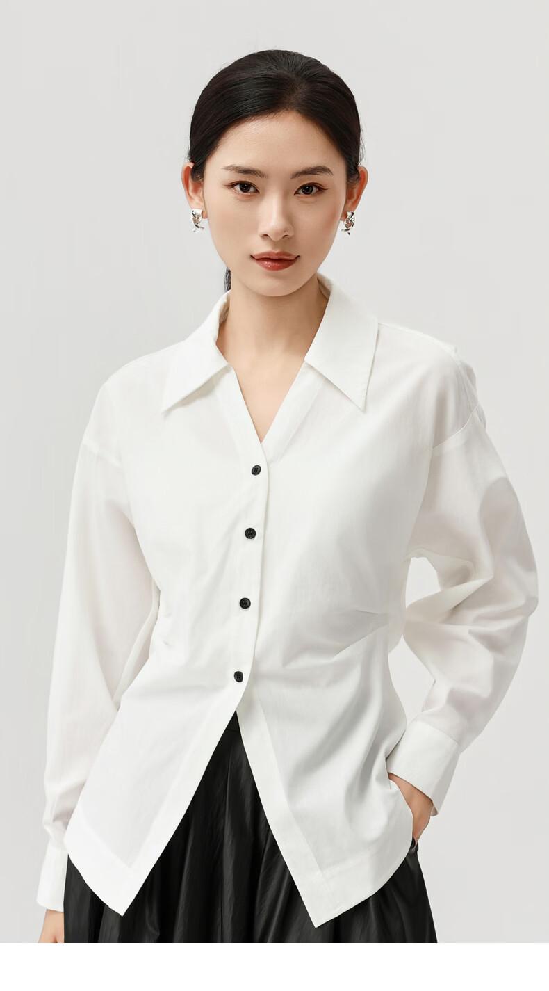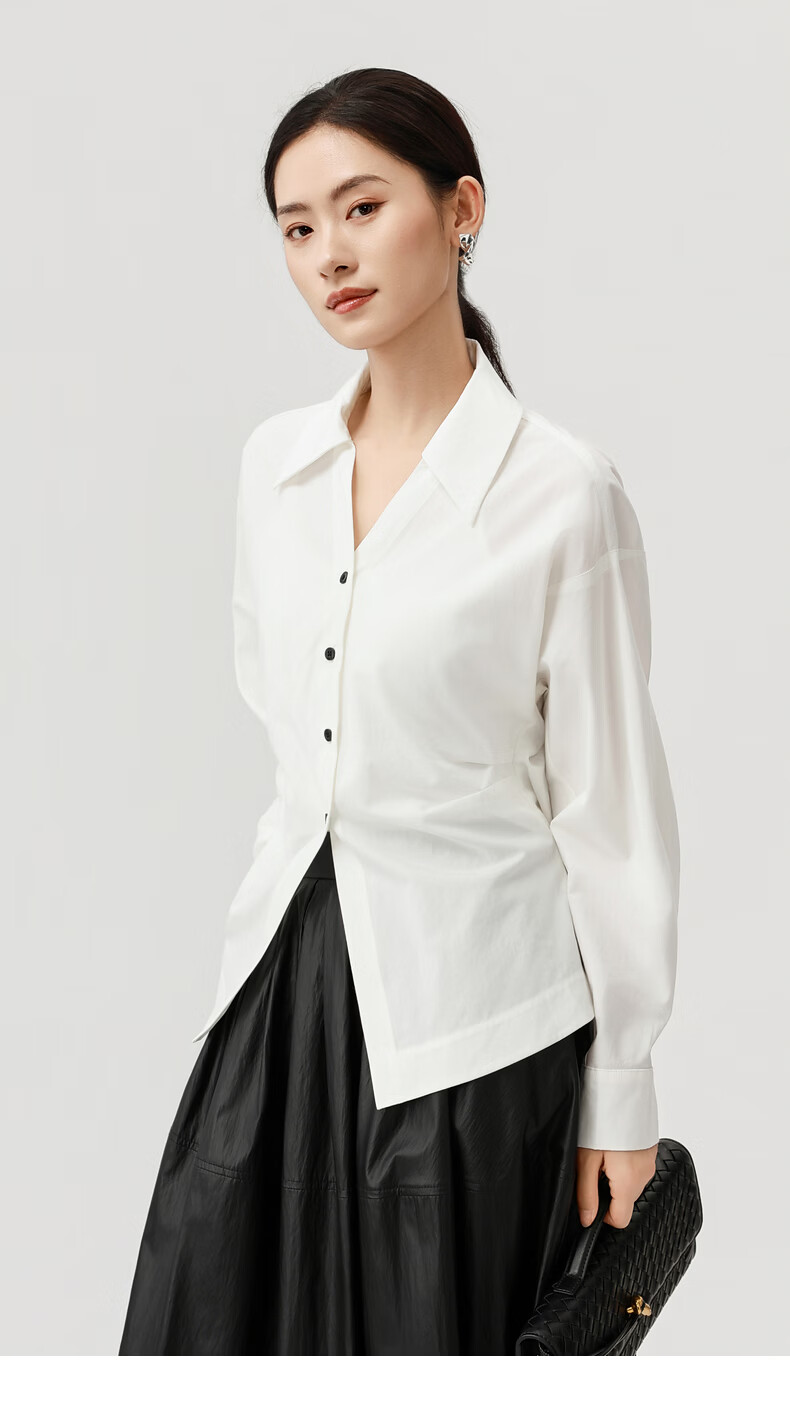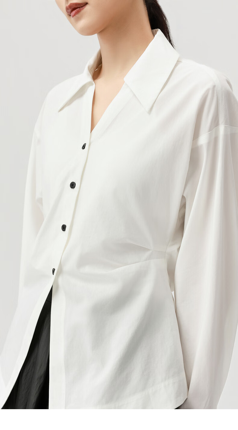 VIEA.ING shopping mall same style white shirt for women 2026 spring new style waist pleated shirt top white M