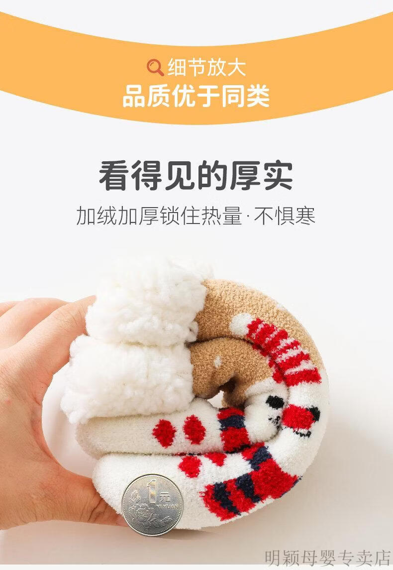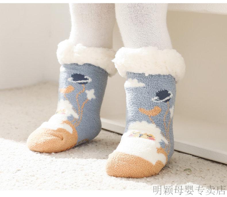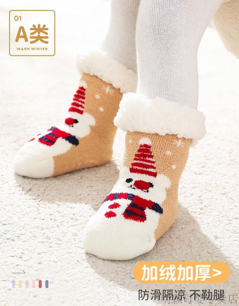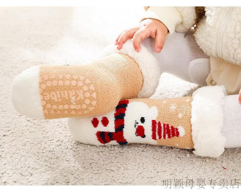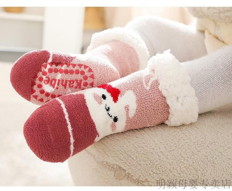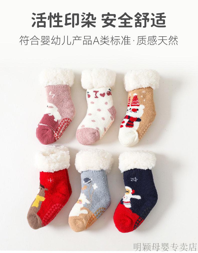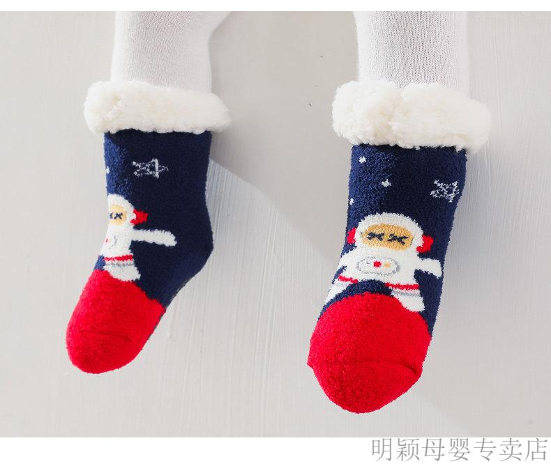 G.duck baby socks winter velvet thickening newborn children Christmas socks non-slip winter baby floor shoes and socks navy + blue (velvet thickening) 2 pairs 2-4 years old (M) recommended foot length 13-16cm age