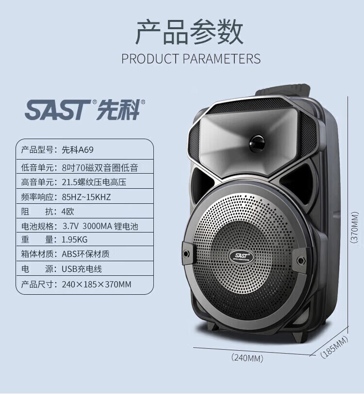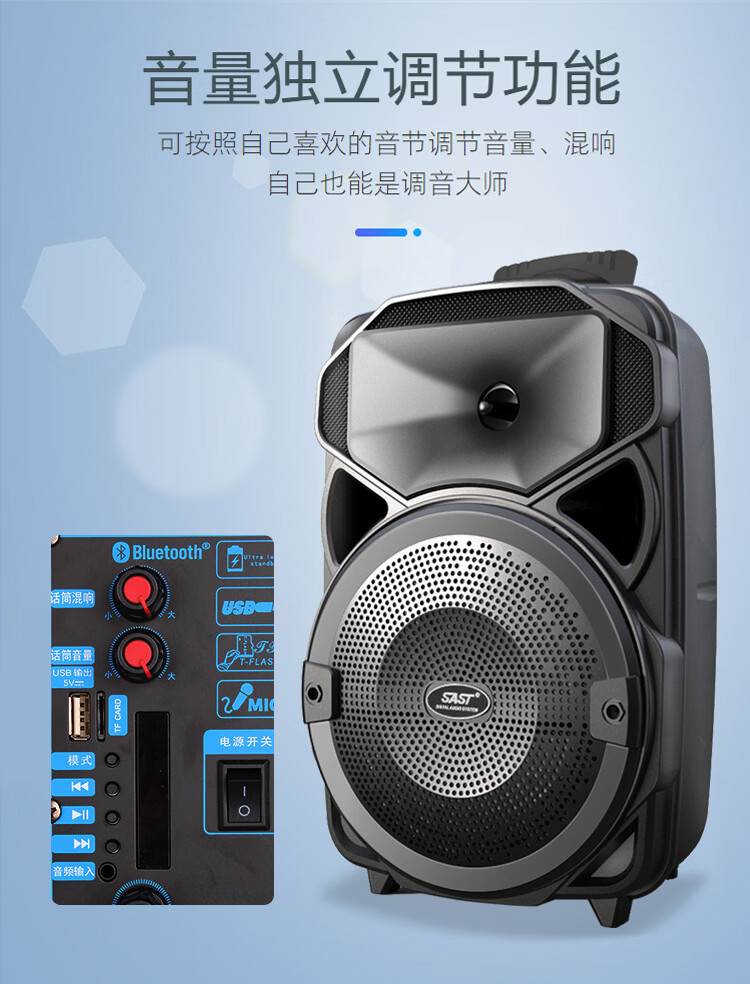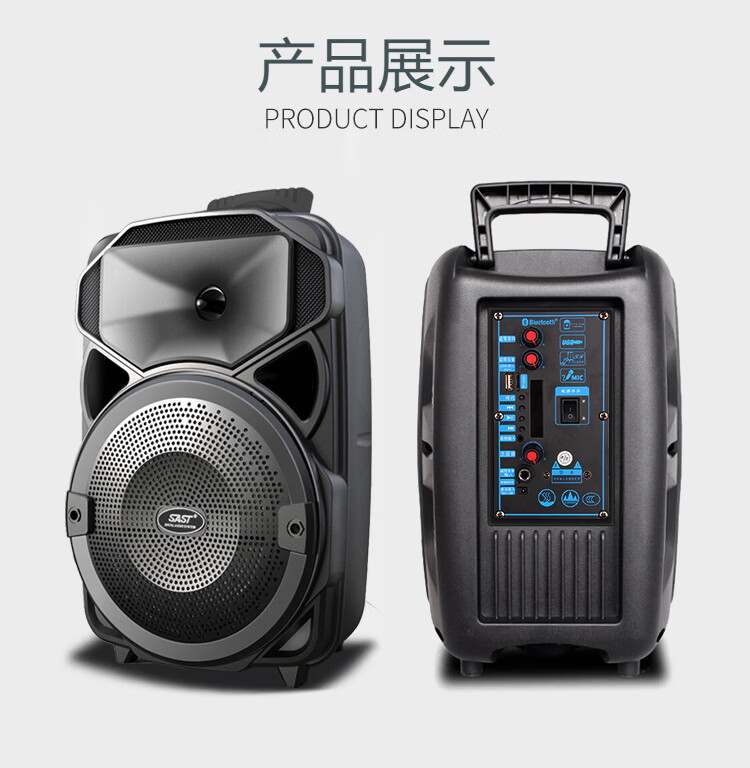Xianke Square Dance Audio Outdoor High Power Mobile Trolley Speaker Wireless Bluetooth Large Volume Karaoke Special Portable Dual Microphone ST-809SW Portable Bluetooth Speaker