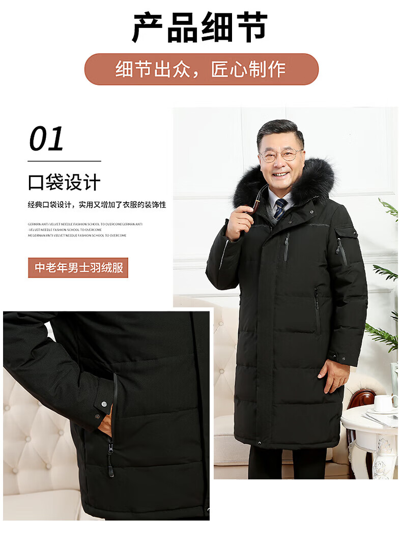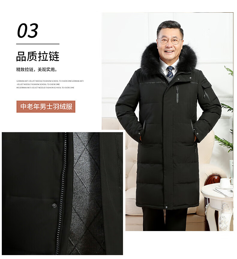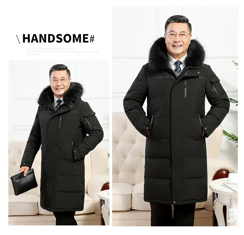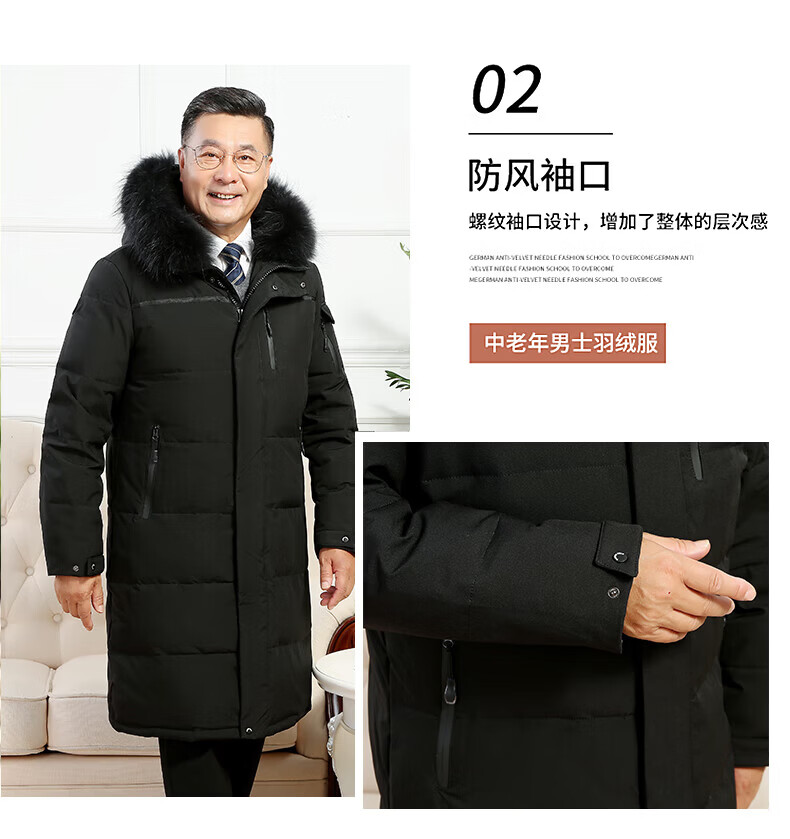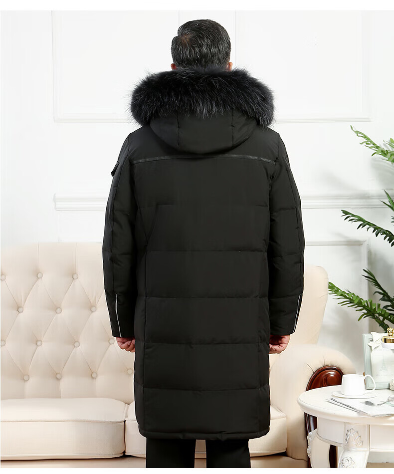 雅鹿羽绒服男冬季中老年人过膝长款大码白鸭绒加厚保暖爸爸装外套 黑 黑色【866无毛领款】 M 尺码【建议体重90-115斤】