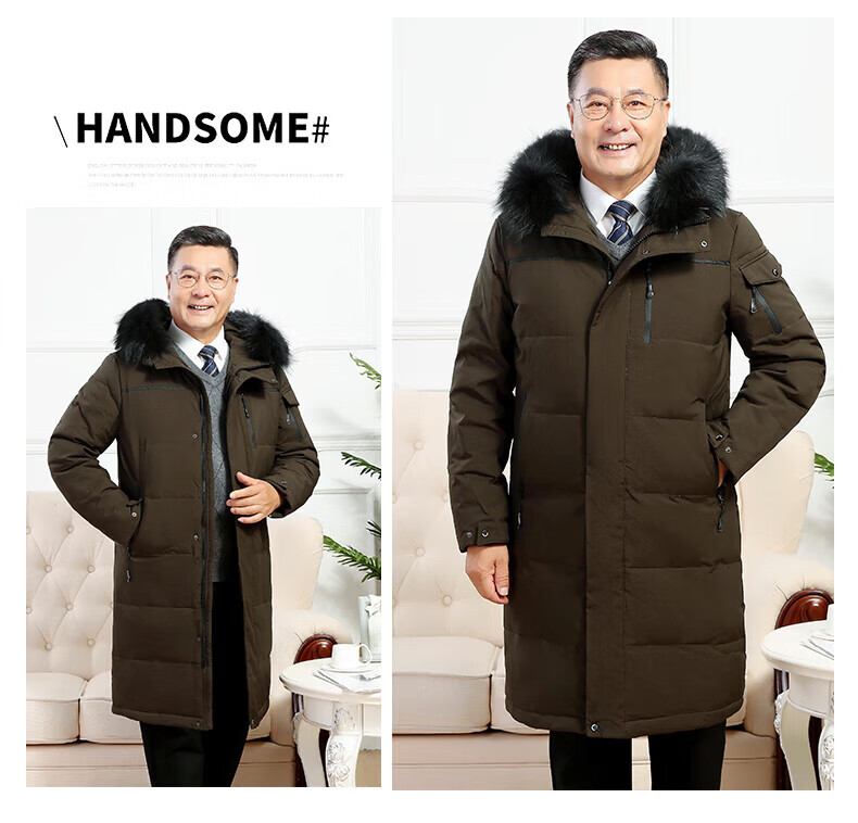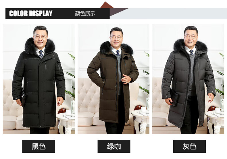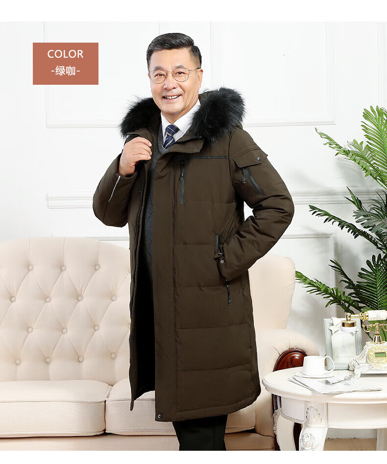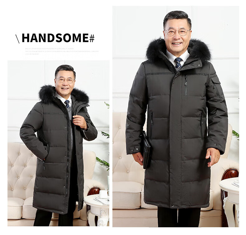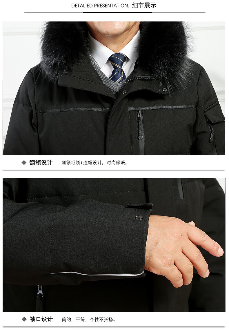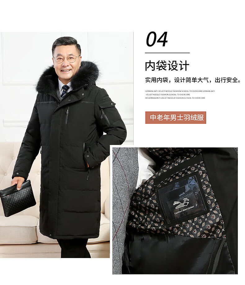 雅鹿羽绒服男冬季中老年人过膝长款大码白鸭绒加厚保暖爸爸装外套 黑 黑色【866无毛领款】 M 尺码【建议体重90-115斤】