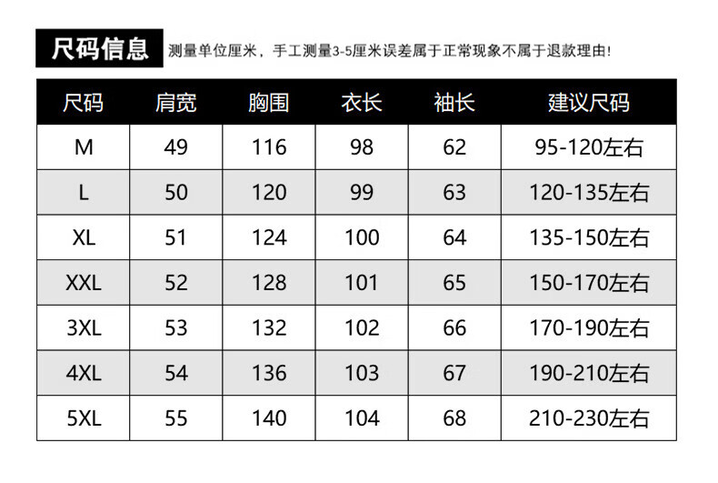China (cm) 165 / 88-90 170 / 96-98 175 / 108-110 180 / 118-122 185 / 126-130