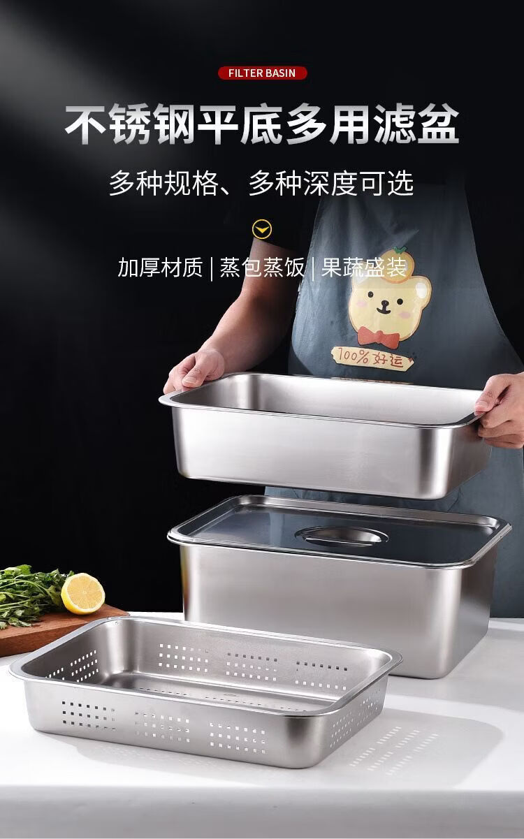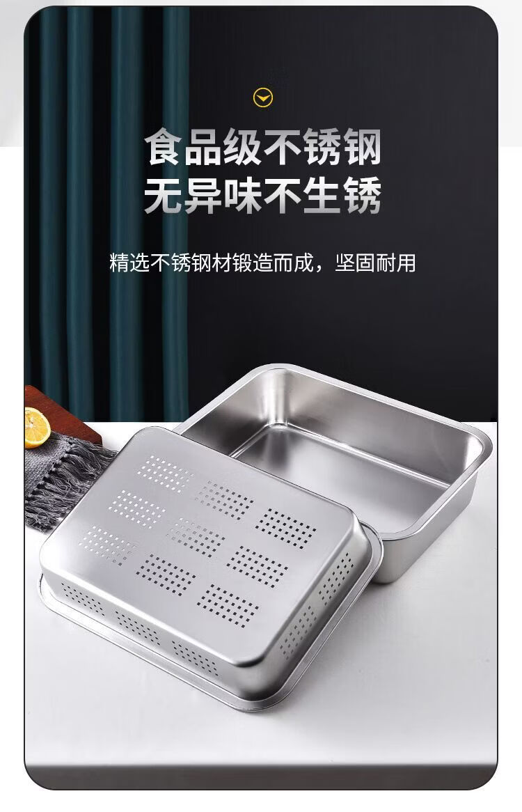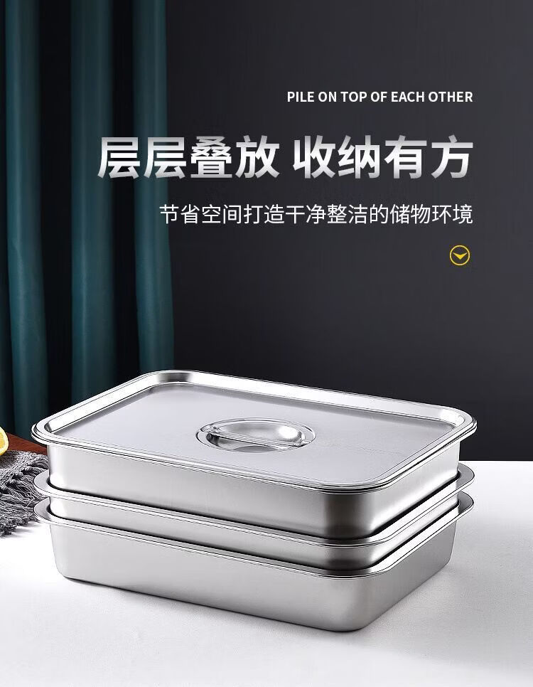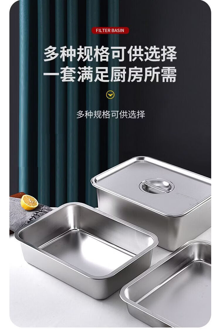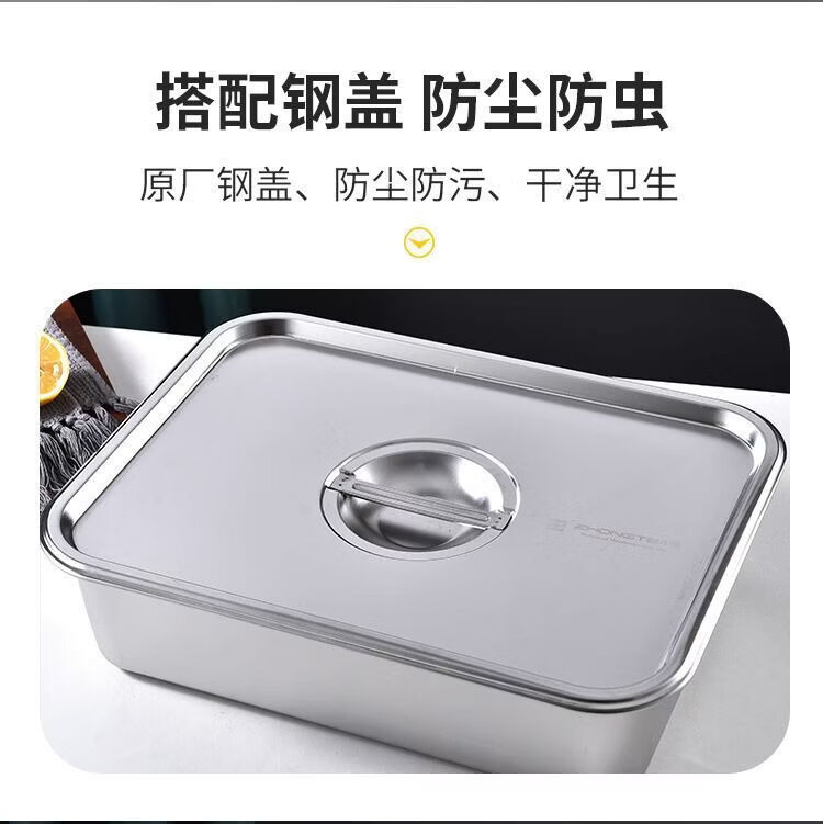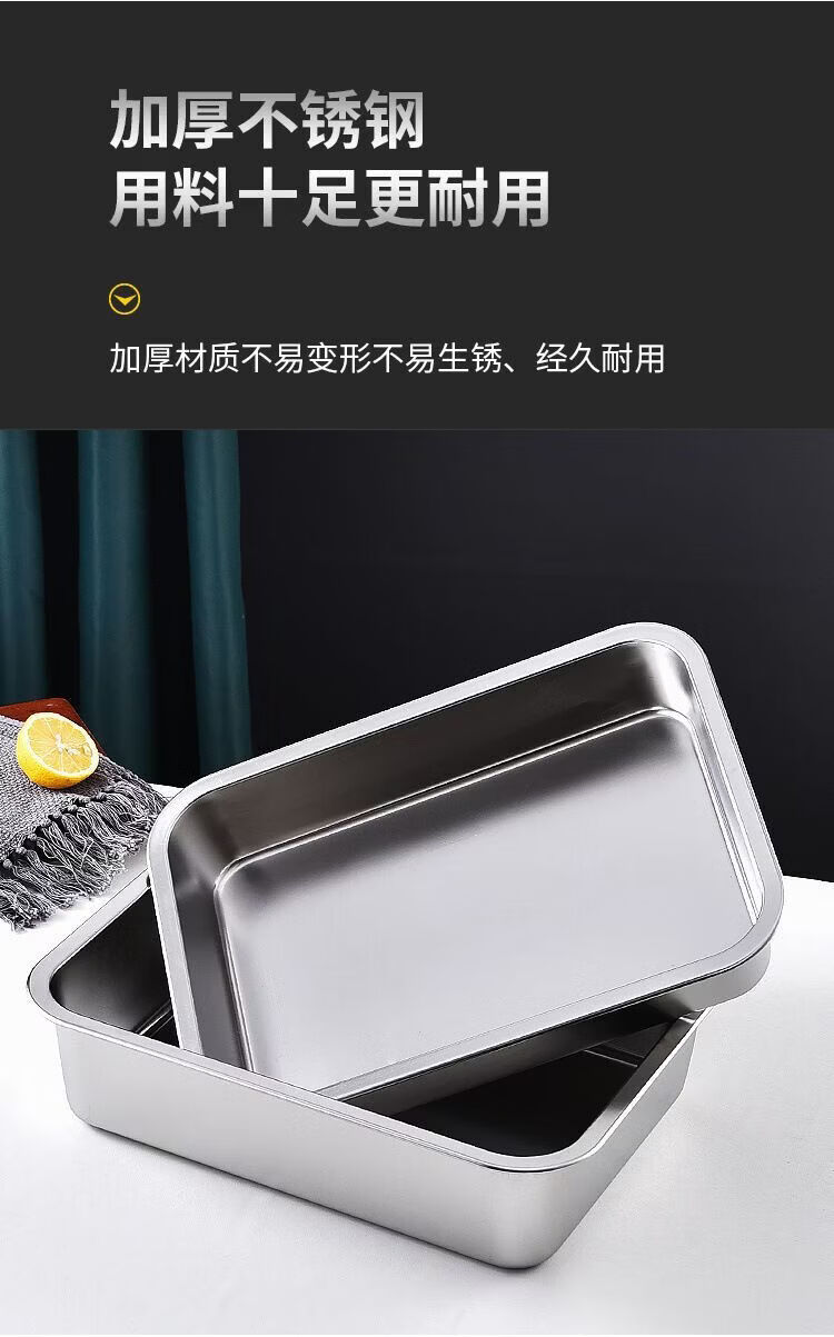 FANCYCHIC304 stainless steel tray right-angle flat chassis rectangular white steel square basin canteen commercial serving tray with lid square box thickened flat bottom square tray 50*35*7cm