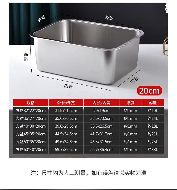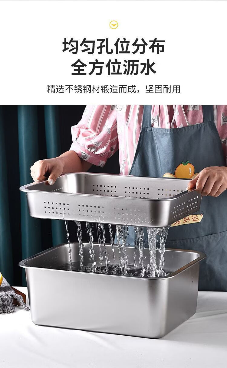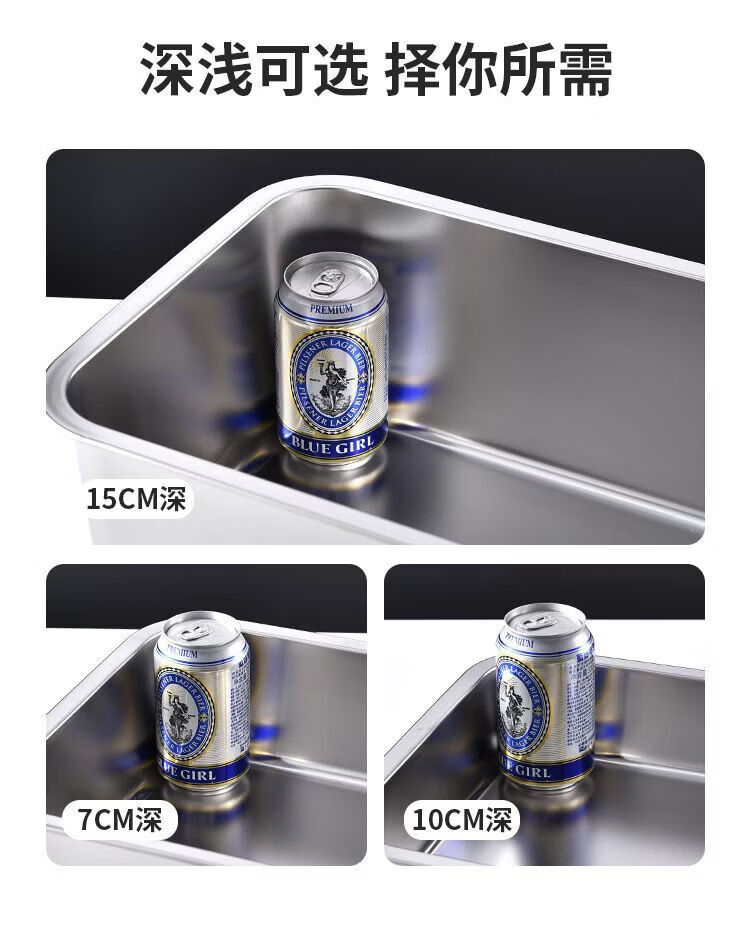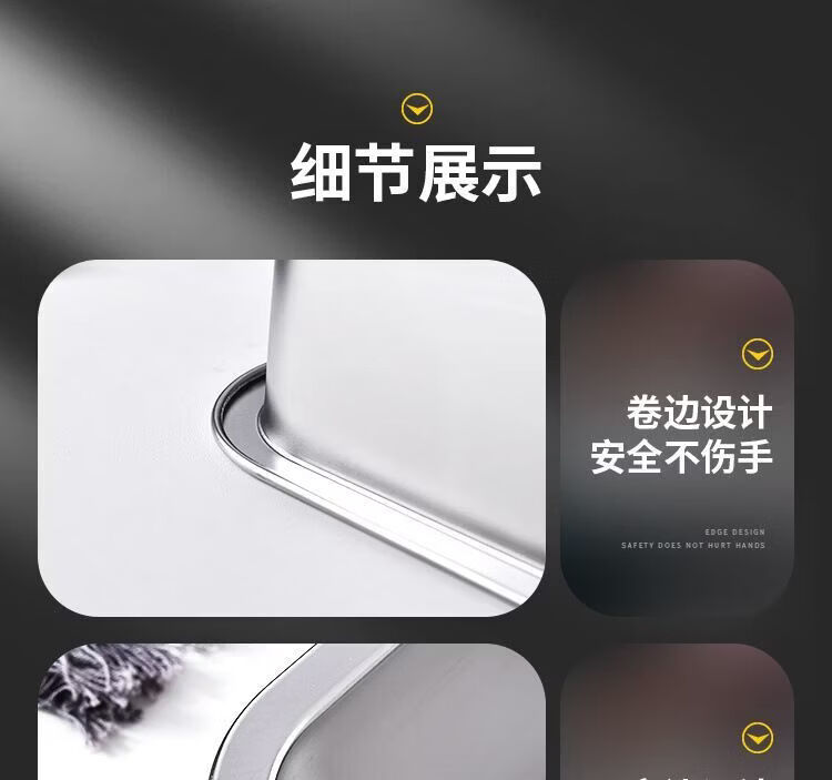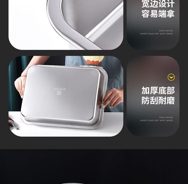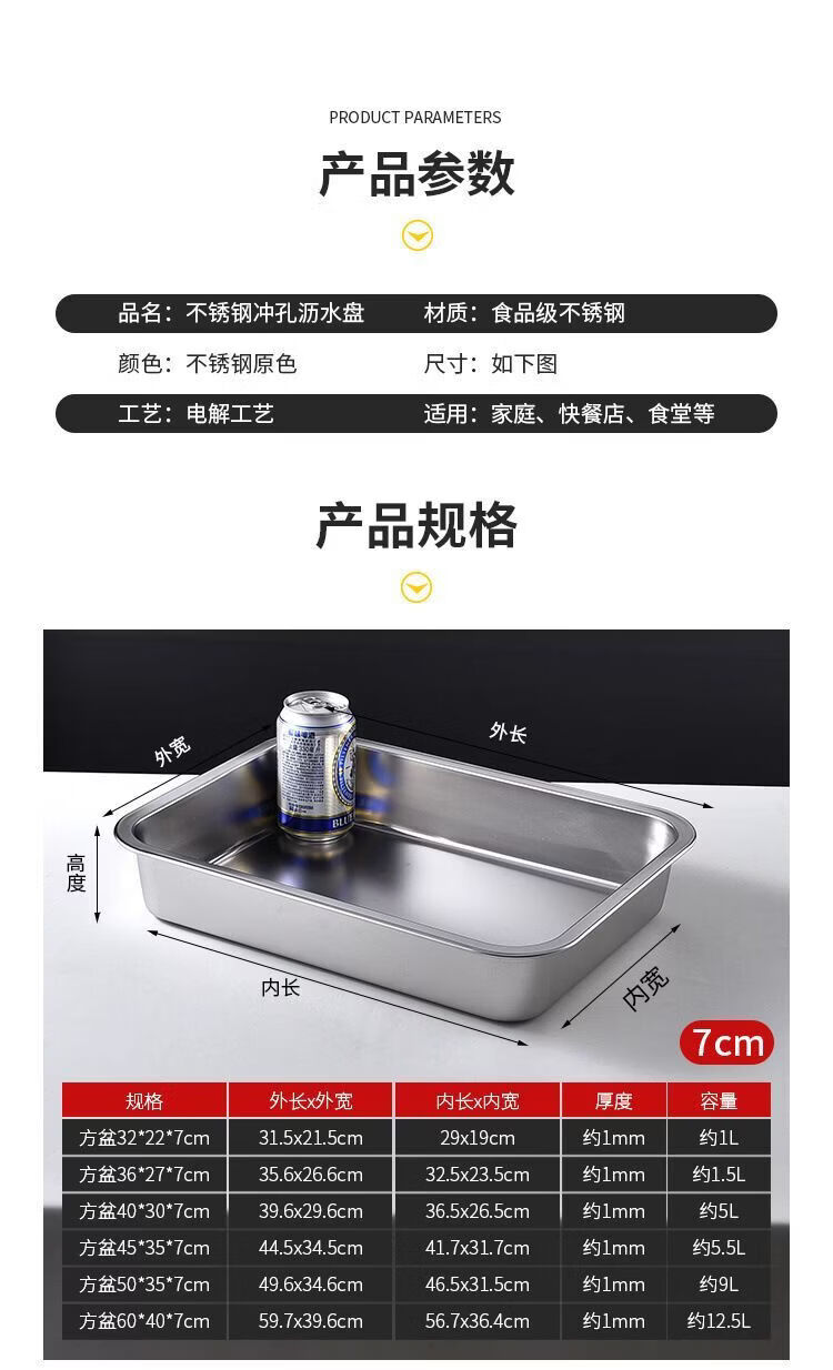 FANCYCHIC304 stainless steel tray right-angle flat chassis rectangular white steel square basin canteen commercial serving tray with lid square box thickened flat bottom square tray 50*35*7cm