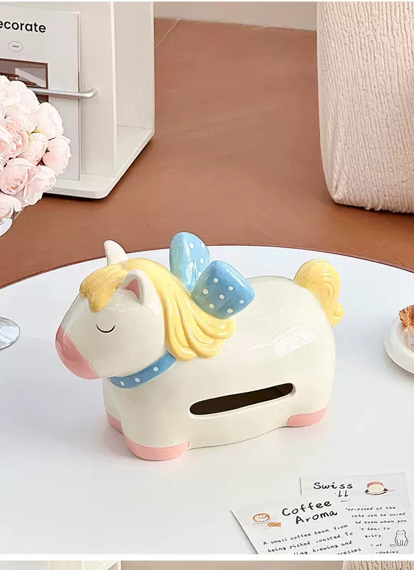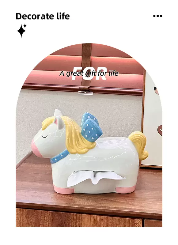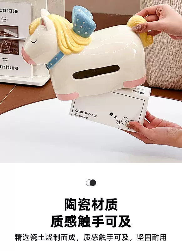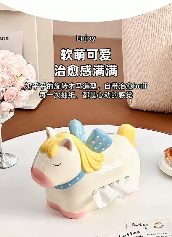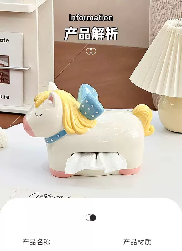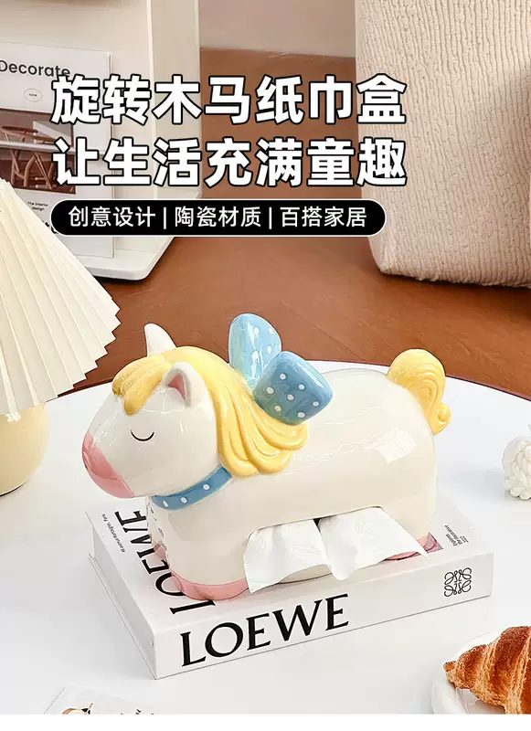 Yusenyi Carousel Tissue Box Ceramic Home Napkin Storage Box 2026 Year of the Horse Decorative Living Room Desktop Ornaments (1 Pack) Purple Eggplant
