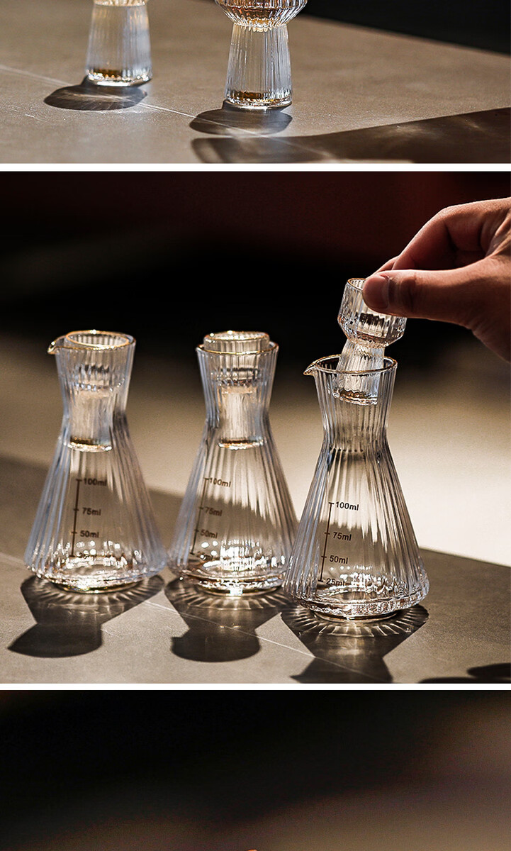 Yusenyi Chinese-style liquor cup wine divider wine set household glass one-cup small wine cup creative with scale wine divider transparent model 6 pots 6 cups storage cup holder