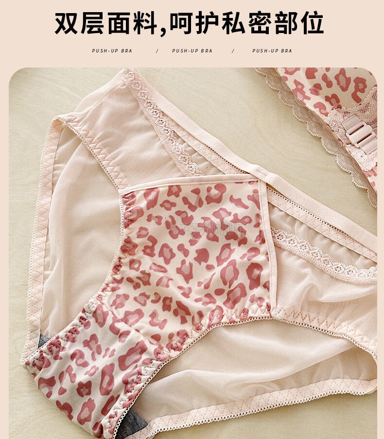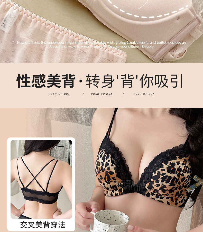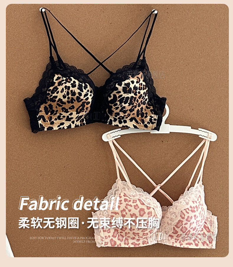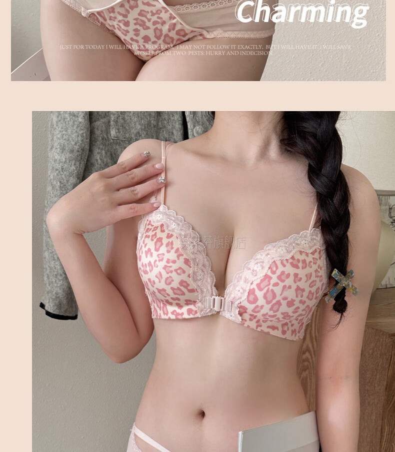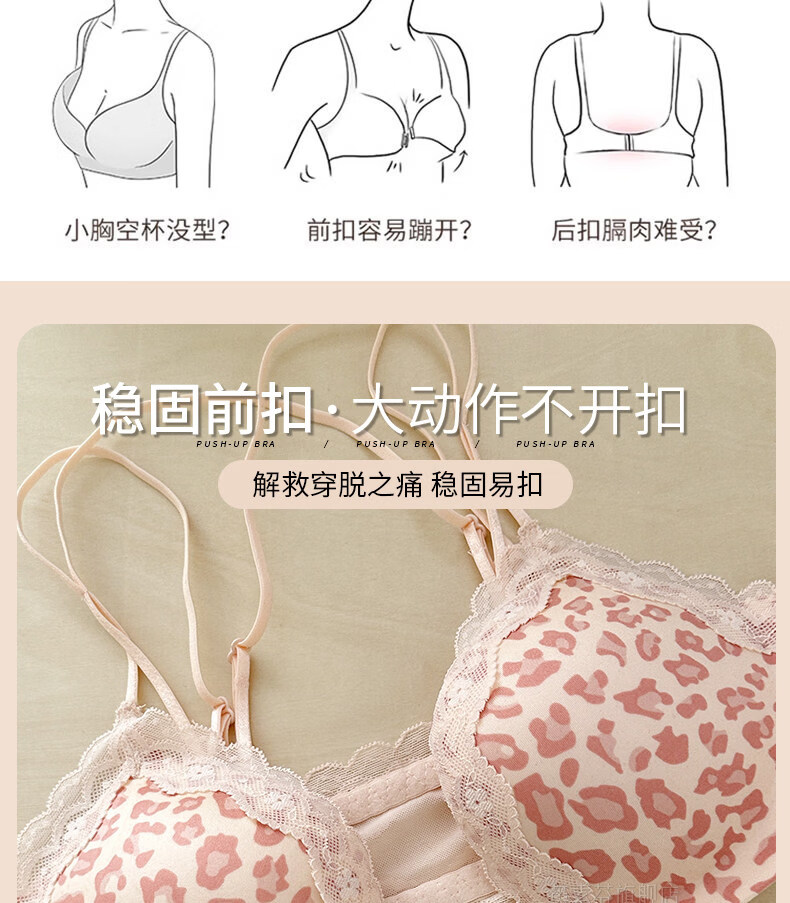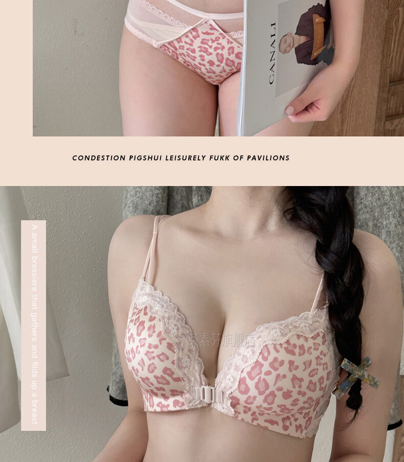 LangSha beautiful back bra for women, push-up small bra, flat chest, big leopard print, sexy fashionable adjustable front button bra set, pink single piece 70A 32