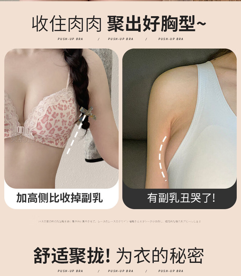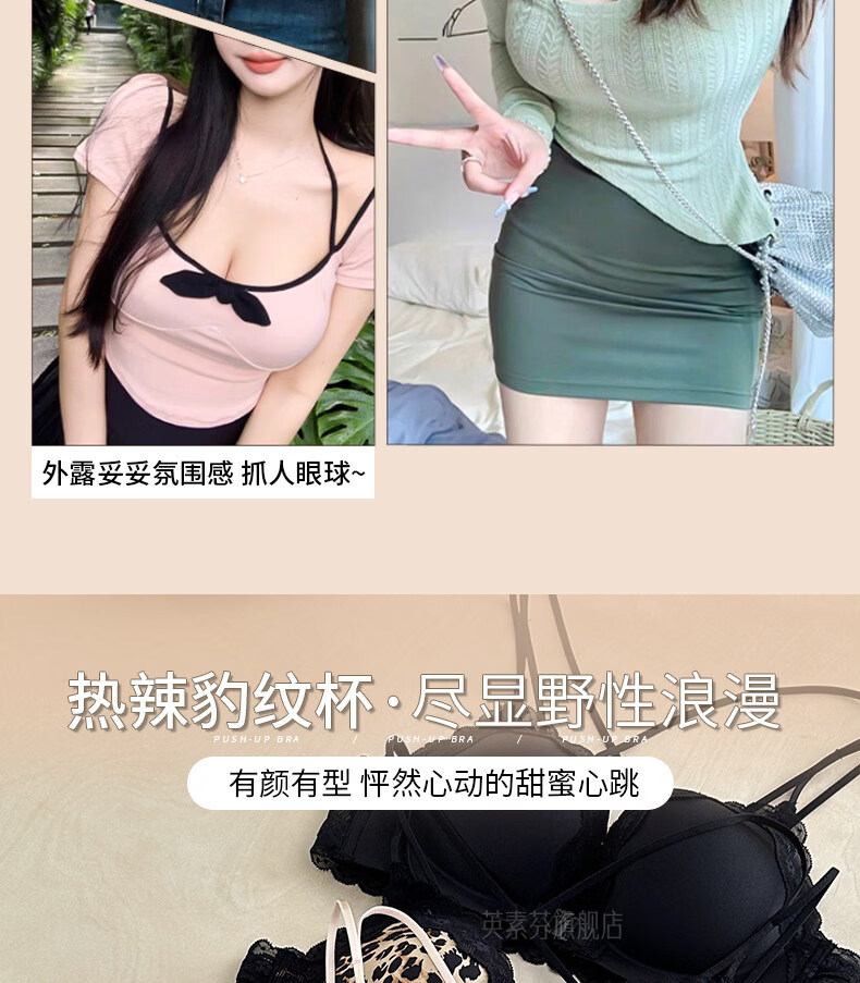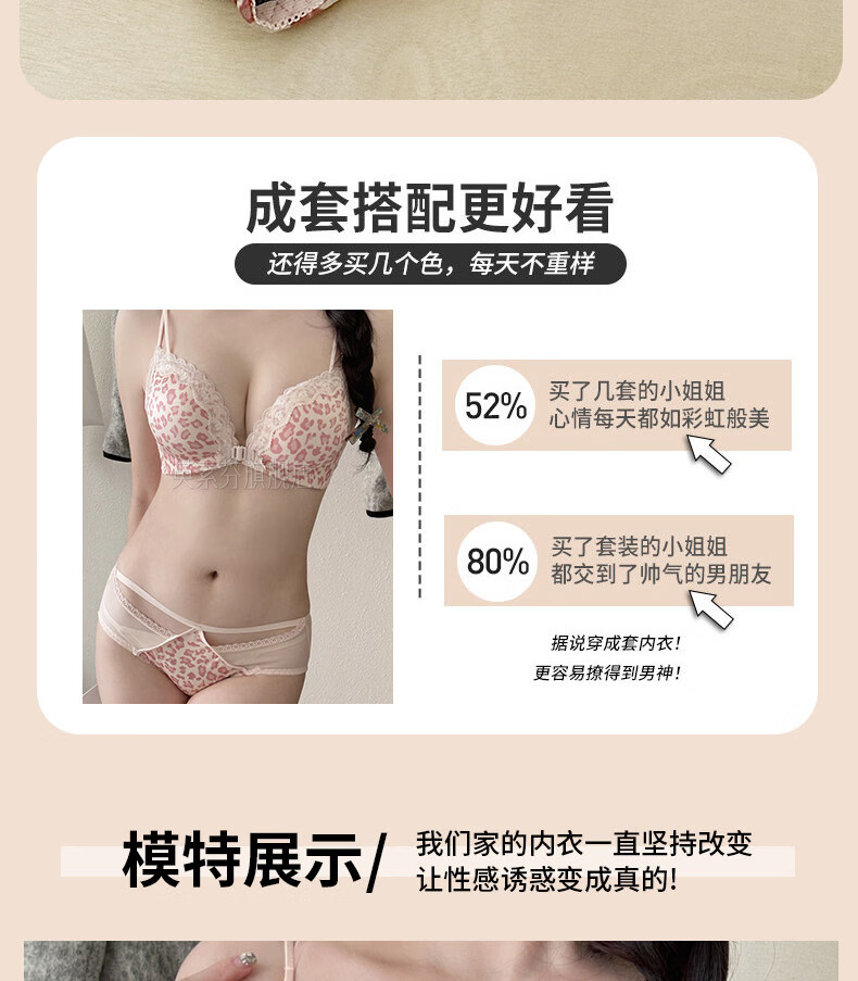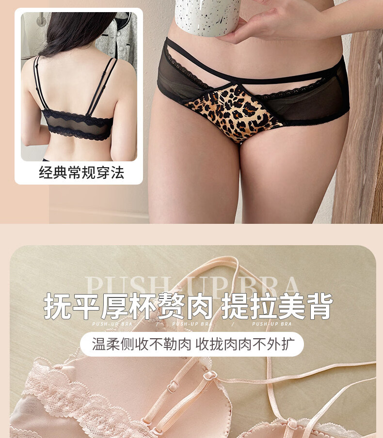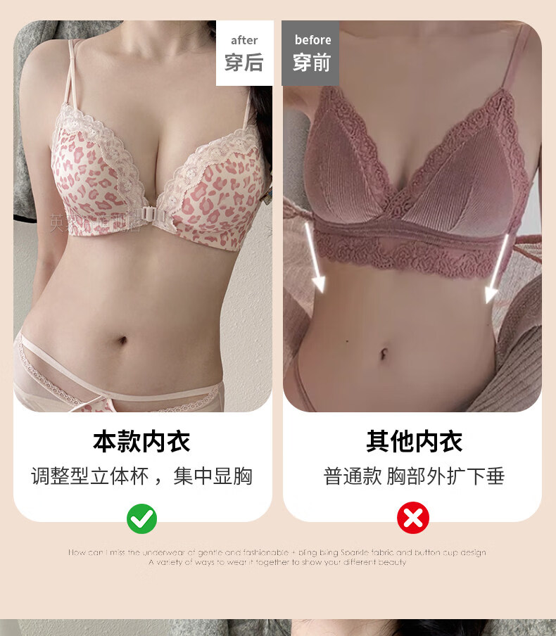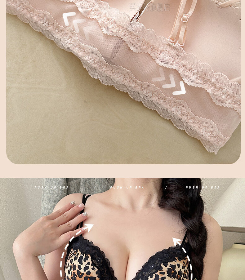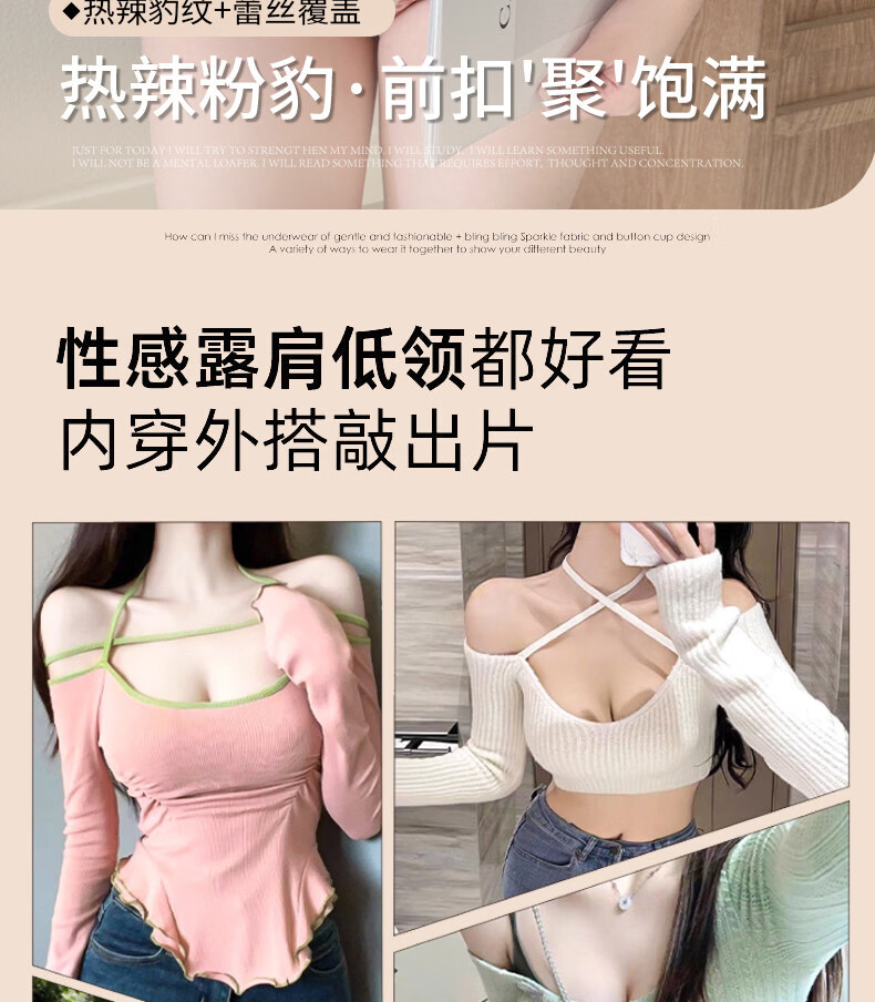 LangSha beautiful back bra for women, push-up small bra, flat chest, big leopard print, sexy fashionable adjustable front button bra set, pink single piece 70A 32