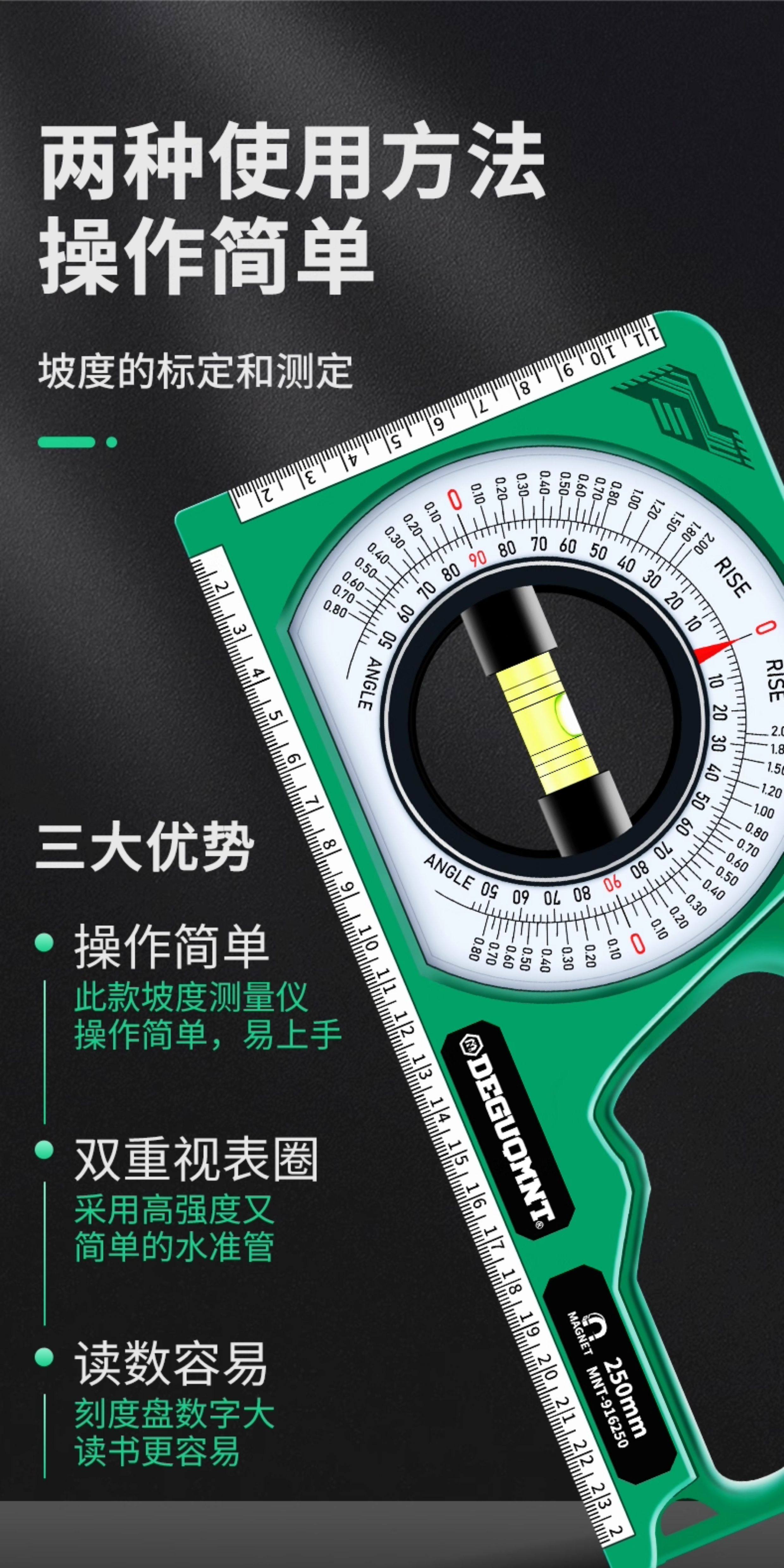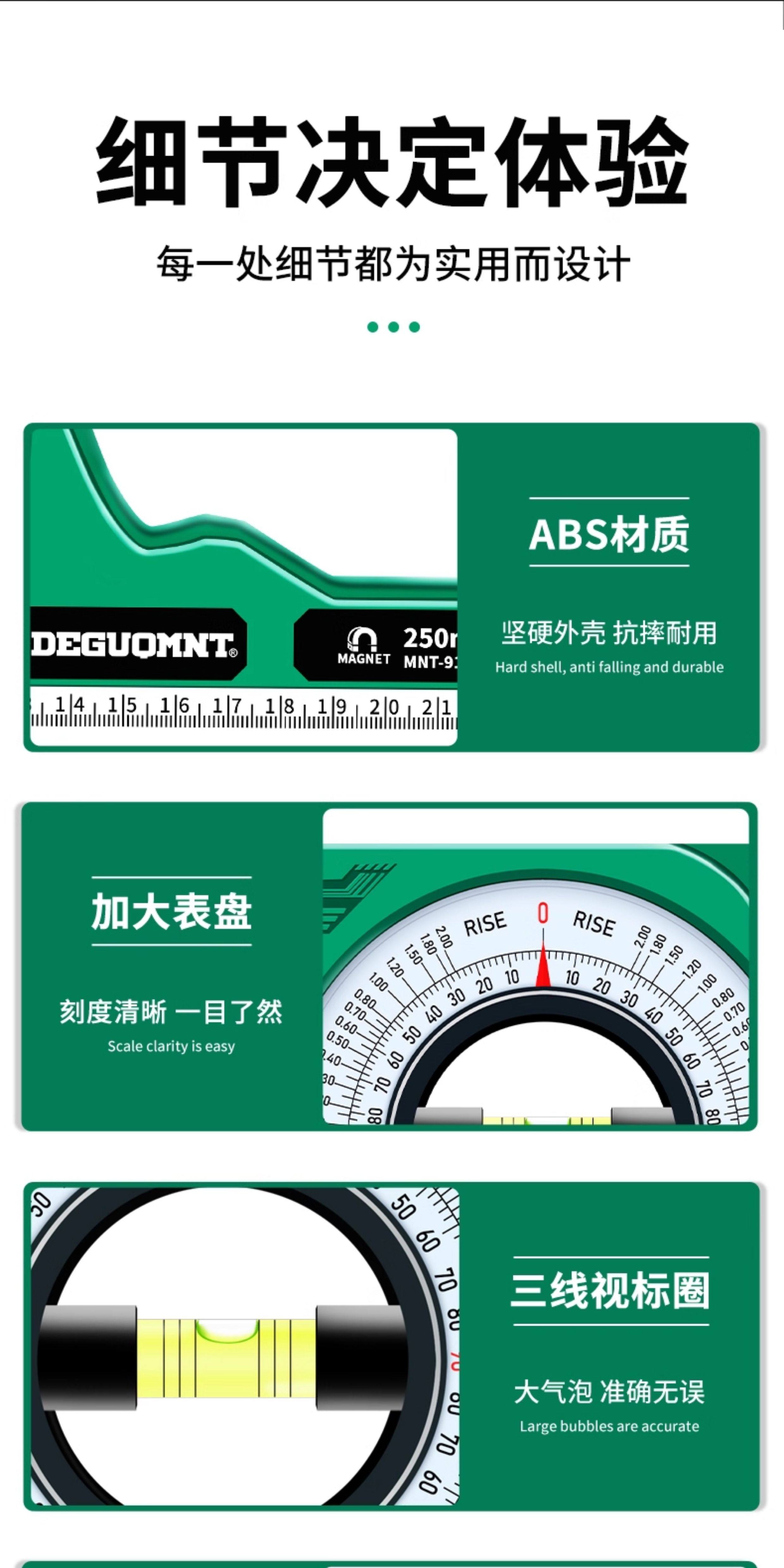 Minite German Minite high-precision strong magnetic slope ruler measuring angle meter balancer multi-function small level ruler professional type with strong magnetic multi-function slope ruler-comes with carabiner