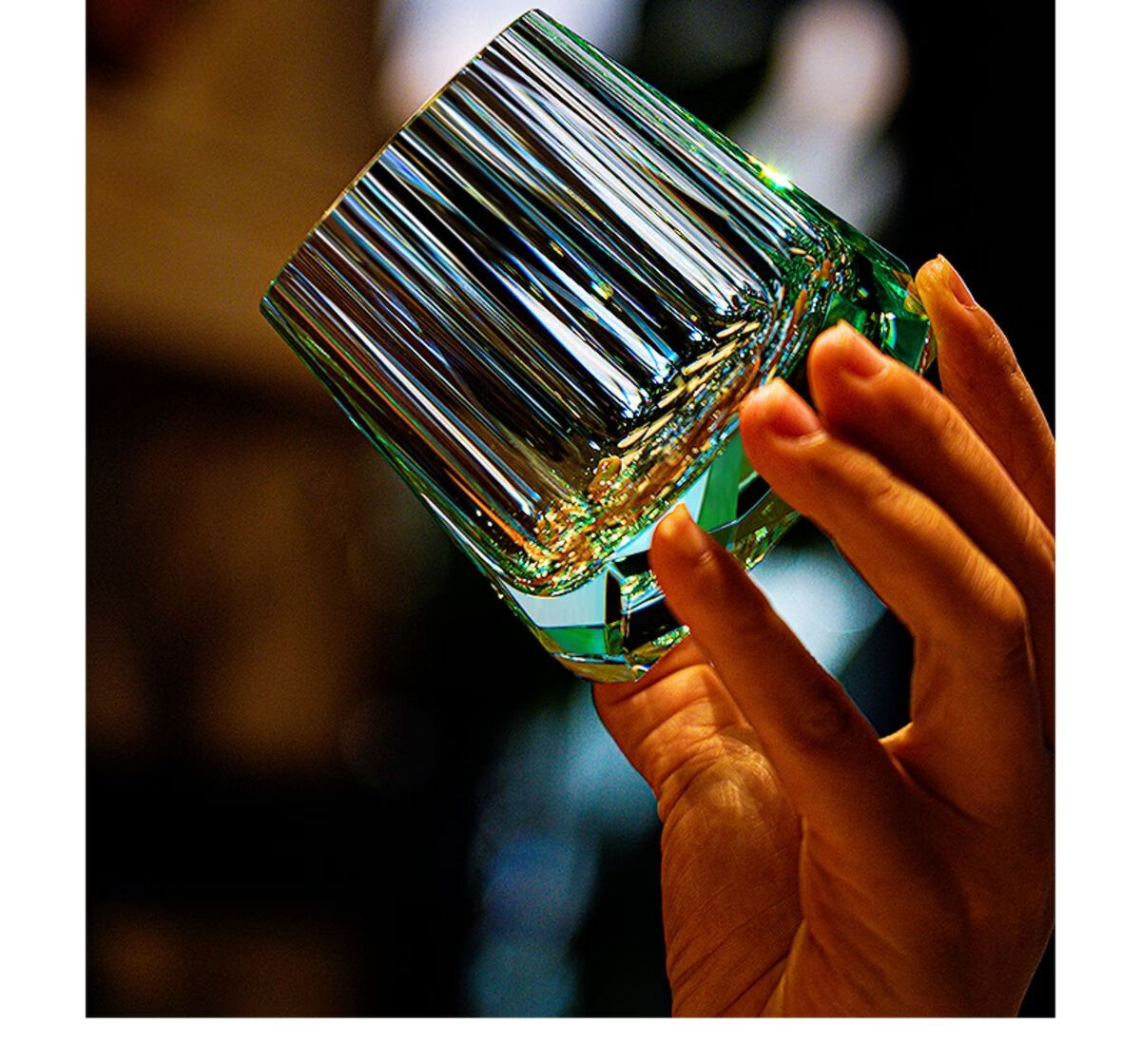 Fantasy personality 9 high-quality wine glass with engraved foreign wine glass, durable, transparent color, aqua color, wooden gift box set