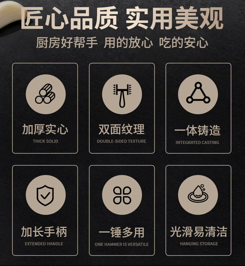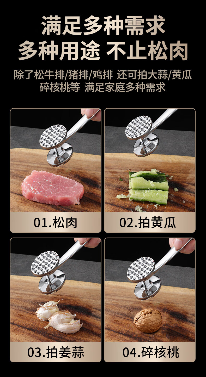 Solista Jiuyang pine meat hammer steak special kitchen household meat hammer beef large ribs pork chop beating tool breaking thickened double-sided pine meat hammer one hammer multi-purpose