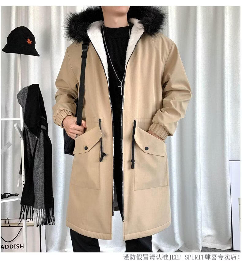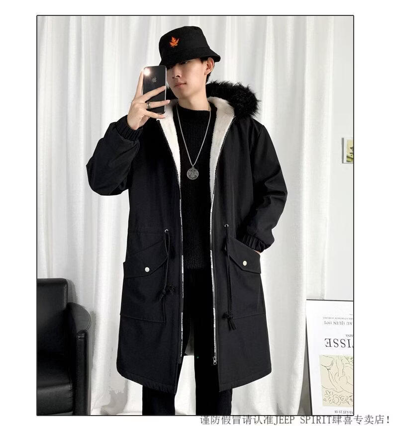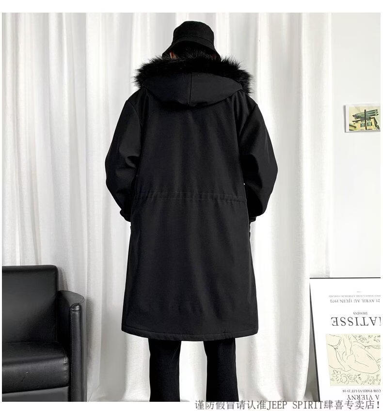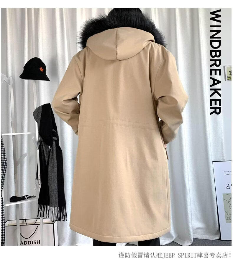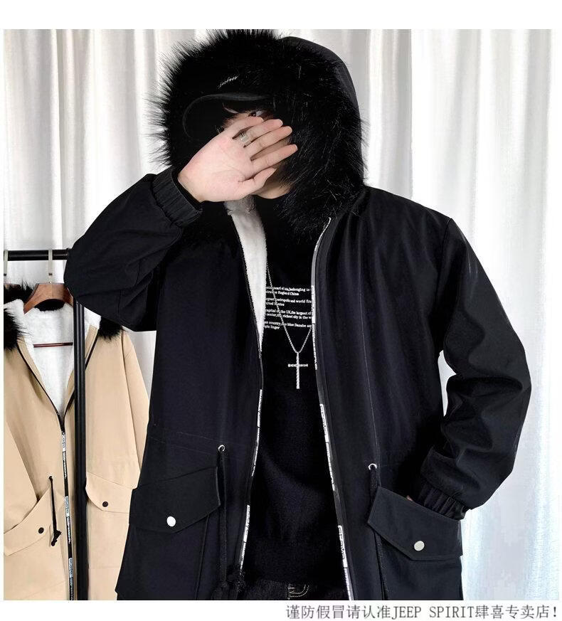 JEEP SPIRIT棉衣男冬季加厚派克服风衣外套情侣马甲中长款棉大衣冬装棉服 黑色 M