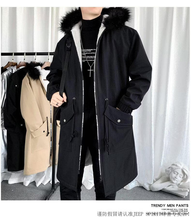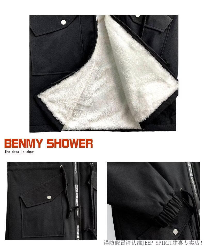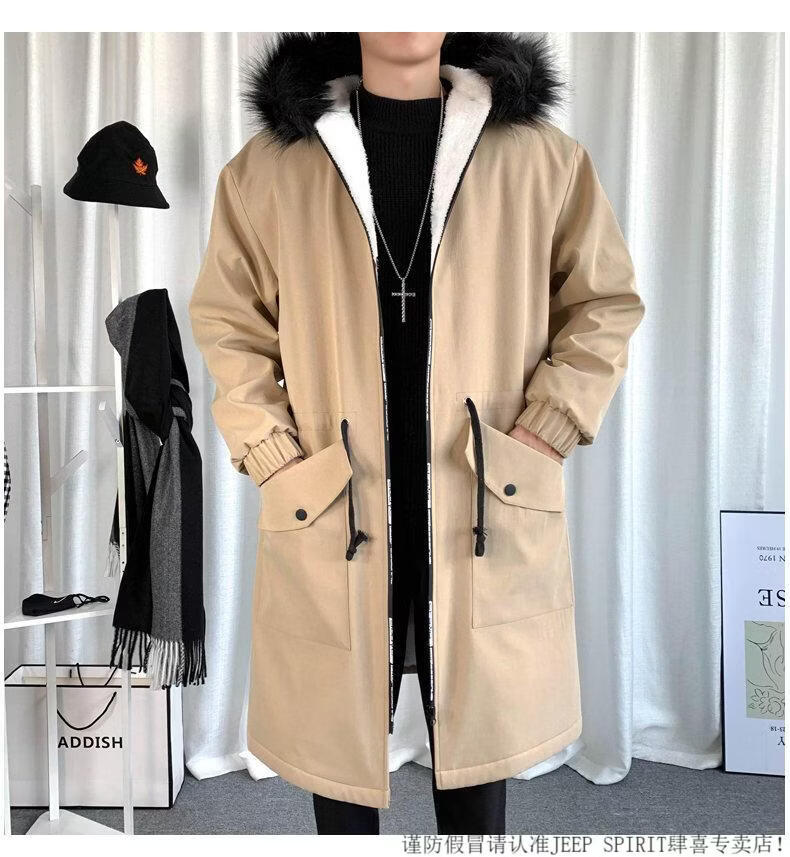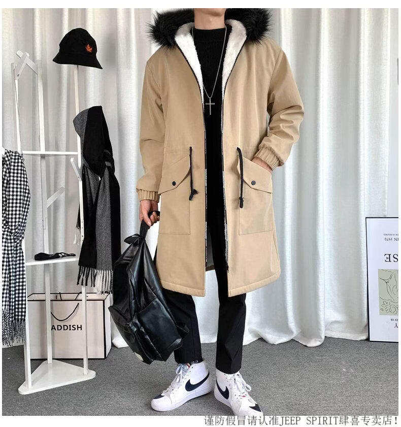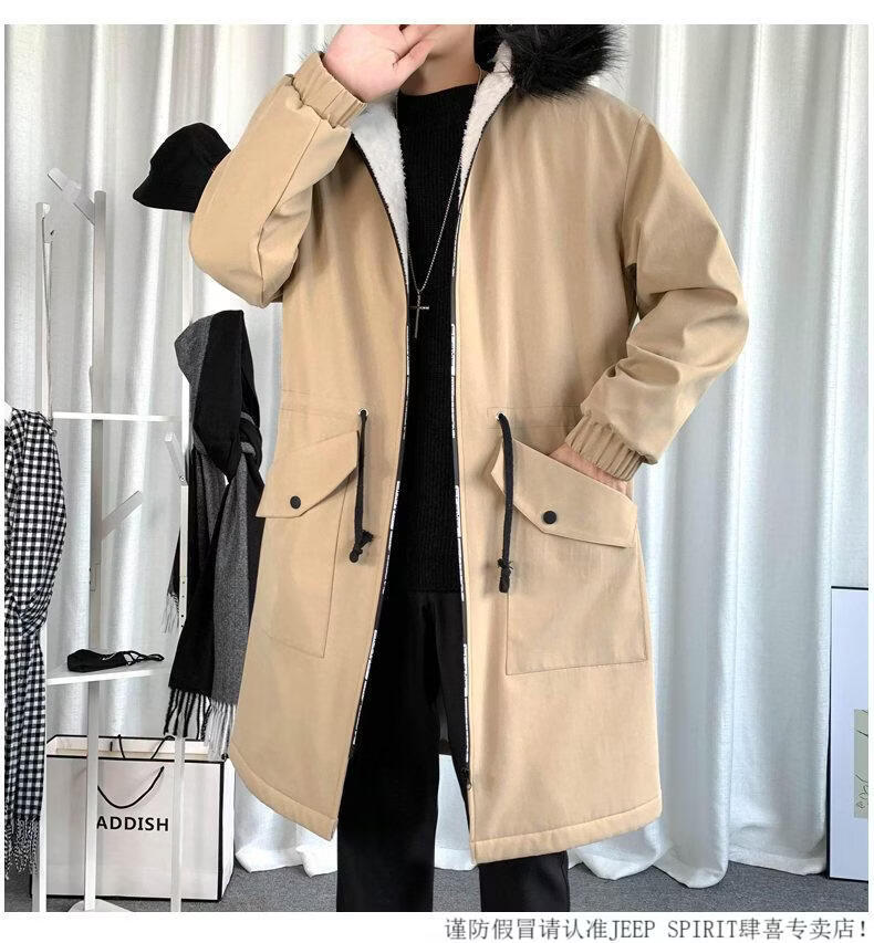 JEEP SPIRIT棉衣男冬季加厚派克服风衣外套情侣马甲中长款棉大衣冬装棉服 黑色 M