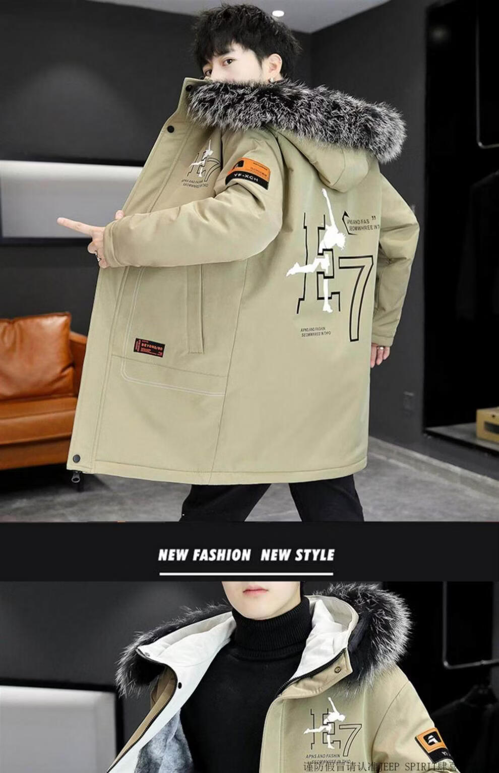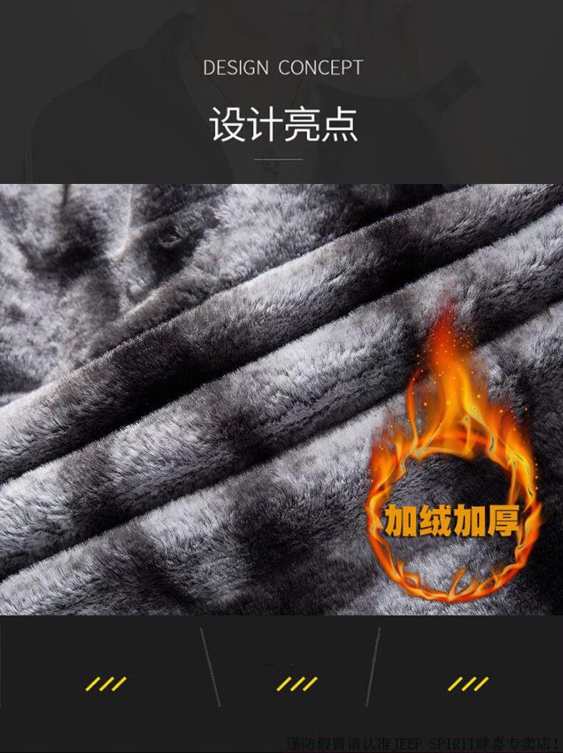 JEEP SPIRIT Velvet Thickened Men's Jacket Jacket Trendy Overcome Cotton Winter Men's Jacket 2025 New Windbreaker BDQ Black Yellow XL 125-145Jin Jin is equal to about 0.5 kg
