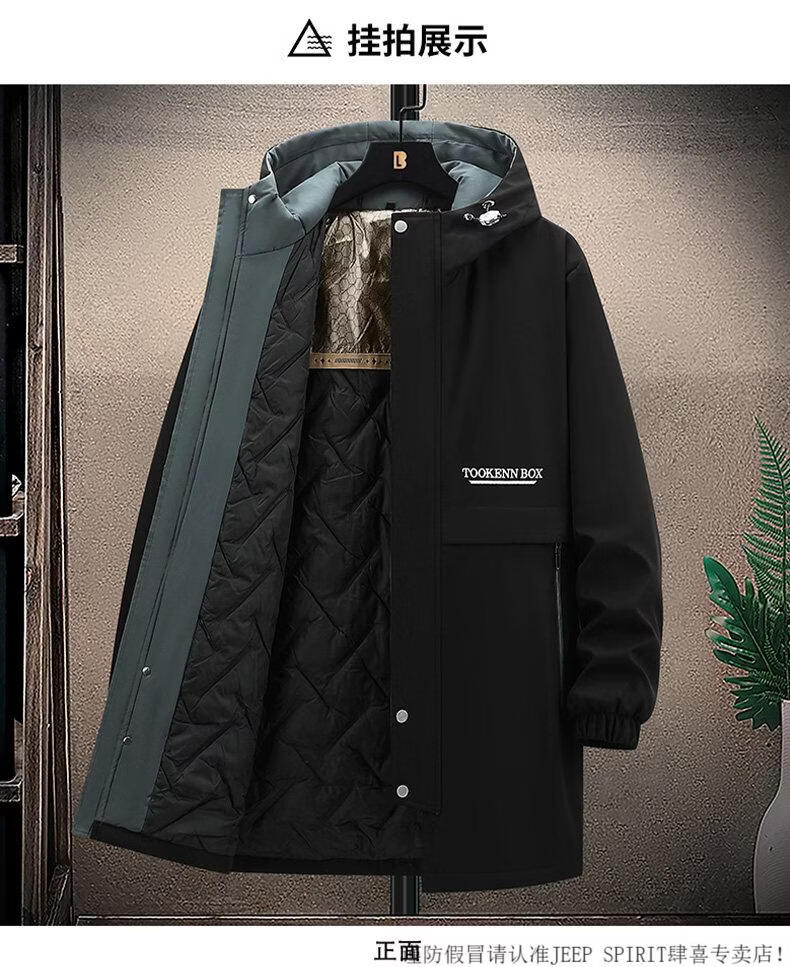 JEEP SPIRIT бархатная утолщенная ветровка для мужчин осенью и зимой хлопковое пальто средней длины свободное плюс толстое пальто большого размера YB0080 черное (утолщенное графеном) пальто средней длины XL 120-139Jin Jin соответствует износу 0,5 кг