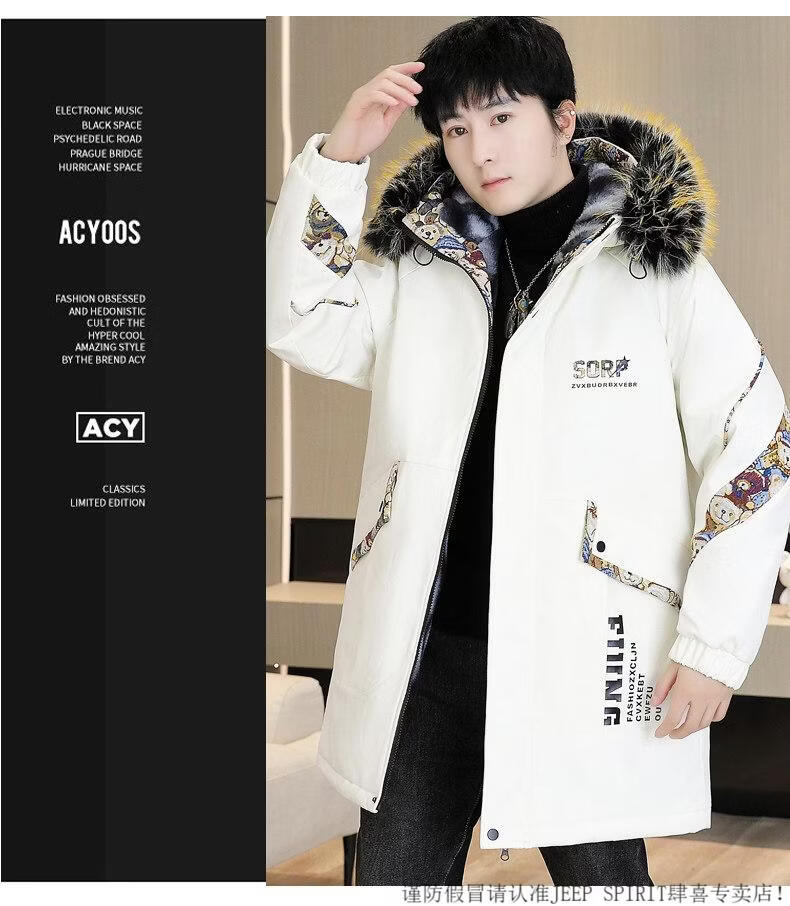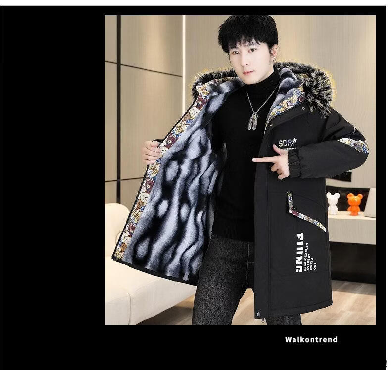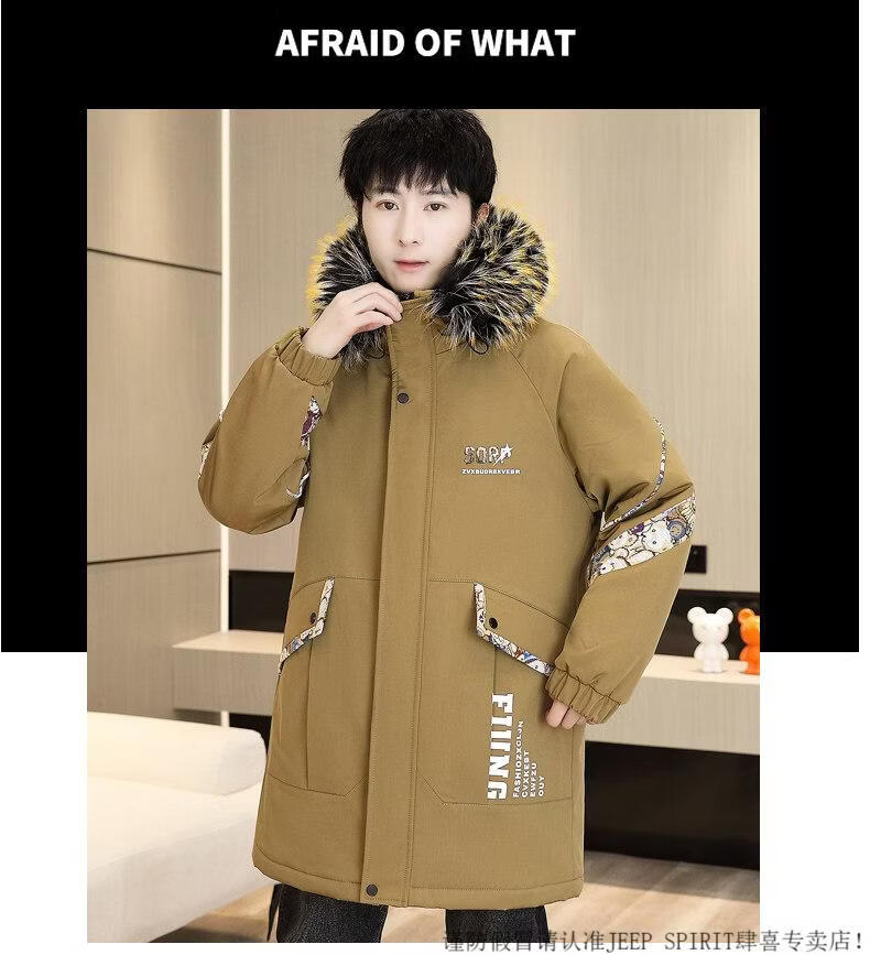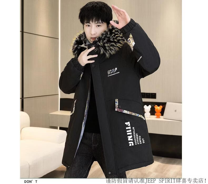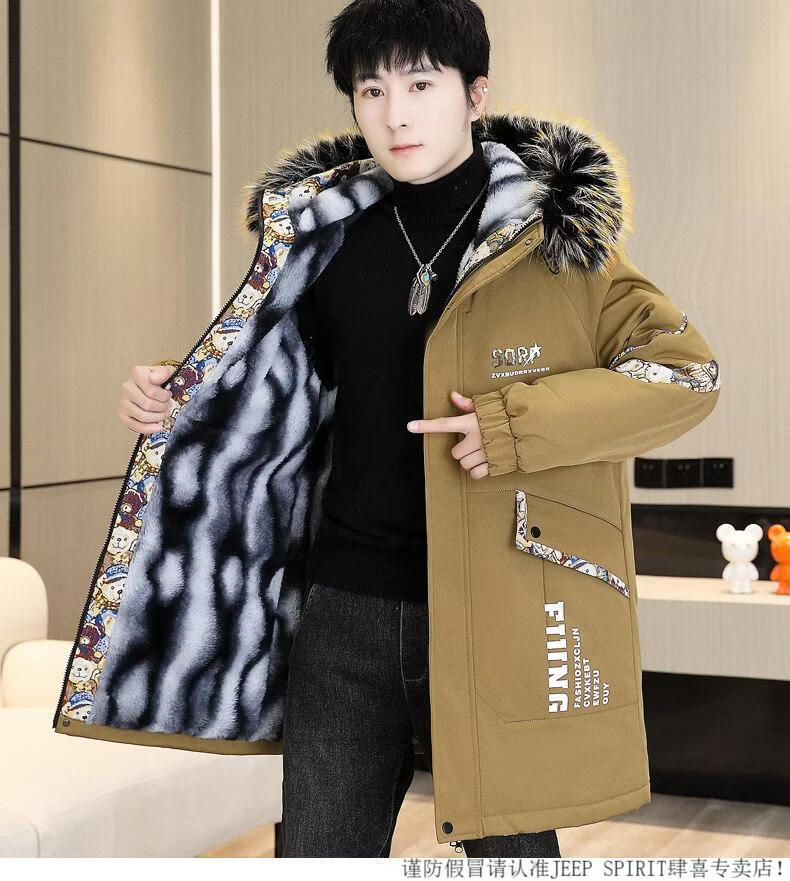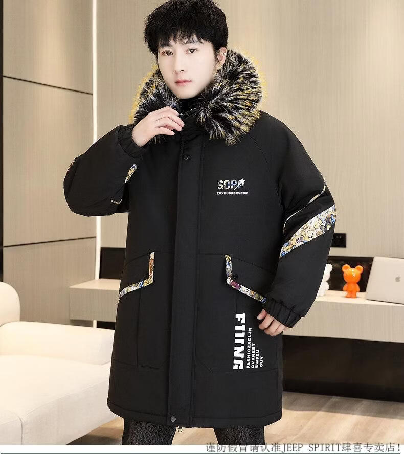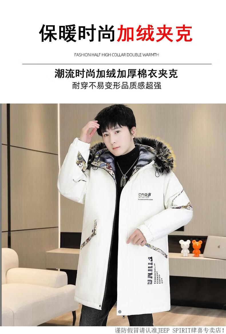 JEEP SPIRIT Winter Parka Men's Jacket Plus Velvet Thickened Jacket Men's Winter Cotton Clothes Mid-Length Windbreaker Warm Jacket Black Plus Velvet Thickened M 80-100Jin Jin is equal to 0.5 kg