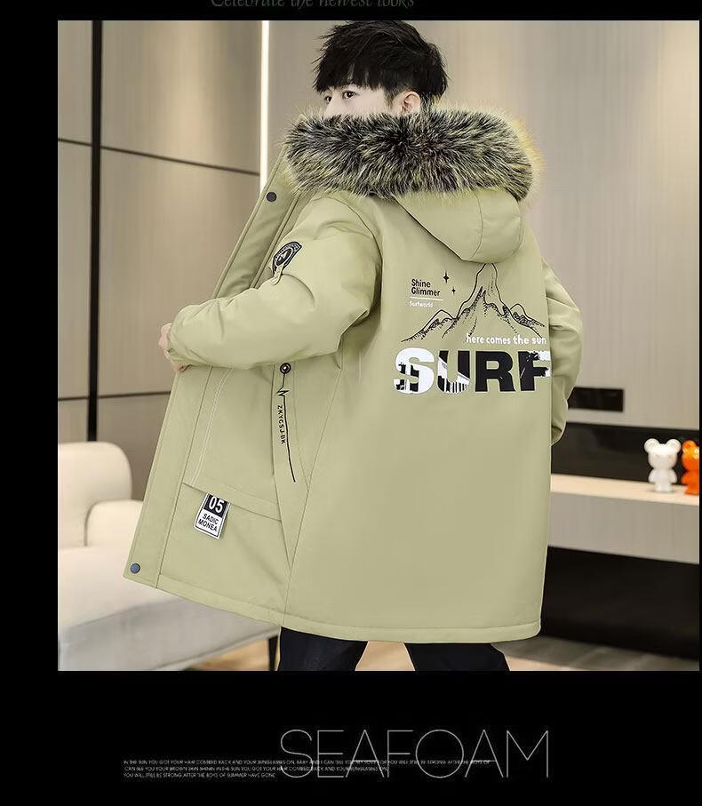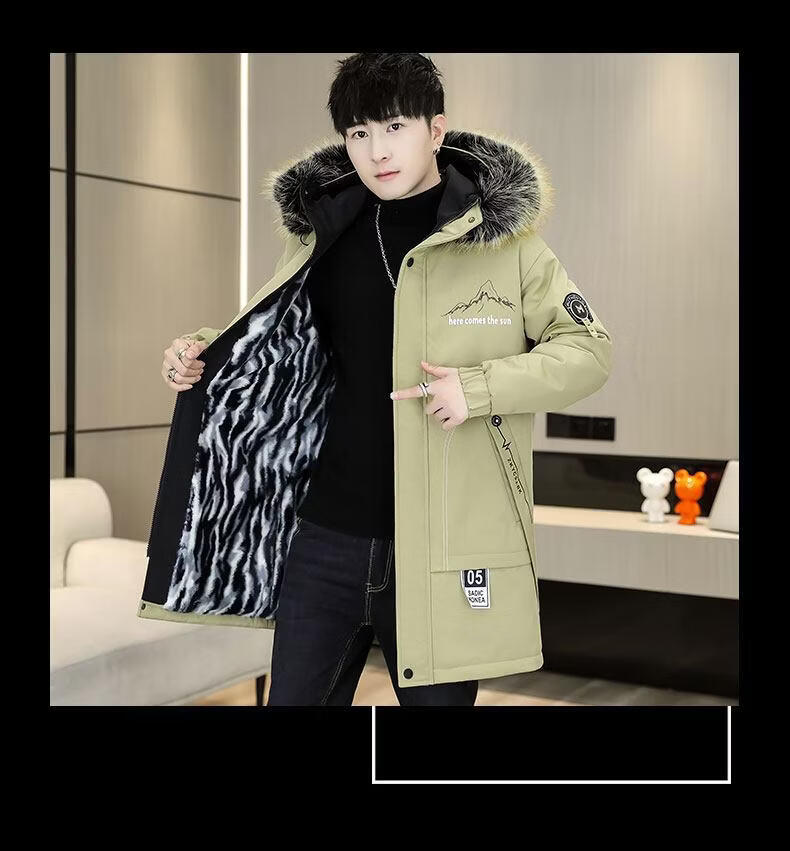 JEEP SPIRIT parka men's jacket plus velvet thickened jacket men's winter cotton coat mid-length windbreaker warm coat cotton coat khaki plus velvet and thick M about 80-100Jin Jin equals 0.5 kg can be worn