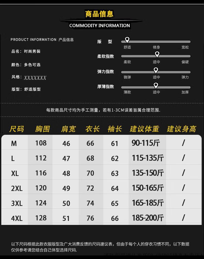 China (cm) 165 / 88-90 170 / 96-98 175 / 108-110 180 / 118-122 185 / 126-130