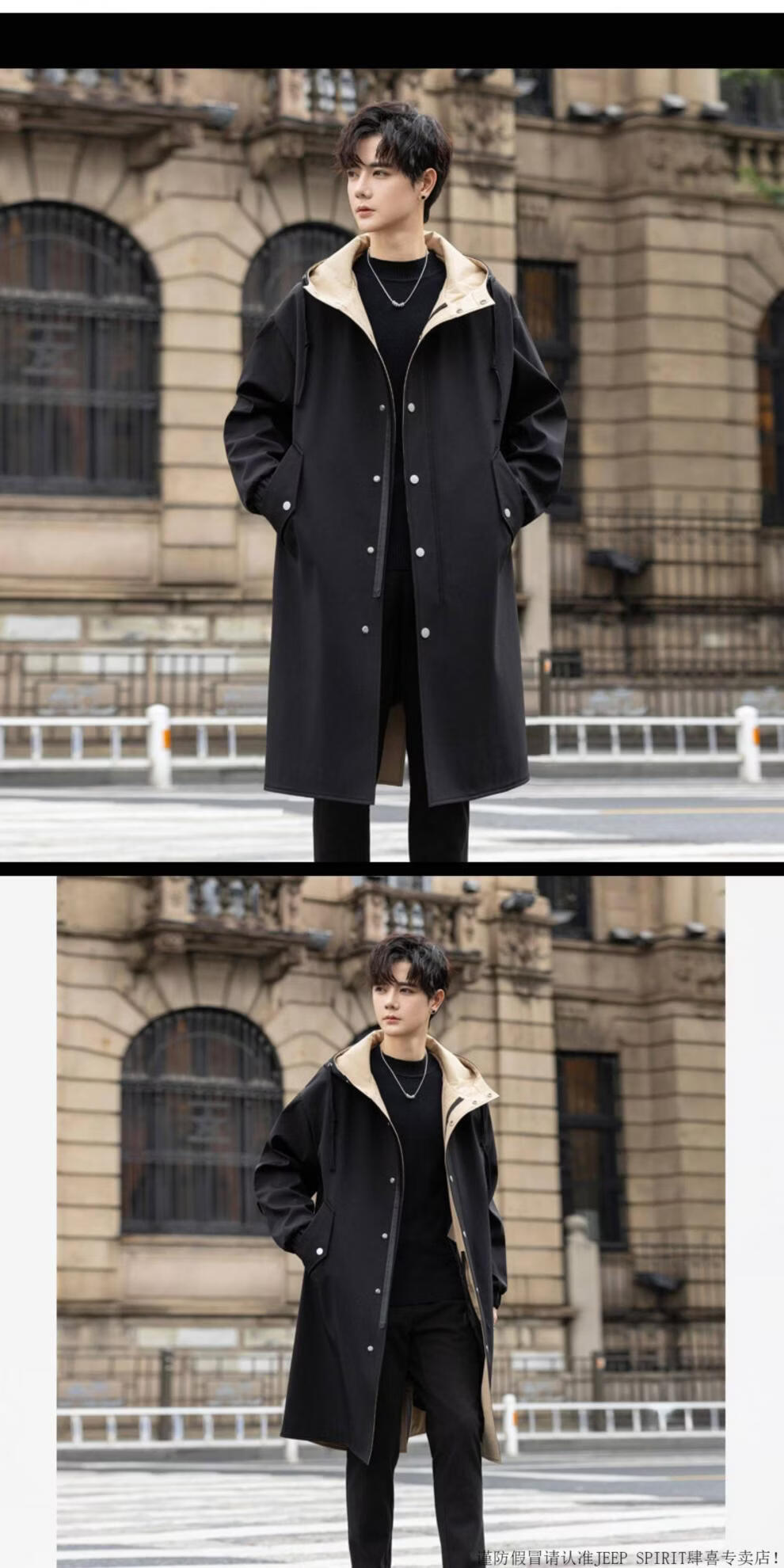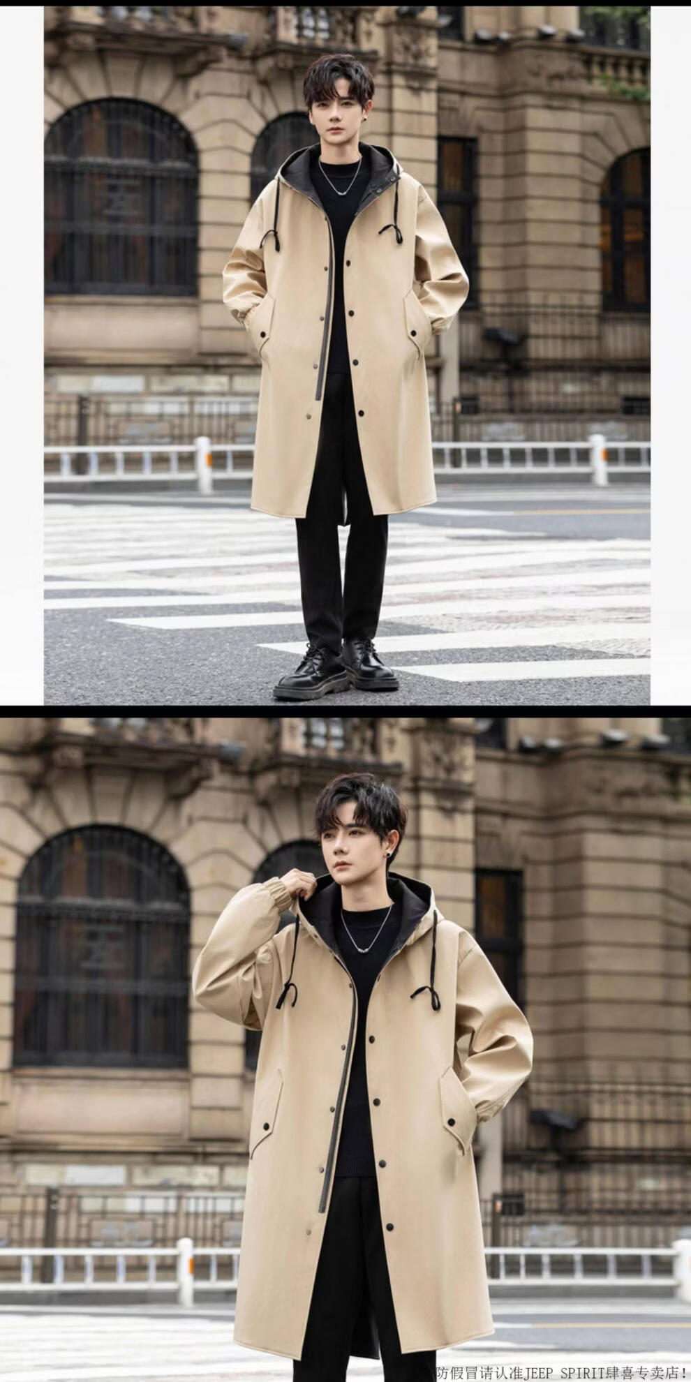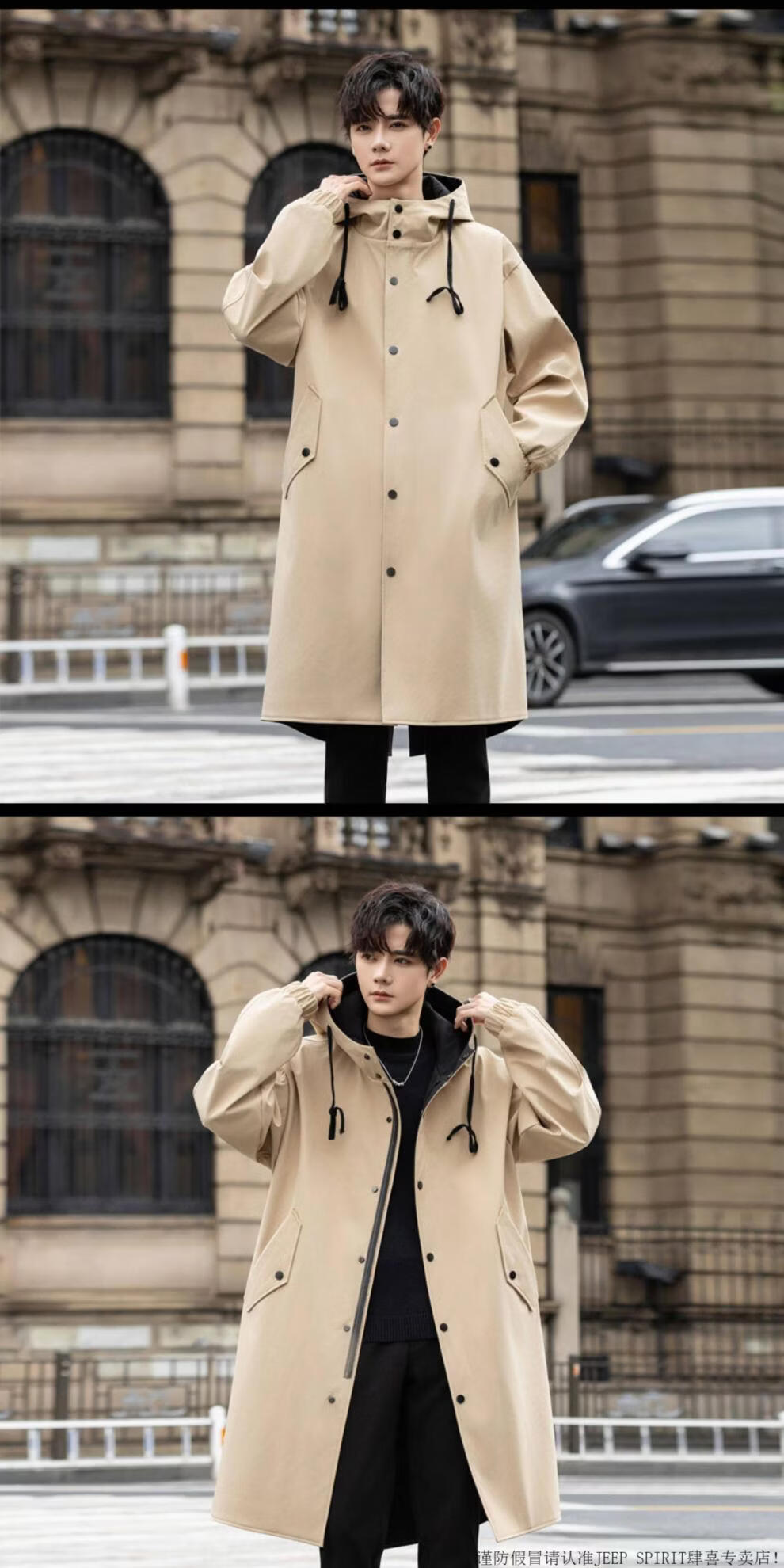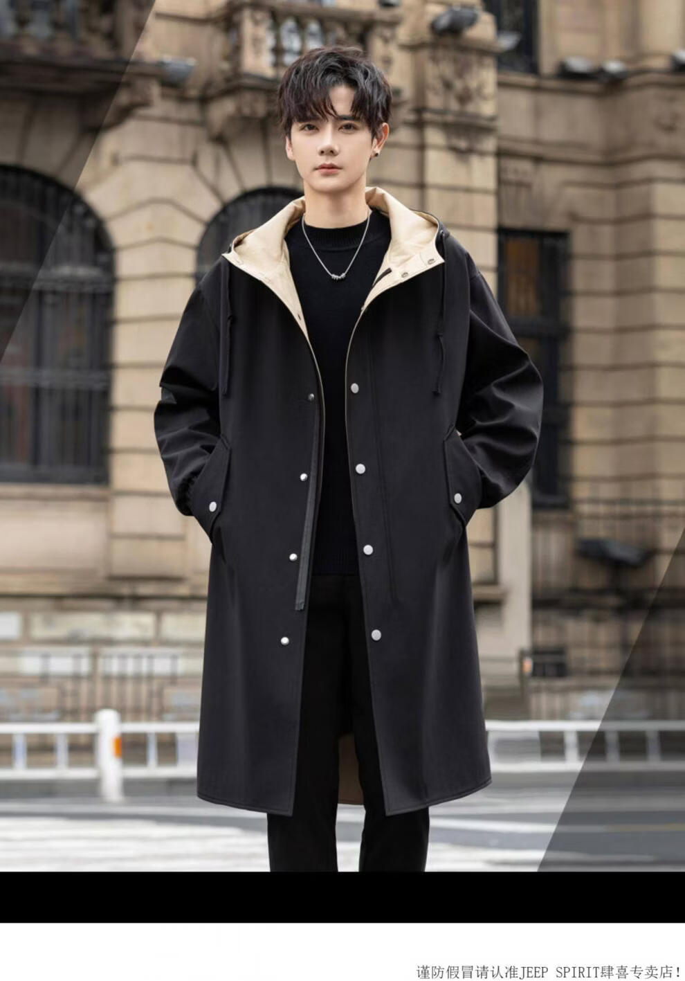 JEEP SPIRIT风衣外套男冬秋长款男士大衣冬季加厚派克服英伦风休闲服男款 黑色 M 【100-120斤】