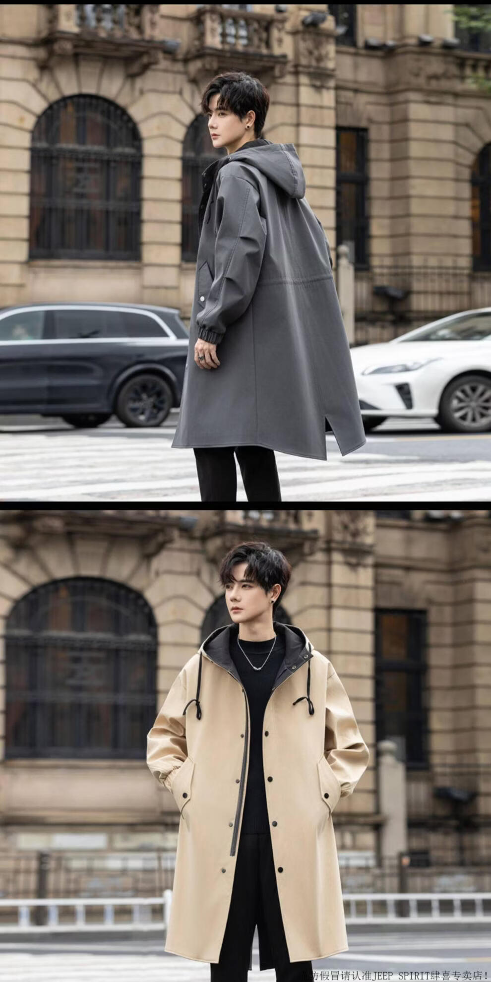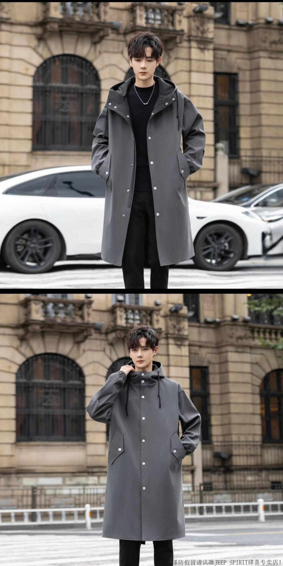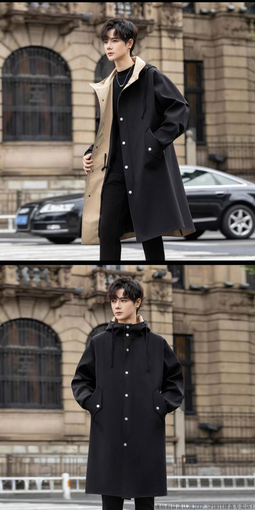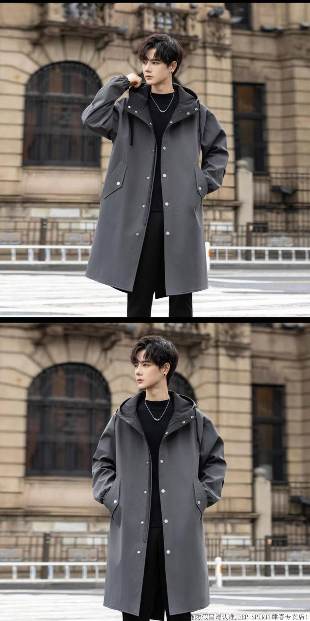 JEEP SPIRIT风衣外套男冬秋长款男士大衣冬季加厚派克服英伦风休闲服男款 黑色 M 【100-120斤】