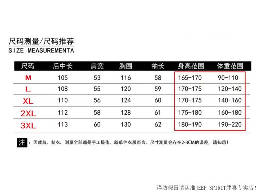 China (cm) 165 / 88-90 170 / 96-98 175 / 108-110 180 / 118-122 185 / 126-130