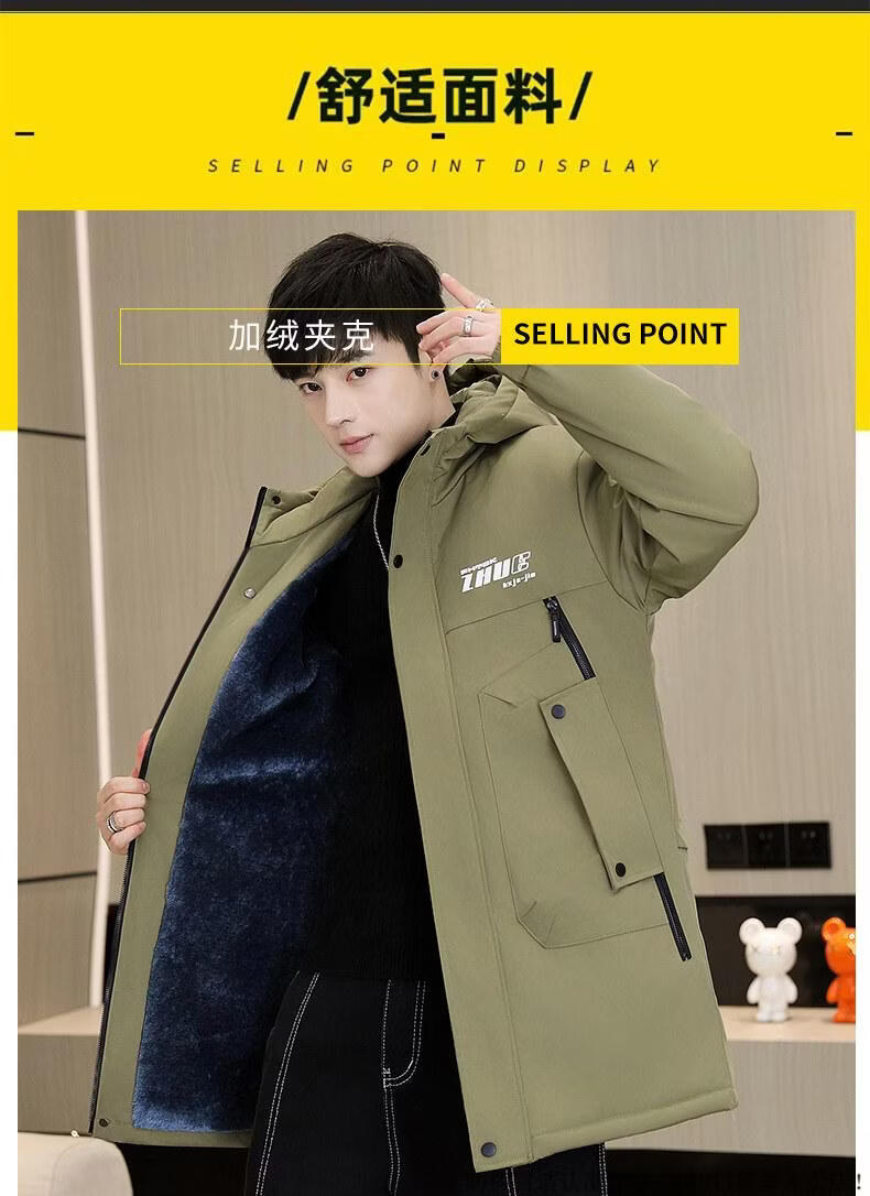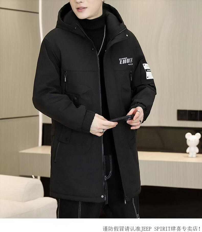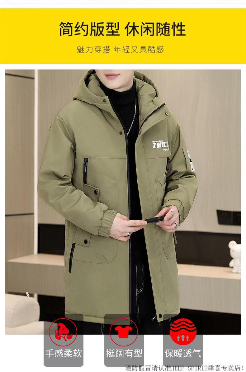 JEEP SPIRIT Winter Park Jacket Men's Jacket Plus Velvet Thickened Jacket Men's Winter Cotton Clothes Mid-Length Warm Windbreaker Jacket Green Plus Velvet Thickened XL 125-140Jin Jin is equal to 0.5 kg