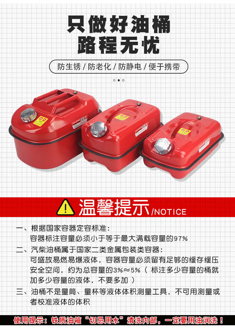Gongma thickened horizontal gasoline barrel 5L10l20 liter iron diesel kettle car fuel tank car motorcycle storage spare green 5 liter iron cover version (with non-built-in plastic oil pipe)