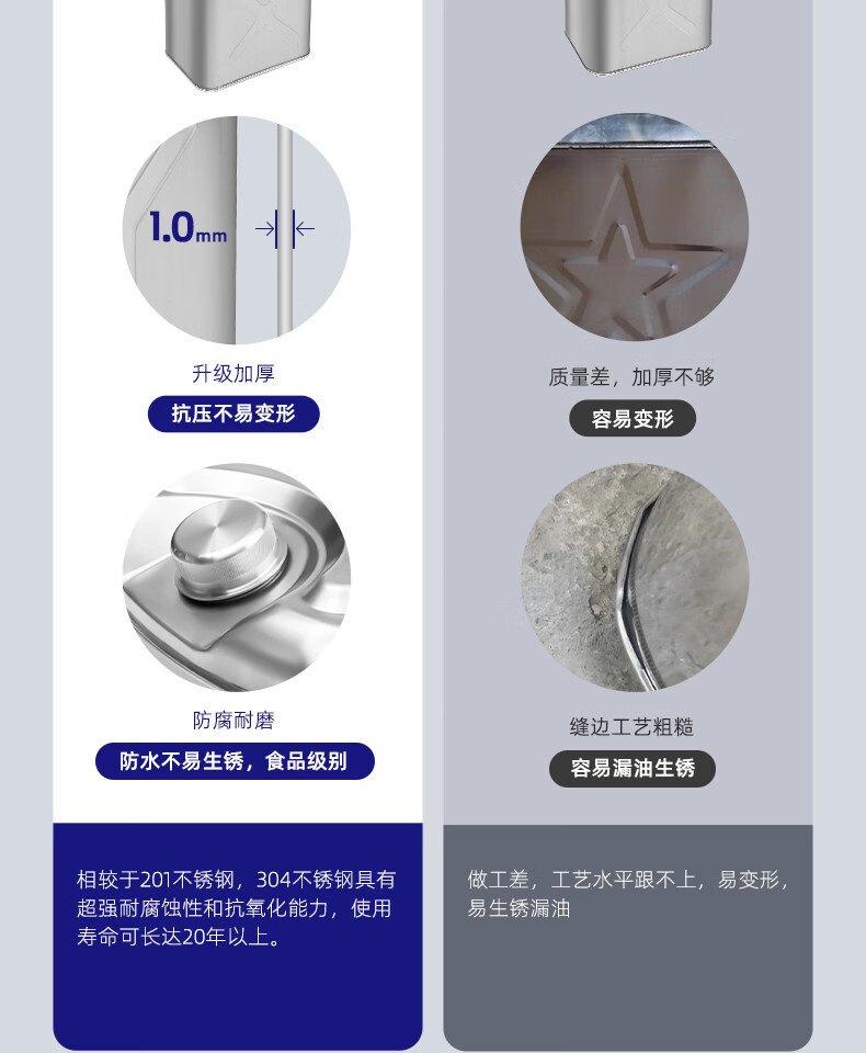 Work horse oil barrel, gasoline barrel, special barrel, fuel tank, diesel barrel, 50 empty barrels, 30 stainless steel refueling barrels, 20 liters of spare white steel, 201 stainless steel, horizontal 3 liter thickened version + aluminum head oil pipe