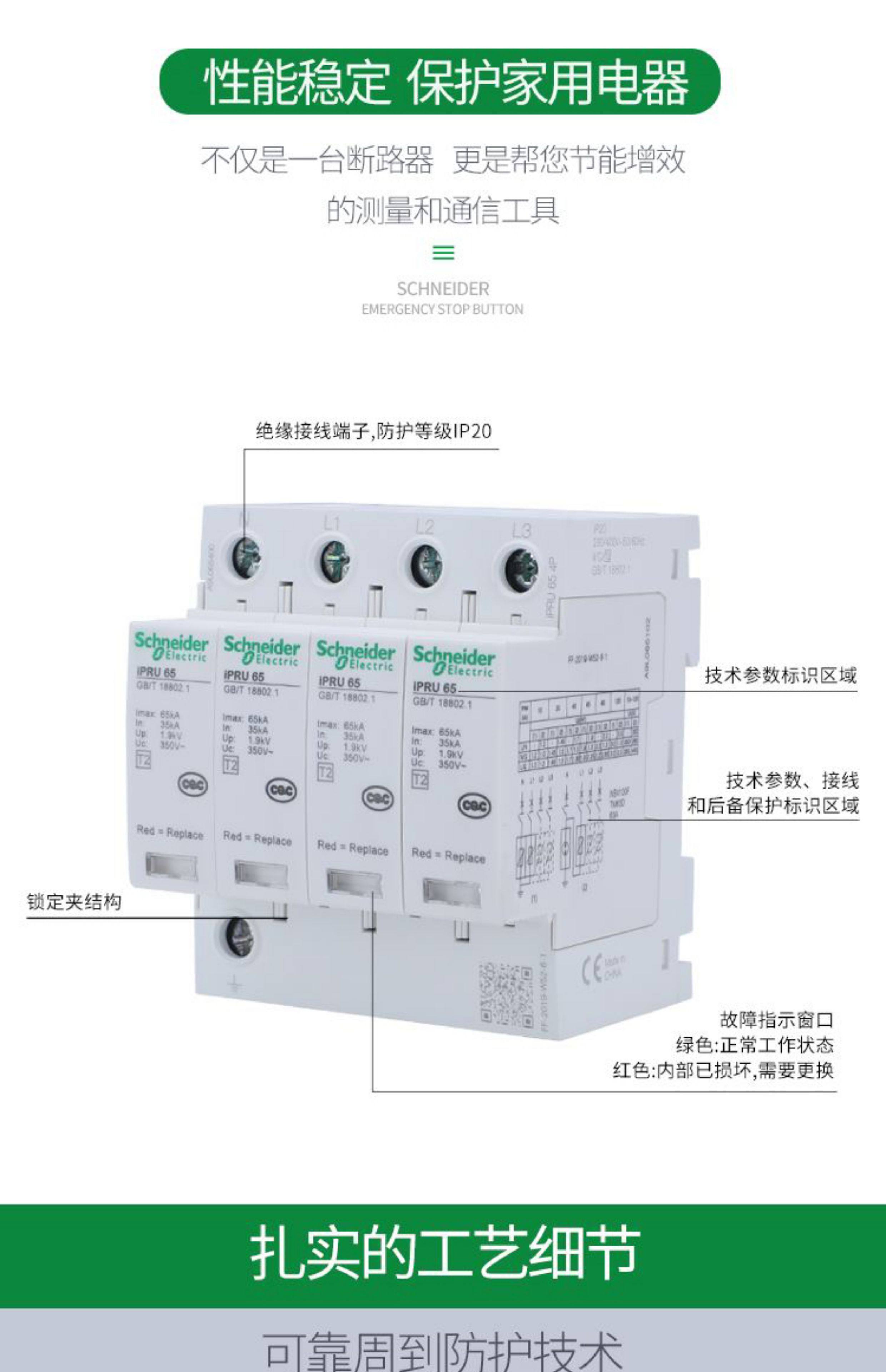 Original Schneider surge protector lightning protection suppressor surge R3P+N-4P10KA remote iPRU80r3P