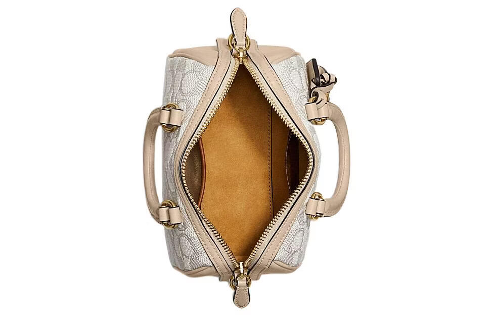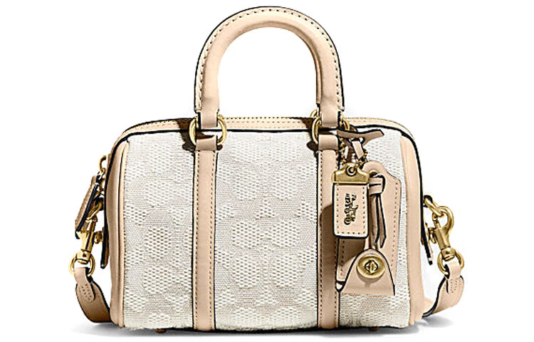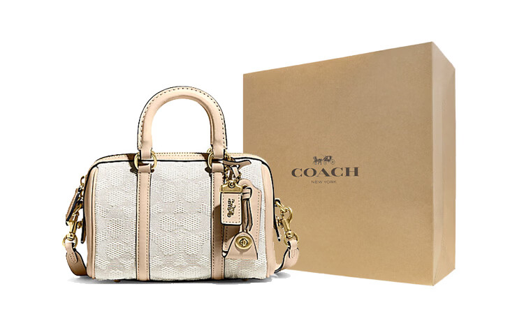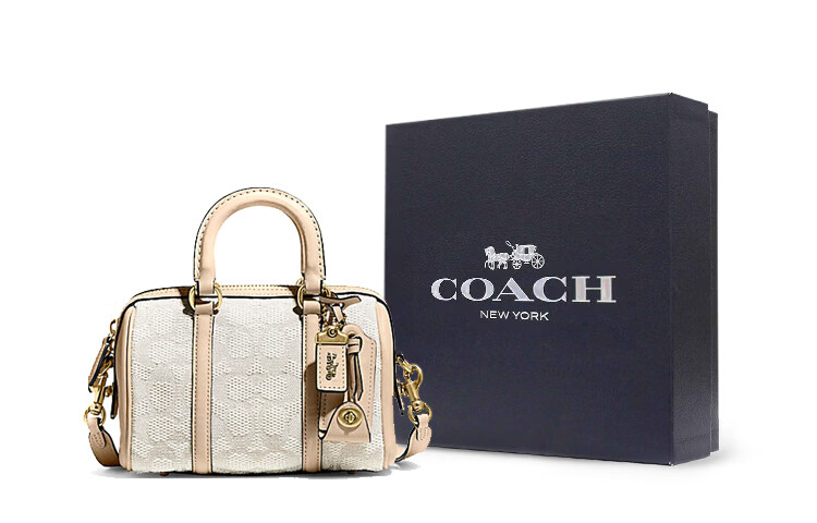 COACH Ruby 18 Zipper closure classic logo Jacquard fabric with cow leather Boston bag hand-held shoulder slant gift box (basic + black counter gift box) Default