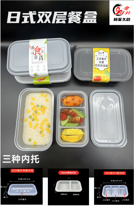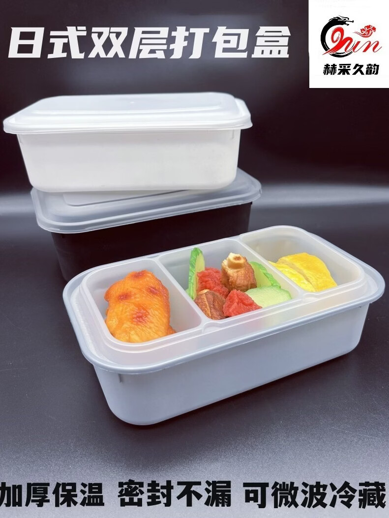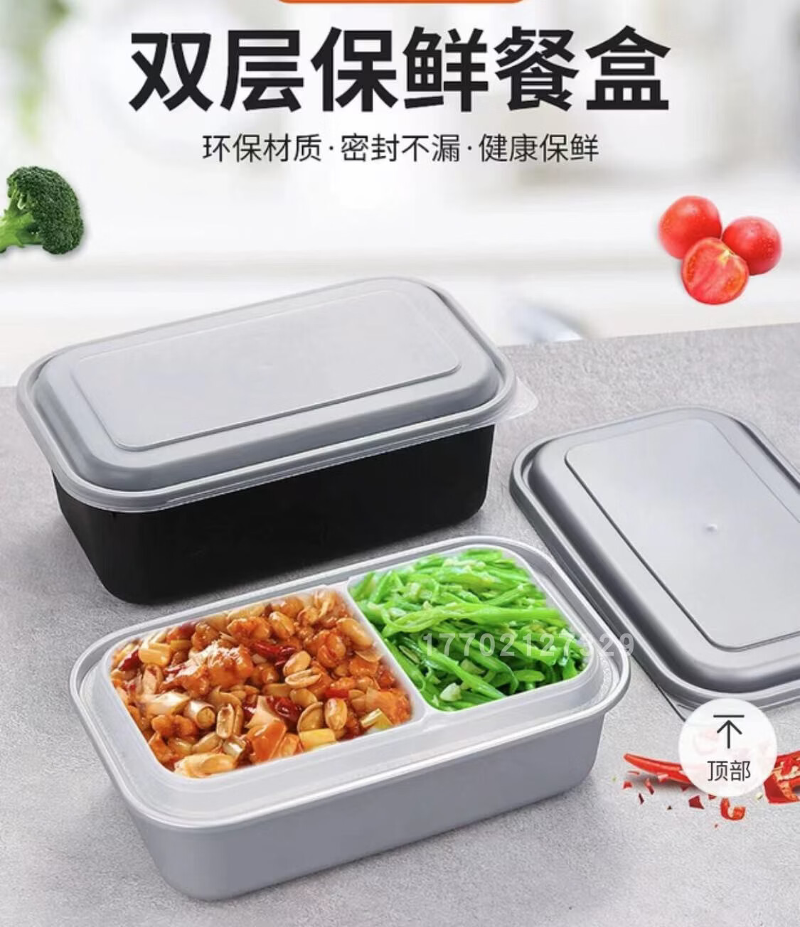 He Jiagong 918 double-layer packaging box, one-time thickening, microwaveable, silver food-grade thermal insulation, sealed exterior, 918 silver bottom, silver lid with three-compartment lining, 200 sets