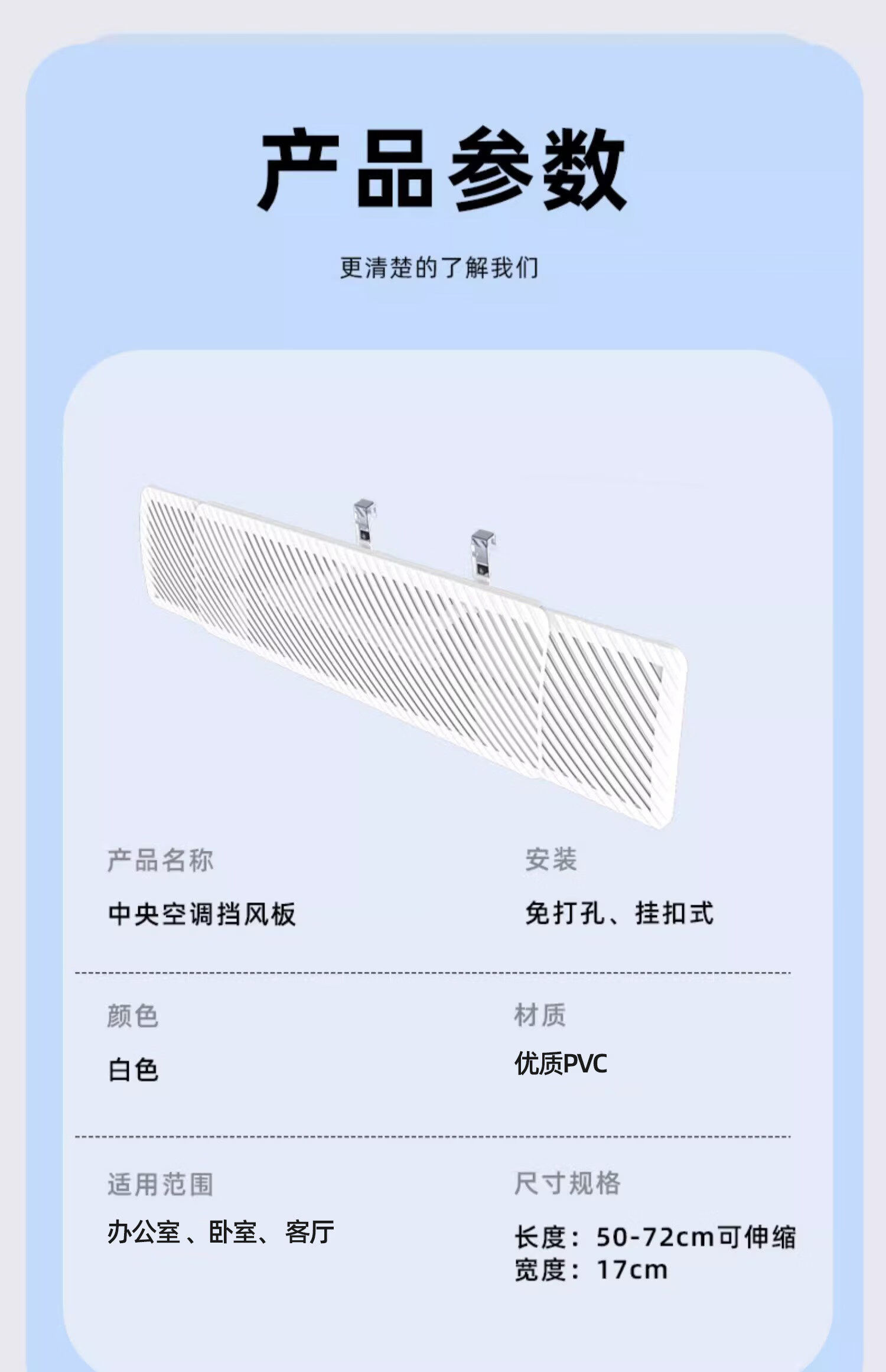Meijia air conditioner wind shield, air guide ceiling, air conditioner air outlet baffle, ceiling machine universal wind shield to prevent direct blowing 05 Ordinary retractable air outlet length within 72cm * 8 pieces to prevent direct blowing