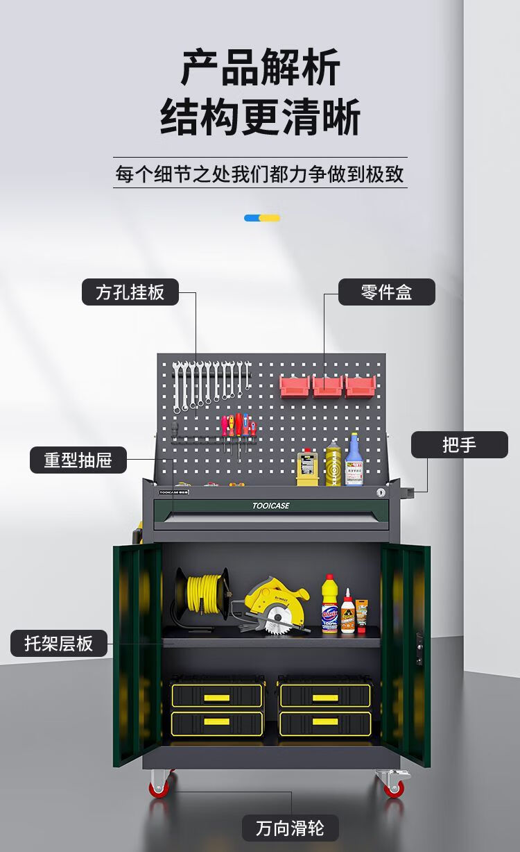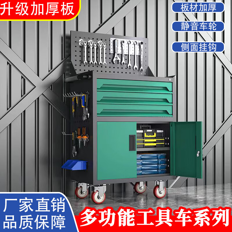 Runhuanian heavy-duty workshop tool cabinet trolley hardware storage thickened drawer type auto repair workshop three-story factory straight hair light yellow thickened style factory straight hair one pump thickened style three-sided hanging net plus universal wheel