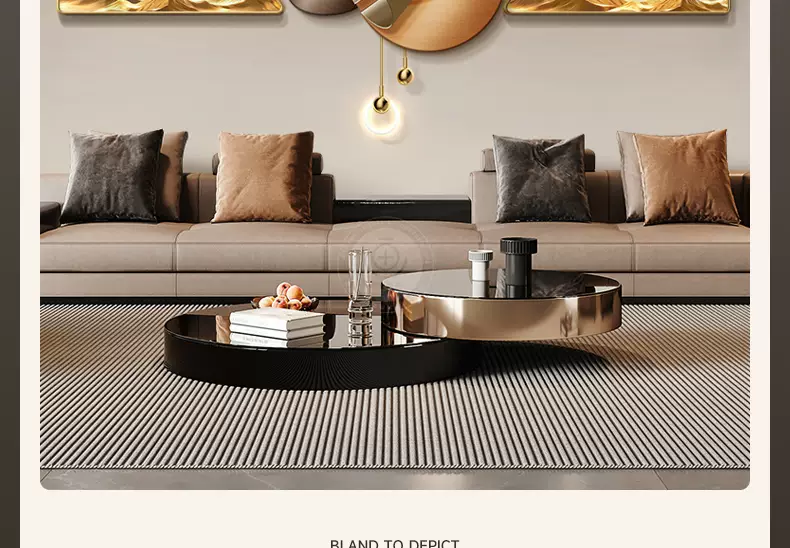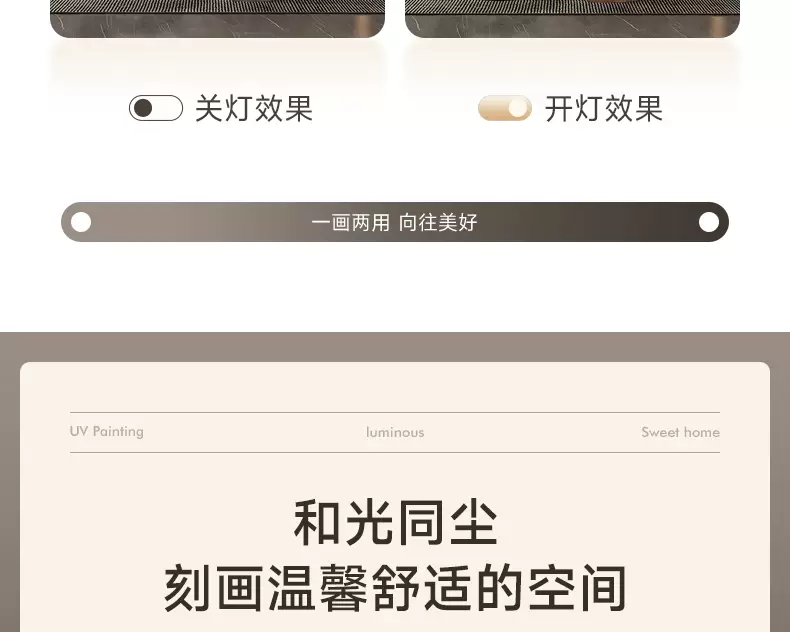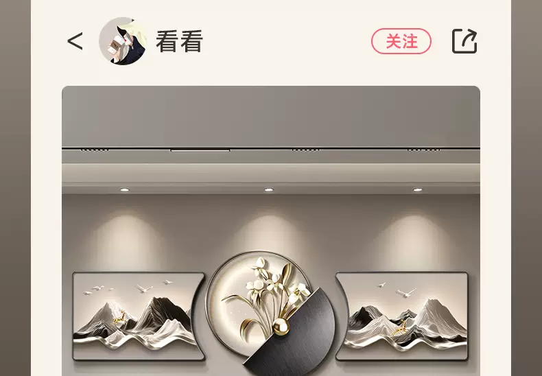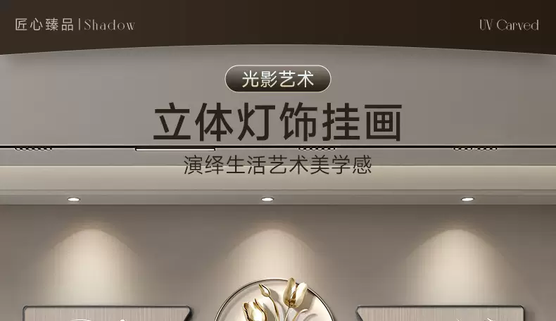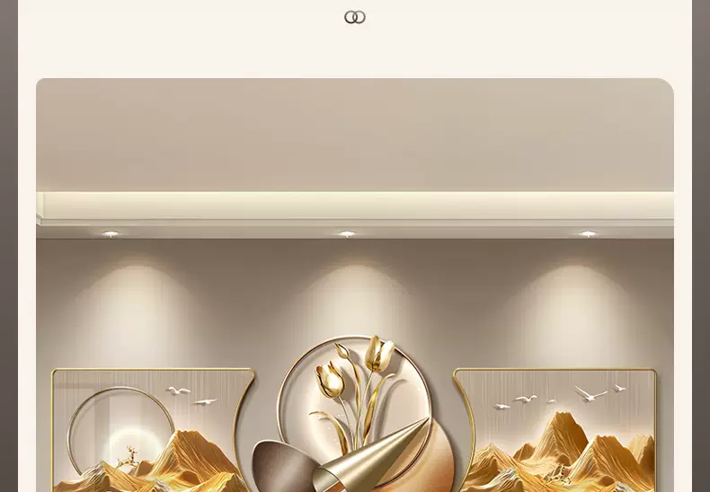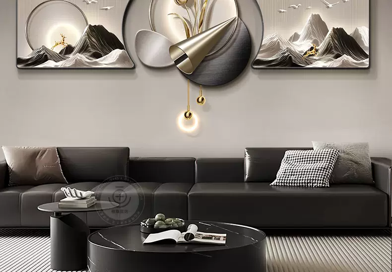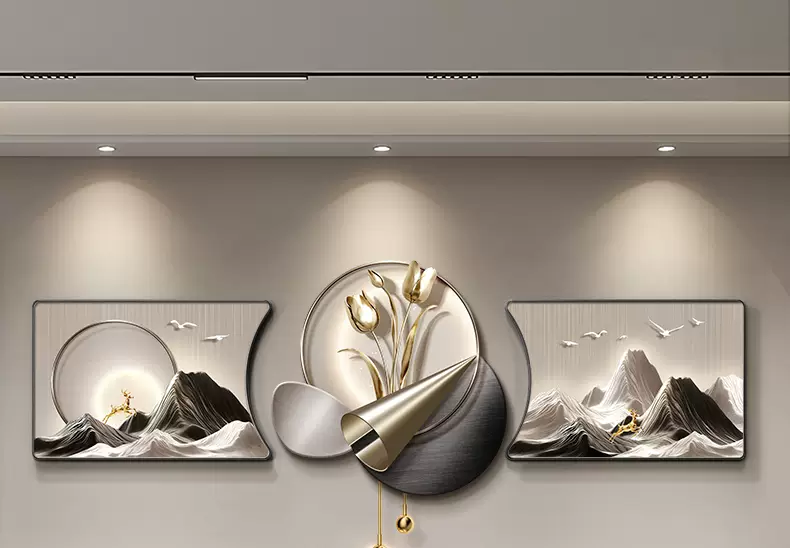 Yusenyi modern backing luxury living room painting high-end wall decoration painting with back feeling hanging clock sofa background wall hanging painting triple light B style with backing 60x4060x60UV fine carving 60x40cm60cm including lamp height 82cm PVC golden U-shaped frame-UV fine carving remote control mobile rechargeable warm light three-dimensional metal strip pendant small