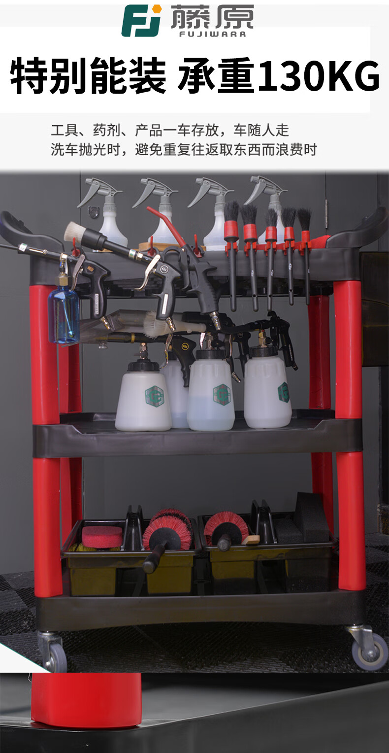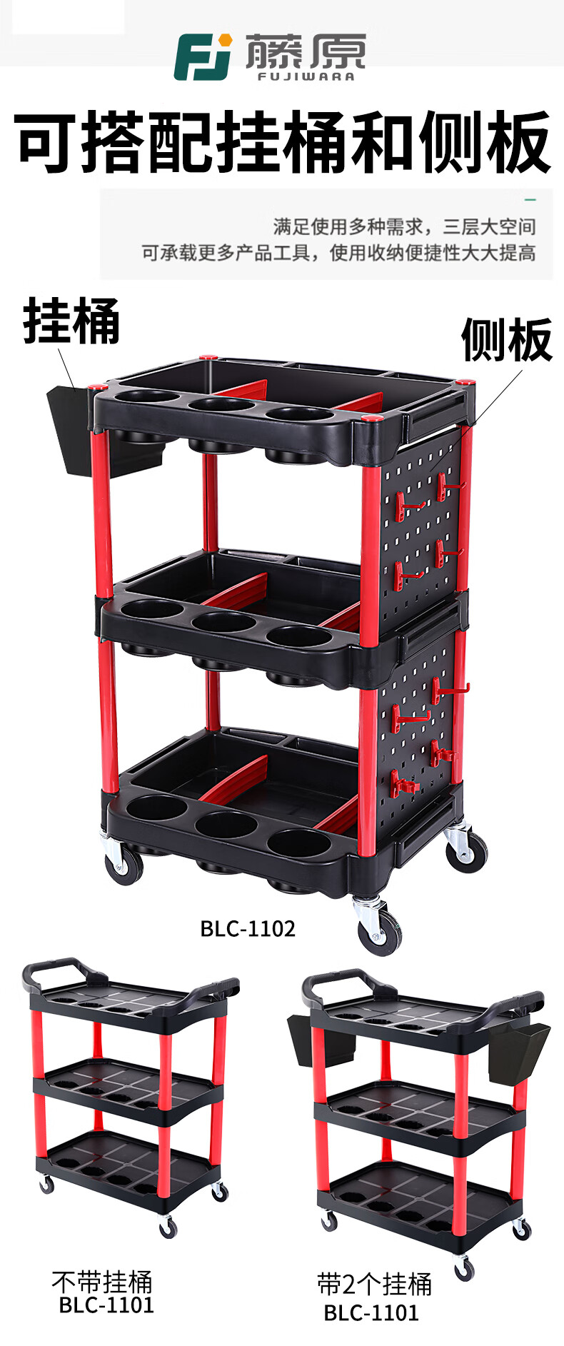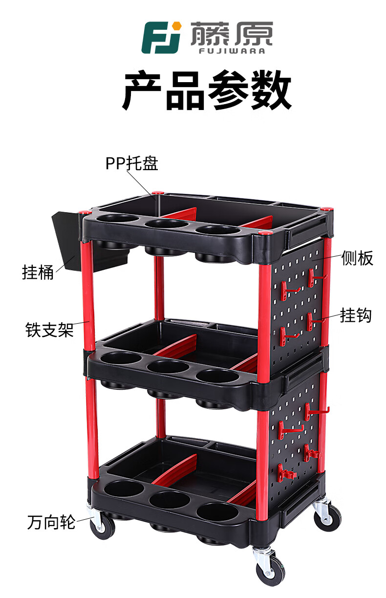 Sailoto Sijie Auto Repair Tool Cart Multifunctional Three-layer Towel Rack Mobile Car Beauty Car Wash Storage Trolley Tool Cart BLC-1102 Comes with 1 Large Hanging Board + 1 Hanging Bucket