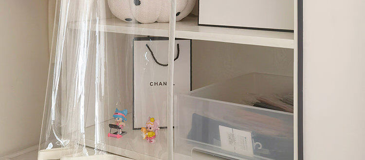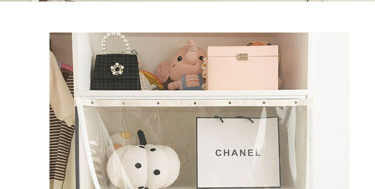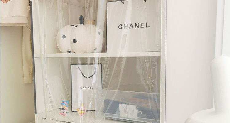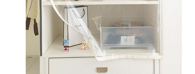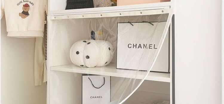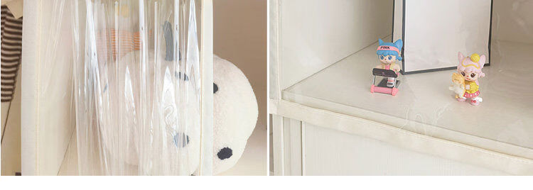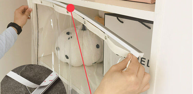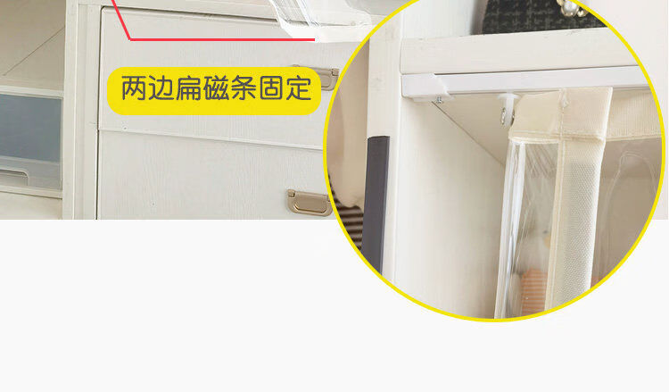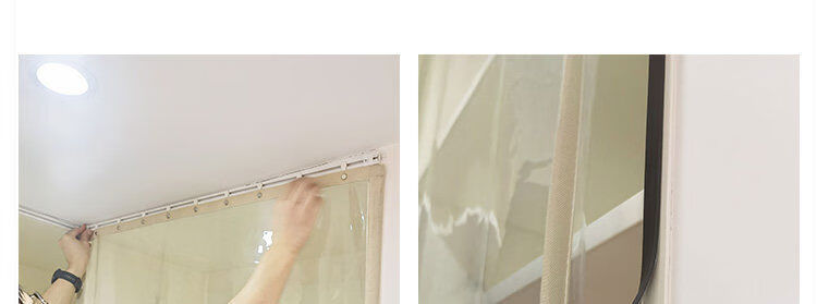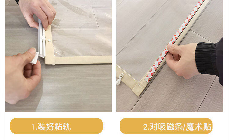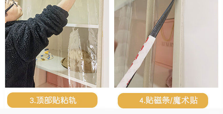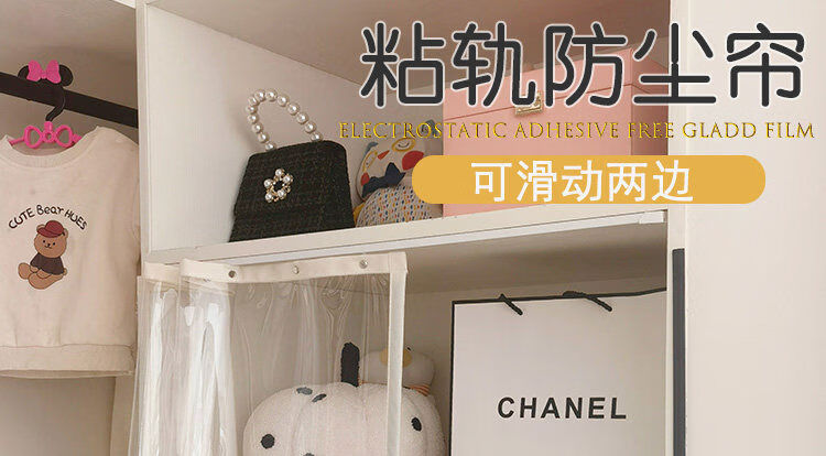 Bedroom cabinet curtain rail-type cloakroom dust-proof curtain ultra-transparent display cabinet door curtain household punch-free cat partition curtain transparent and odorless TPU edged beige B2 rail sticky rail, medium thick magnetic strip, magic strips on both sides